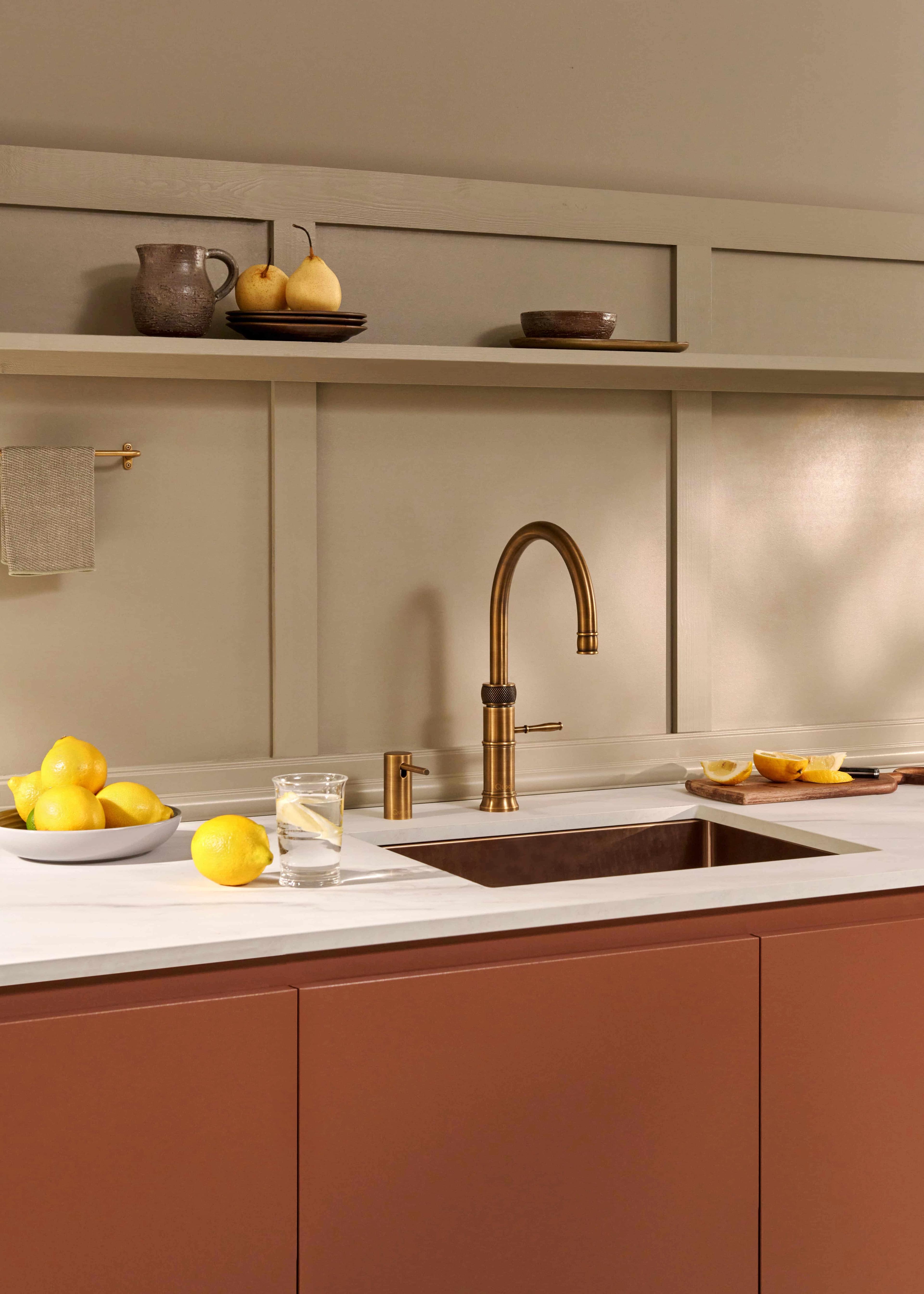 Quooker Flex - En kran, opptil 5 typer vann. Quooker Flex kan kombineres med en beholder for å få kaldt, varmt og 100 °C kokende vann fra en og samme kran. Kobler du på en CUBE får du i tillegg avkjølt vann med og uten kullsyre. Quooker Flex har også en praktisk uttrekksslange for rengjøring av vask o.l.