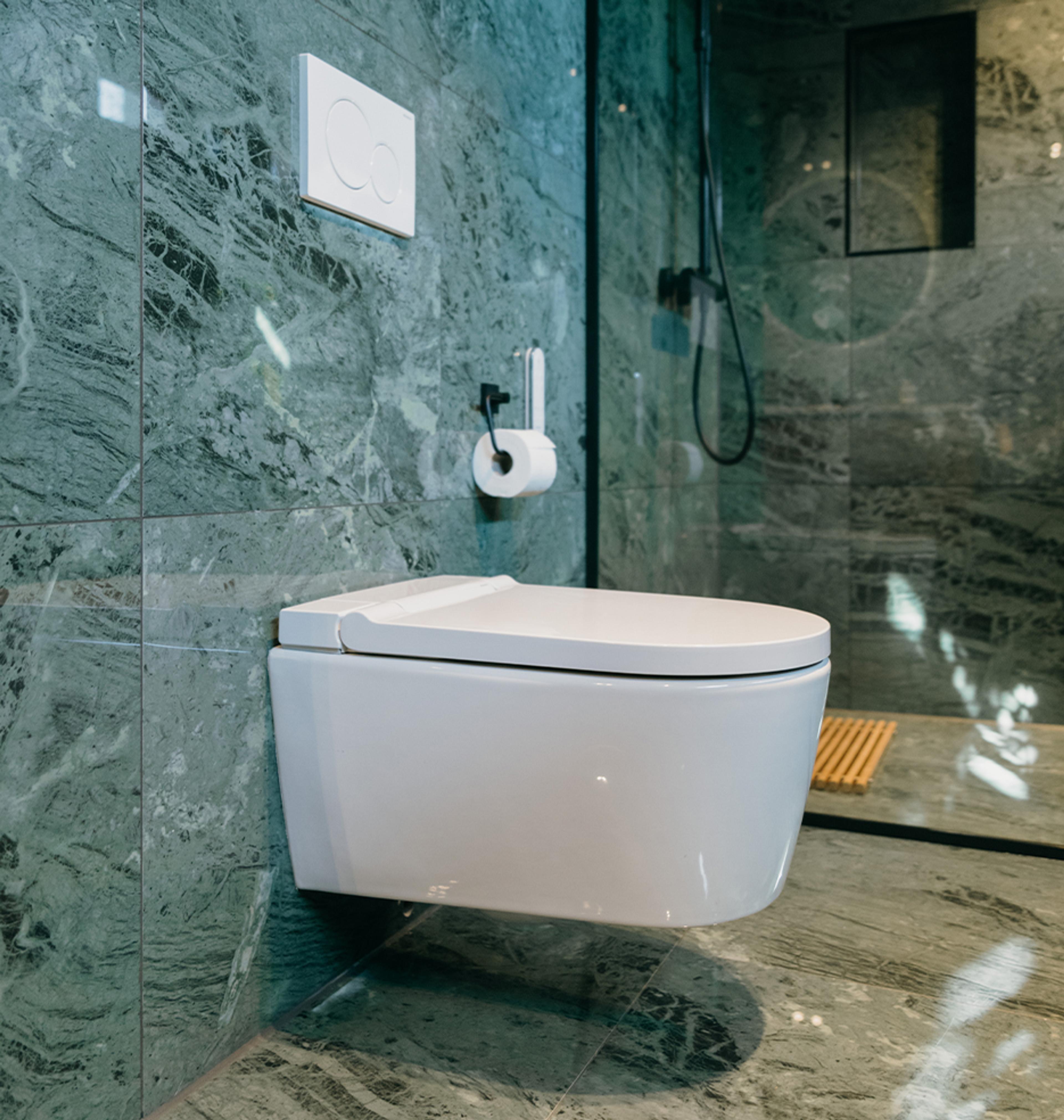 Et annet element på badet som Sunniva og familien setter høyt er dusjtoalettet fra Geberit.