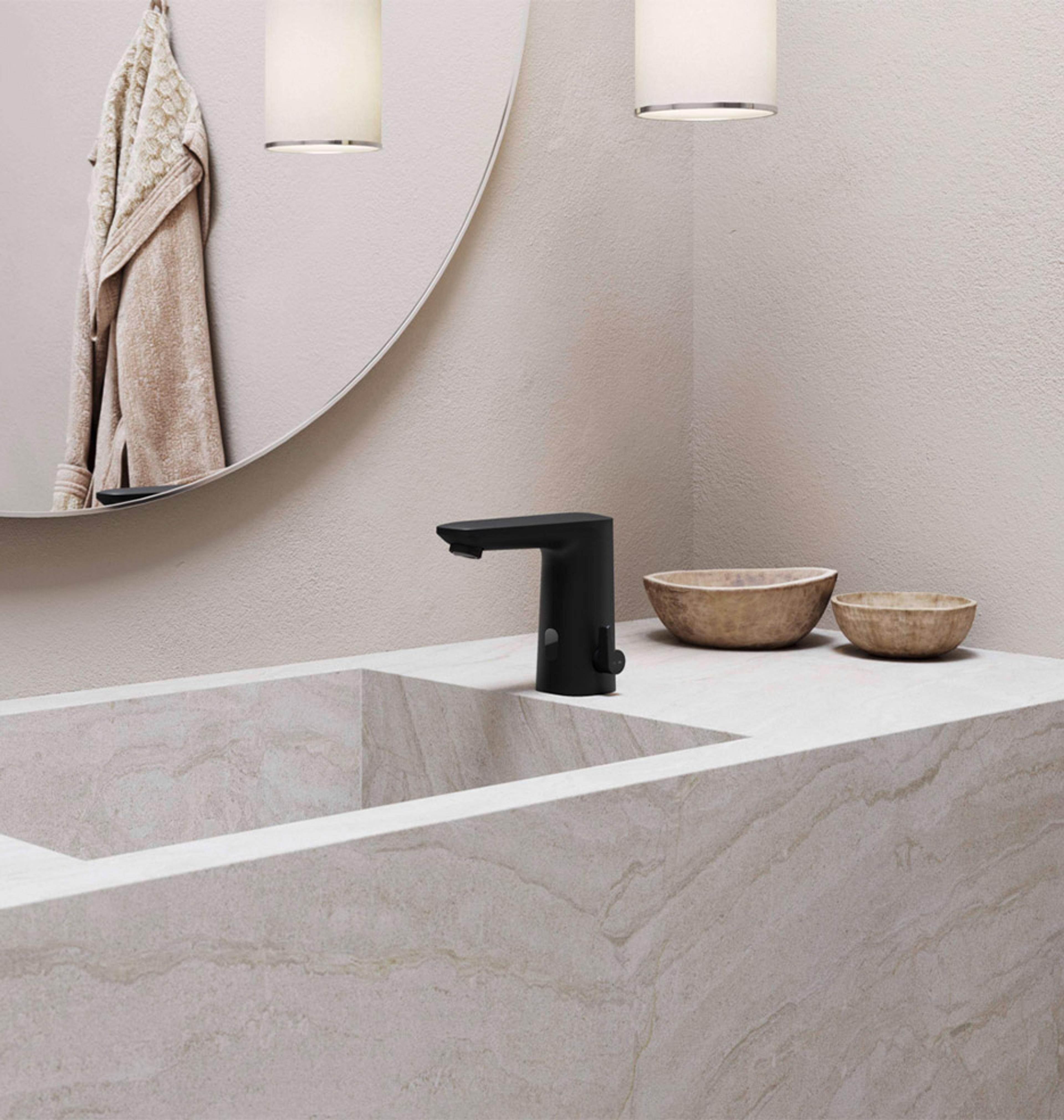 - Miljøvennlig: Kranen er vannbesparende og et smart miljøtiltak i hjemmet. Visste du at en berøringsfri kran kan redusere energi- og vannforbruket med opptil 50 %.