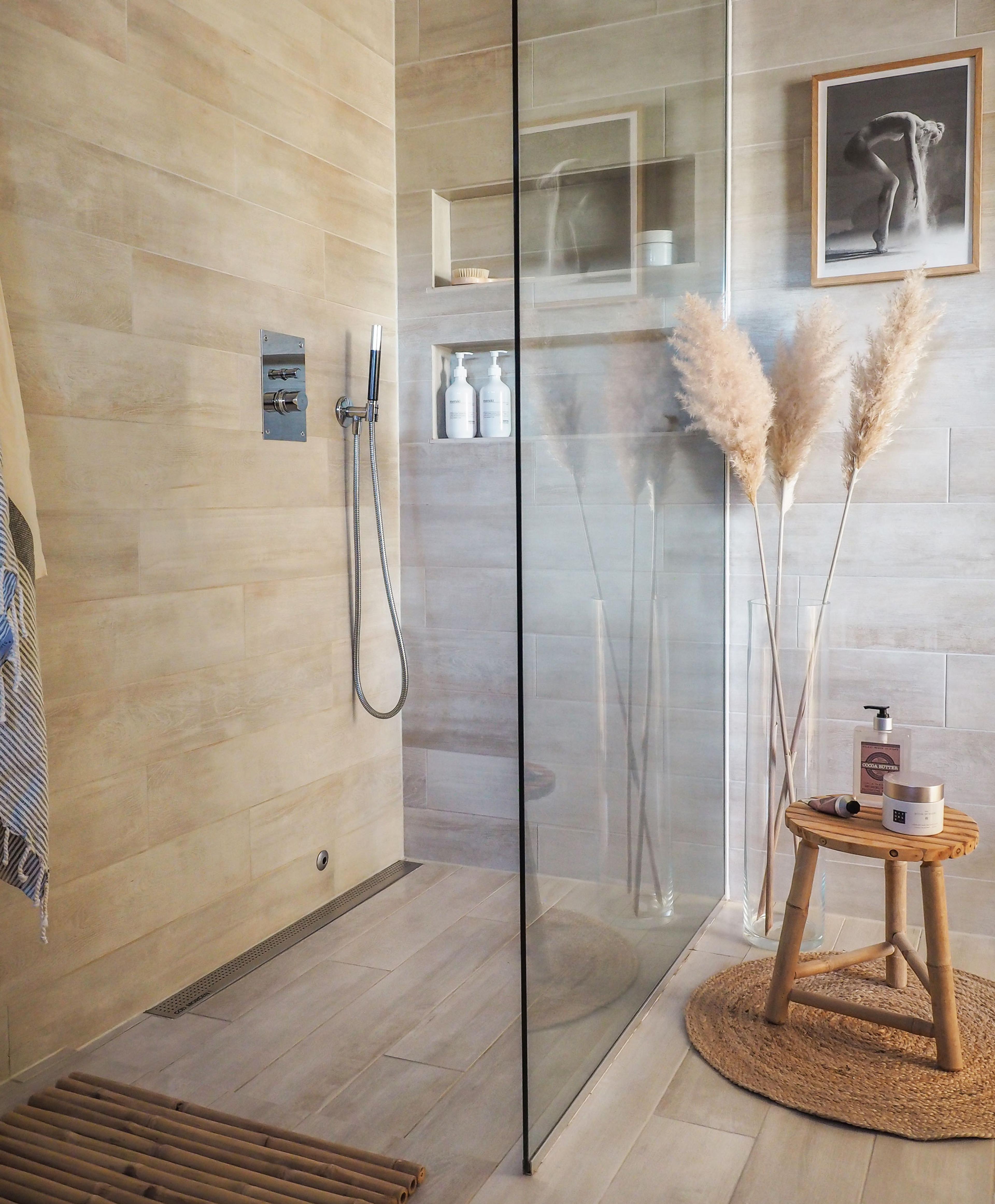 1. Fordi du ikke trenger å bygge fall i mer enn én retning, kan du uten problemer velge store fliser i dusjen.