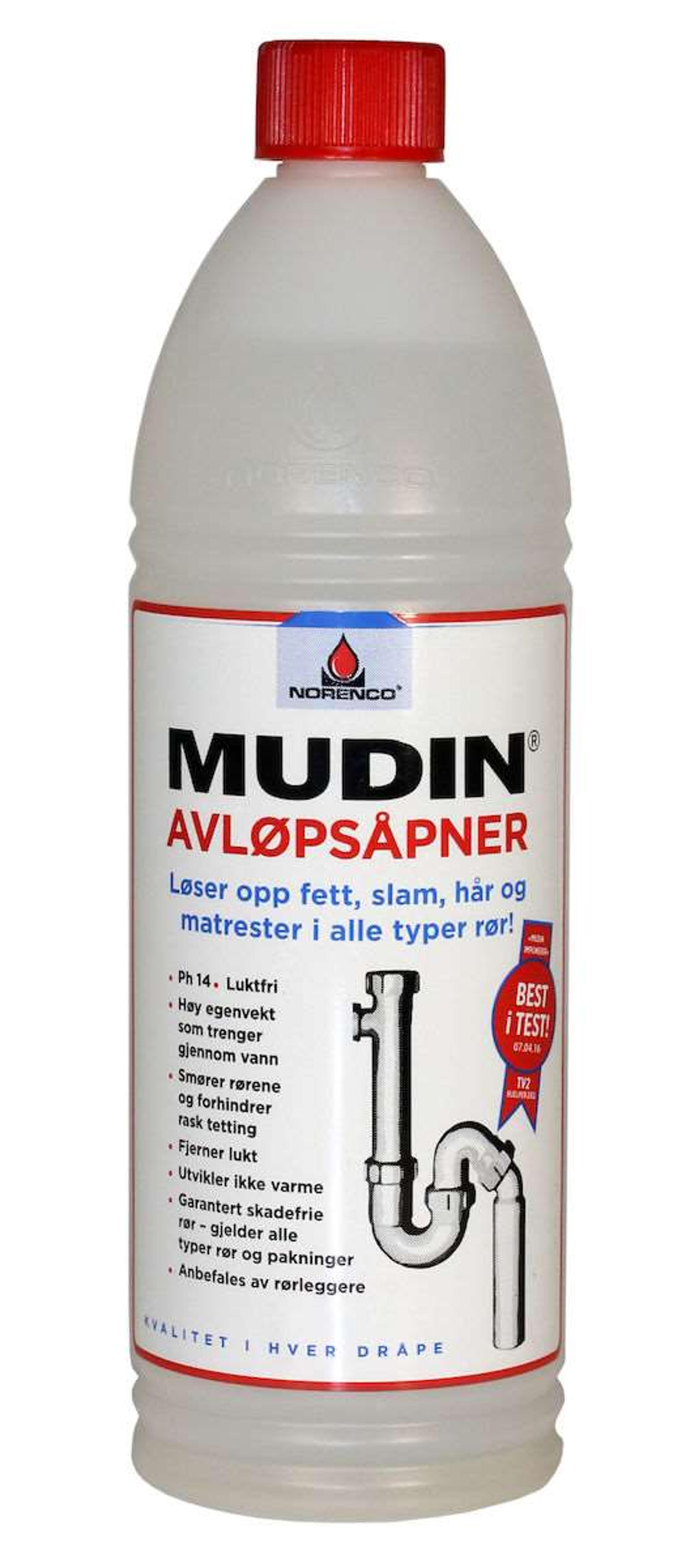 Med jevne mellomrom kan du også bruke en flytende avløpsrens, som for eksempel Mudin. Denne løser opp det meste av såpe, hudfett og hår som har samlet seg, både i sluk og på innsiden av rørene.