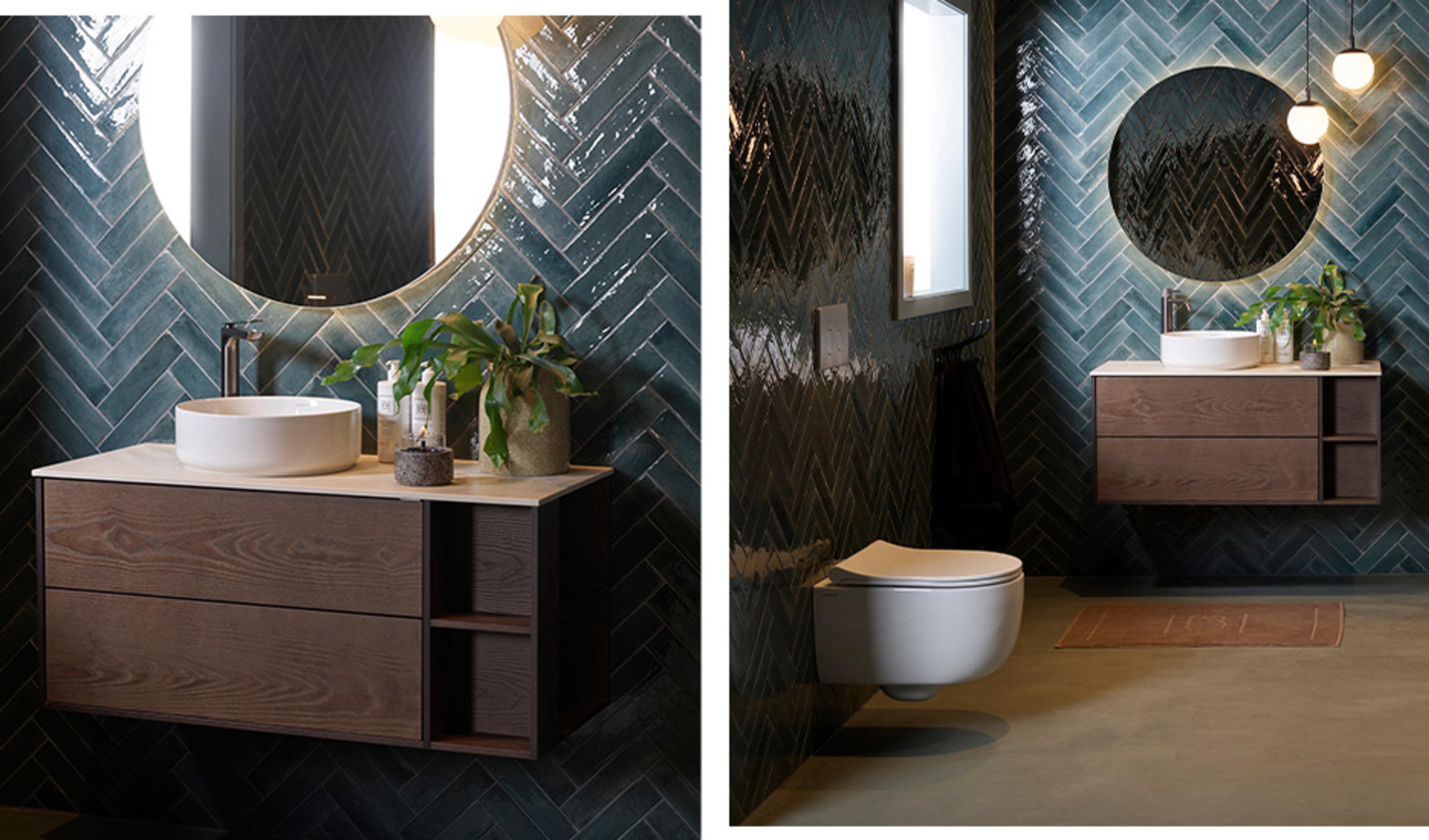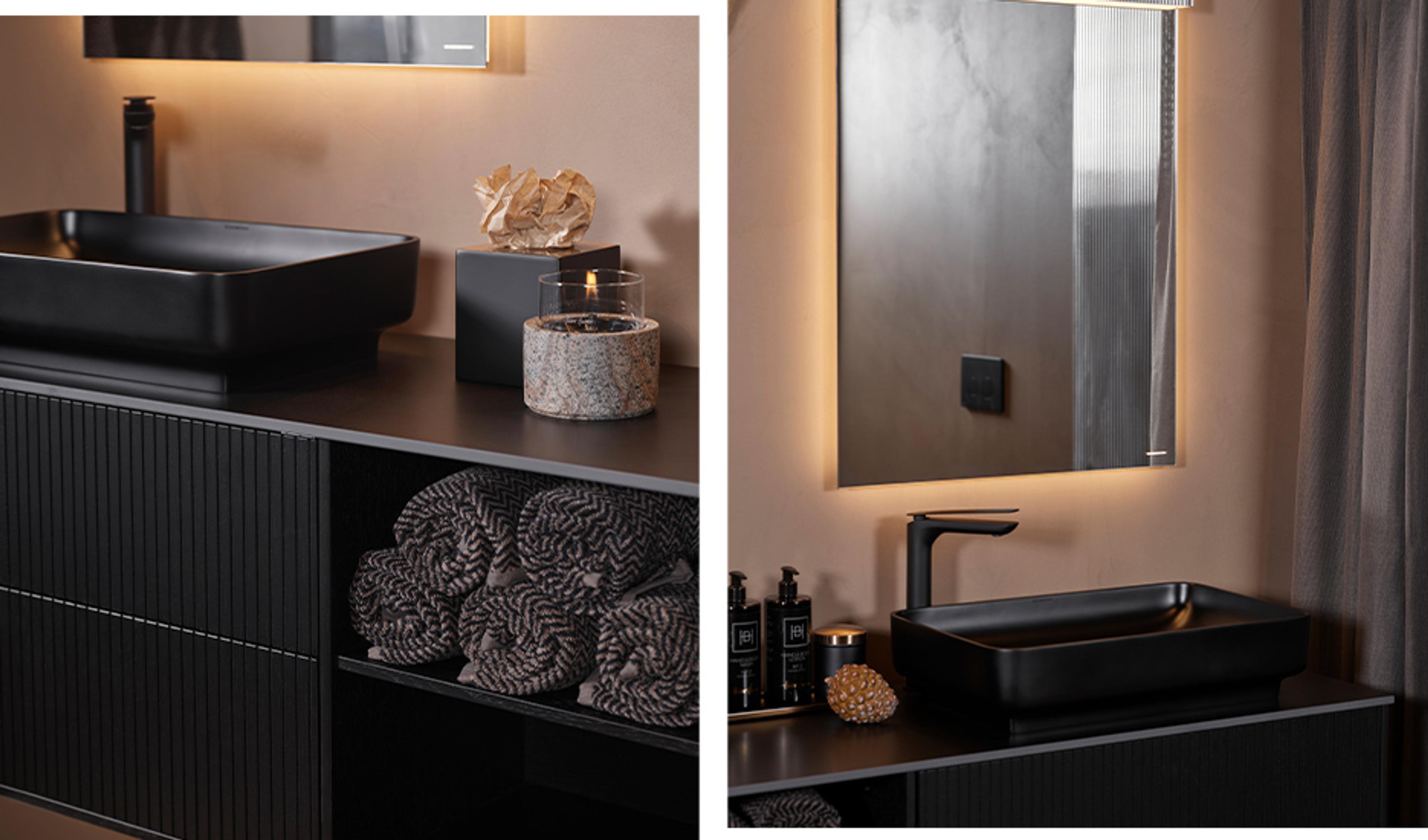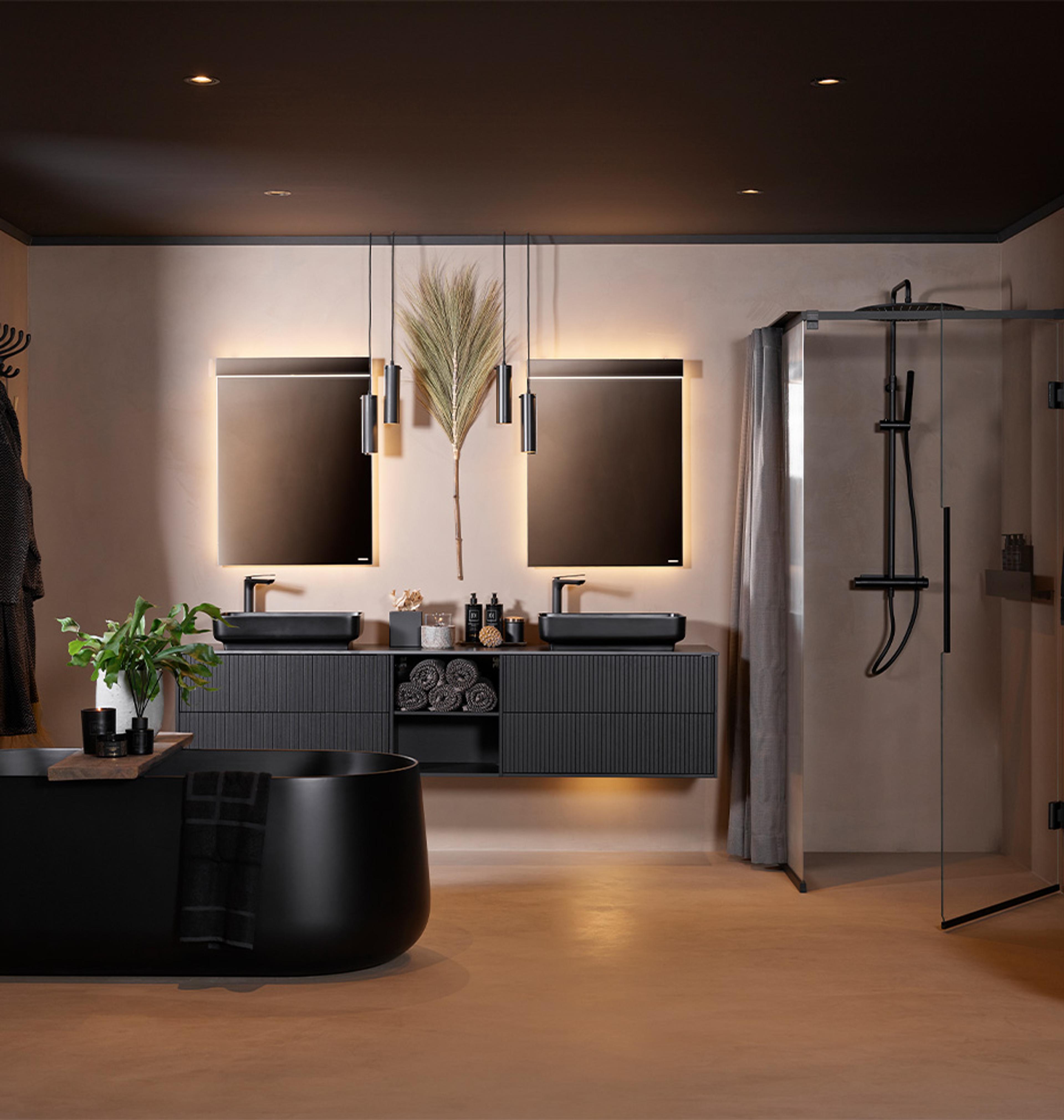 Dra hjemmets stil inn på badet: Velg mellom ulike fronter, farger og oppbevaringsløsninger | Svedbergs Epos by Halvor Bakke Baderomsmøbel i sort ask, 200 cm bredde