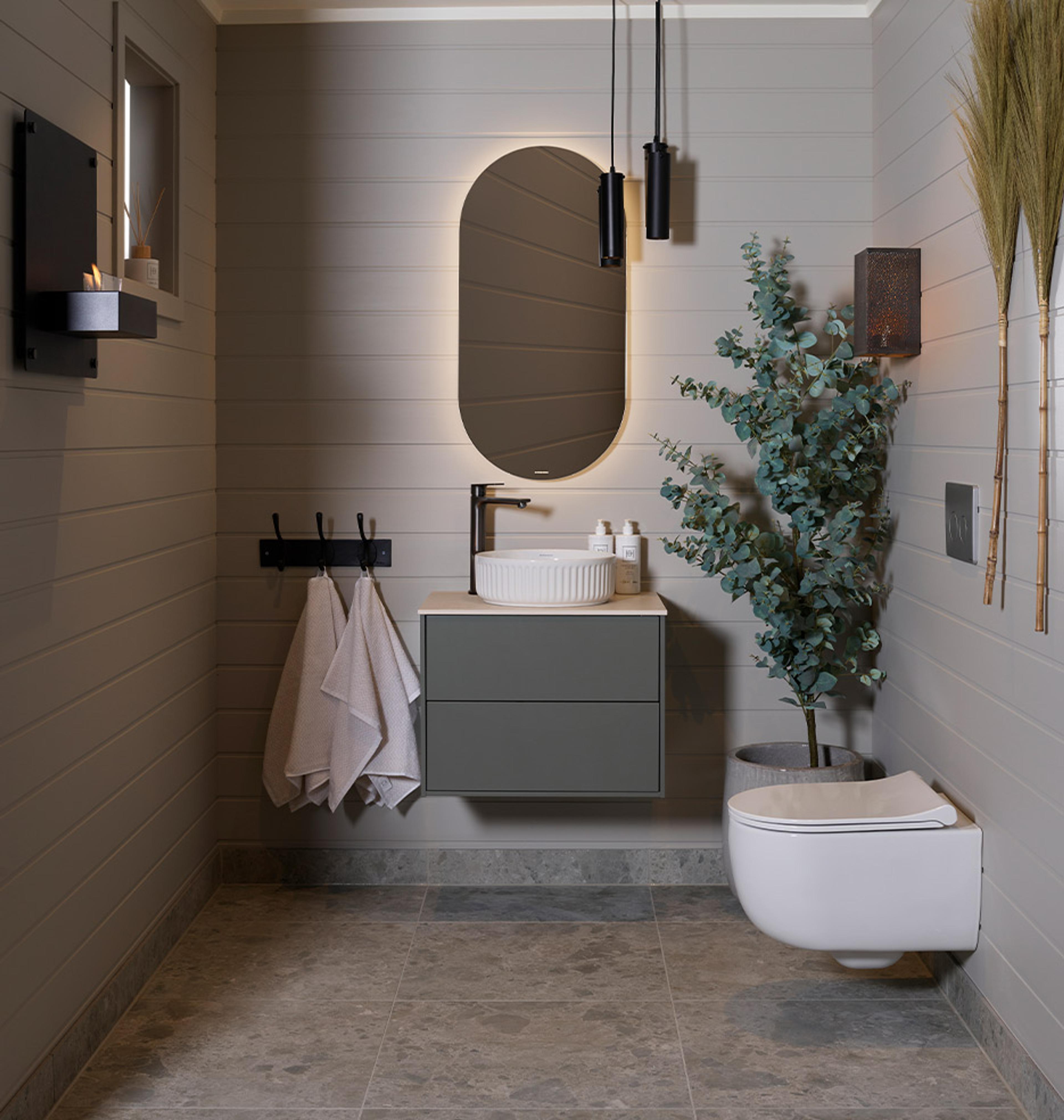 – Dette har vært et kjempespennende prosjekt der valgfrihet har vært et nøkkelord gjennom hele prosessen. Jeg er veldig fornøyd med resultatet. Man kan velge ulike fronter og farger, og den åpne oppbevaringen gir plass for kremer, levende lys eller noe fra naturen. Det viktigste for meg har likevel vært at møblene får baderommet til å føles koselig og varmt. Det er et sted som skal gi energi og lyst.
