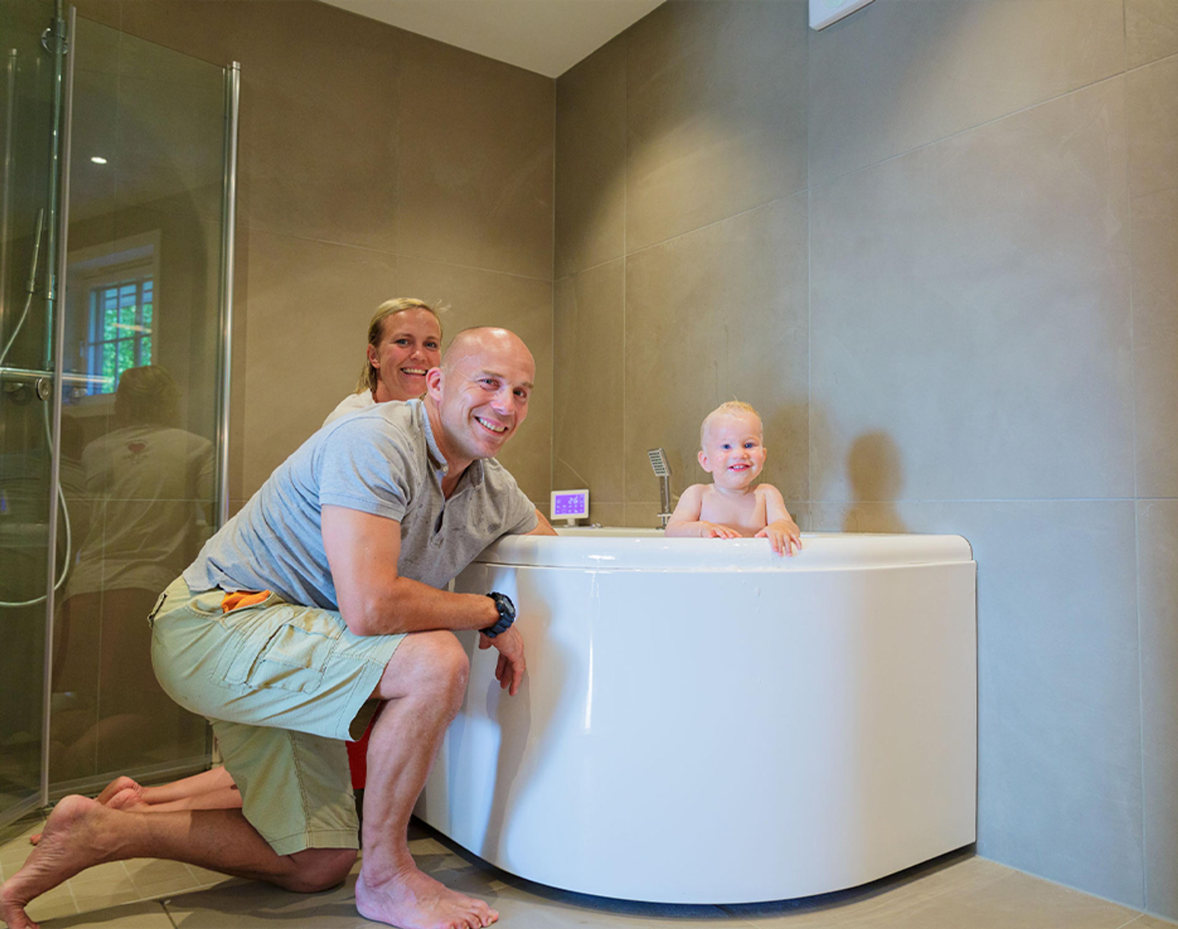 Badet har blitt et samlingspunkt for den aktive småbarnsfamilien, og blir ofte brukt av alle samtidig. Her er det både dusj, badstue og boblebad fordelt på 8,5 kvadratmeter (ikke medregnet badstuen).