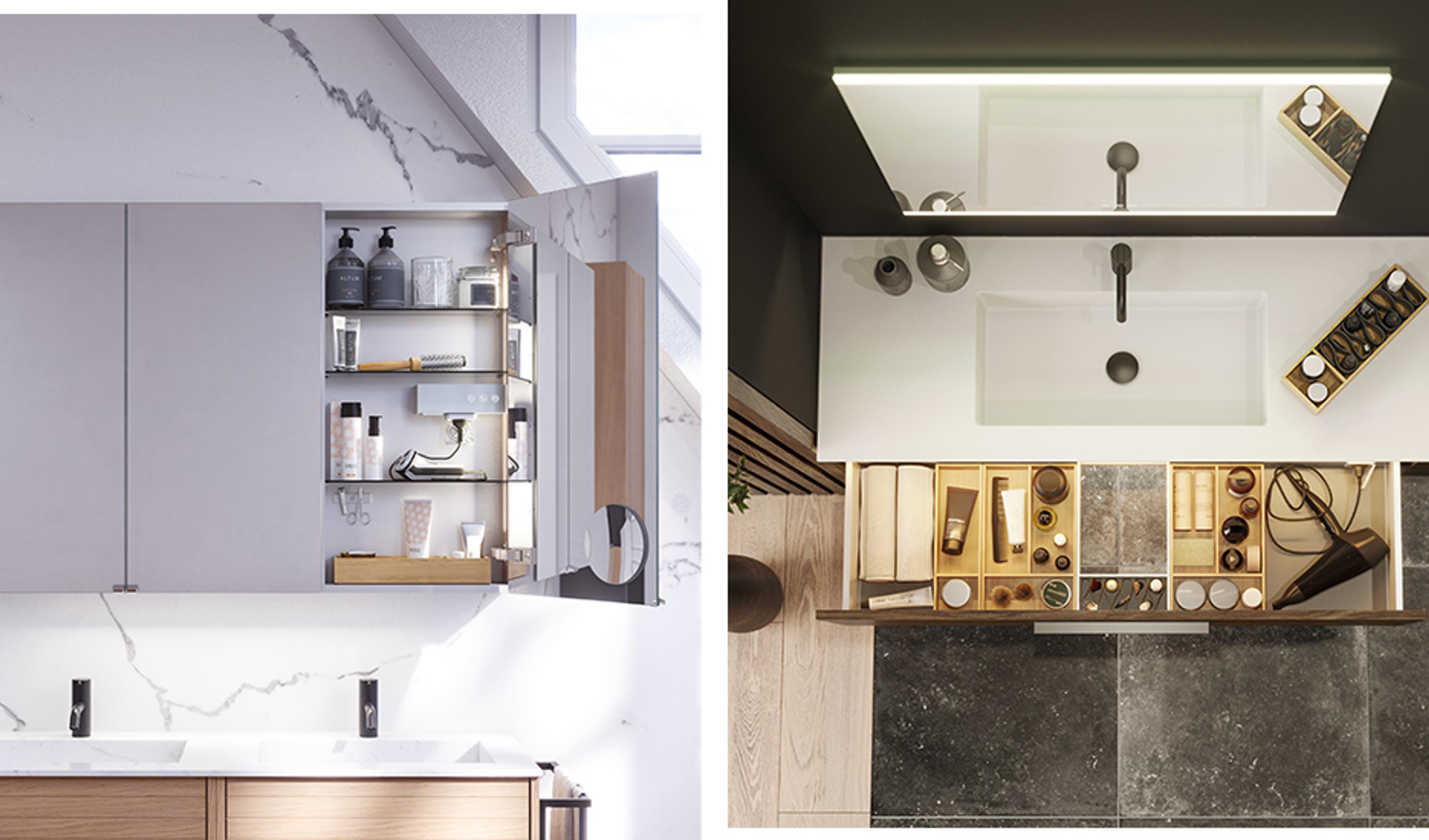 Funksjonelle løsninger – Skuffer med inndelinger og speilskap med ekstra oppbevaring gir deg mer plass.