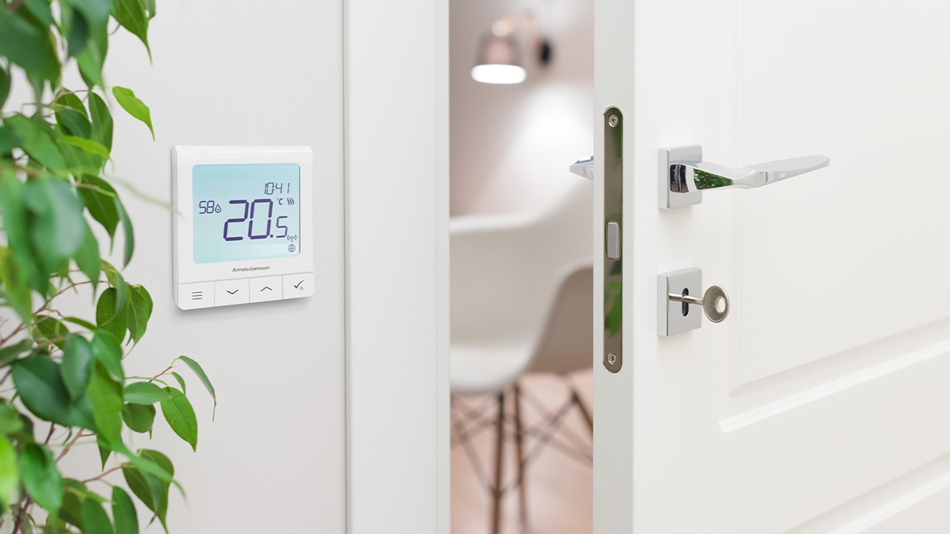 FLEKSIBILITET OG KOMFORT: Oppgrader gulvvarmeanlegget med smart varmestyring | Her ser du «Quantum» trådløs romtermostat fra Armaturjonsson.