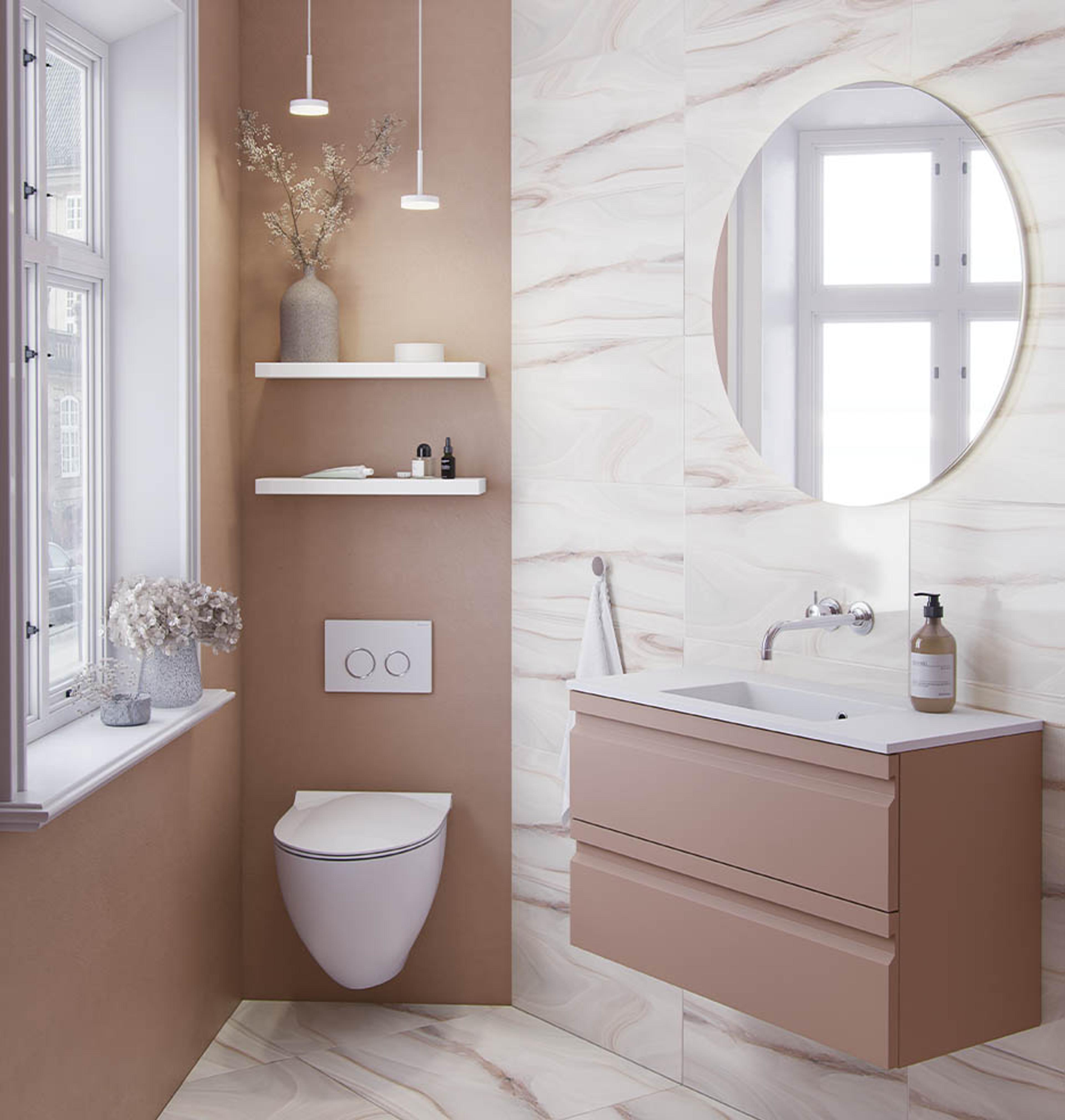 VELG DIN FAVORITTFARGE: Her ser du «Inzo» 80 cm baderomsmøbel i den valgfrie fargen «Deep Rose» (NCS S 4010-Y70R).