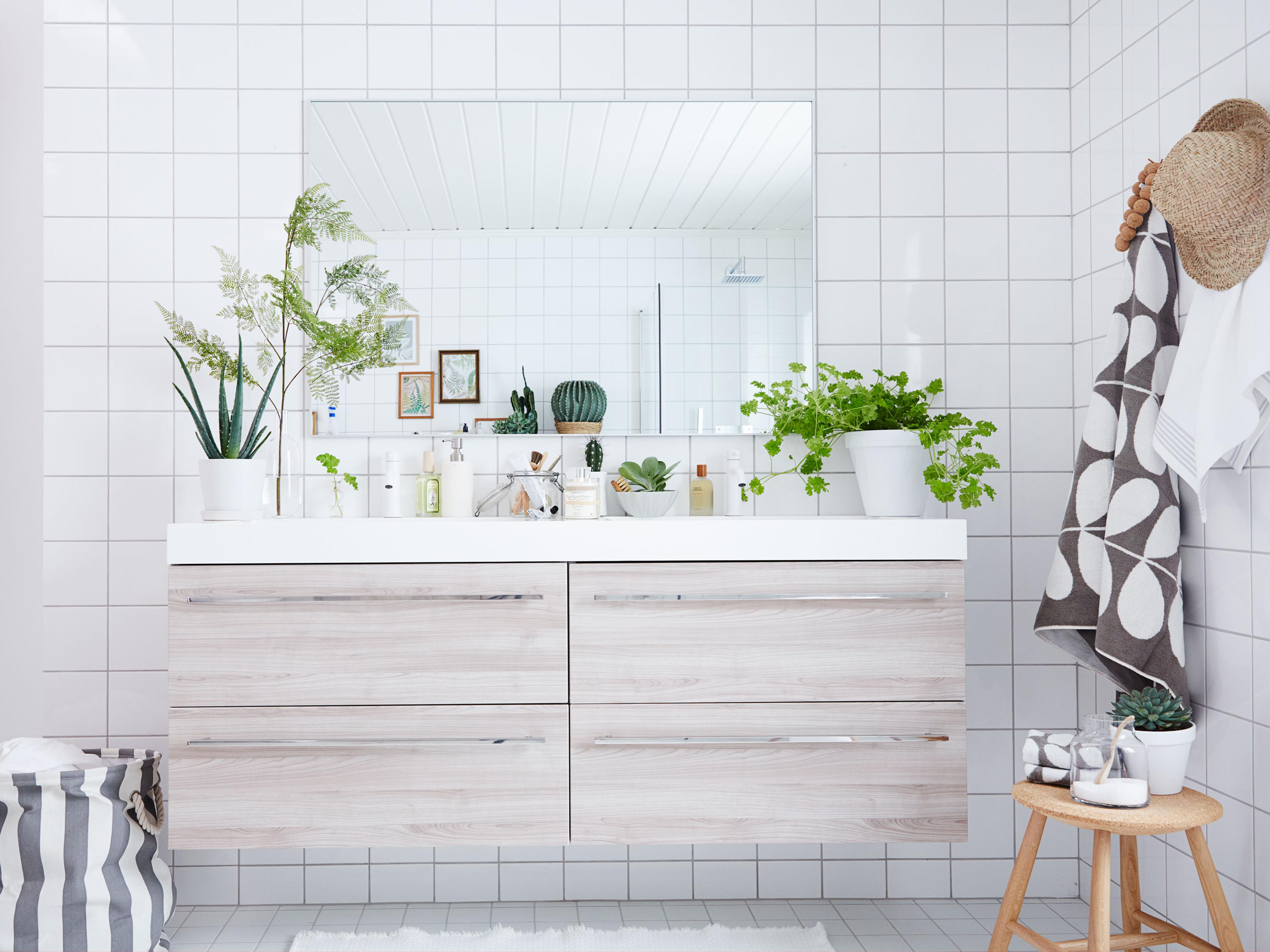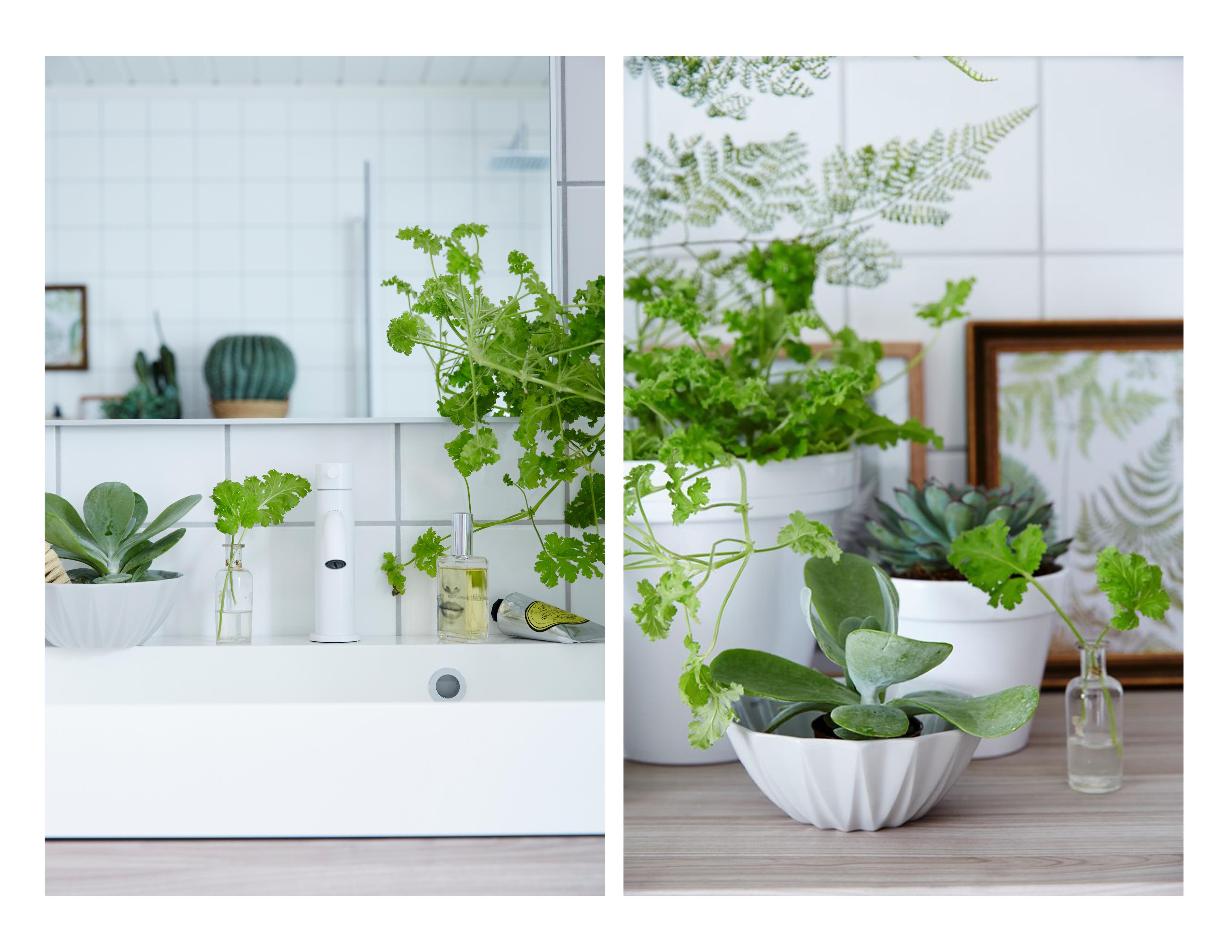 EN OASE PÅ BADEROMMET: Skap din egen lille oase med grønne planter og sukkulenter på baderommet.