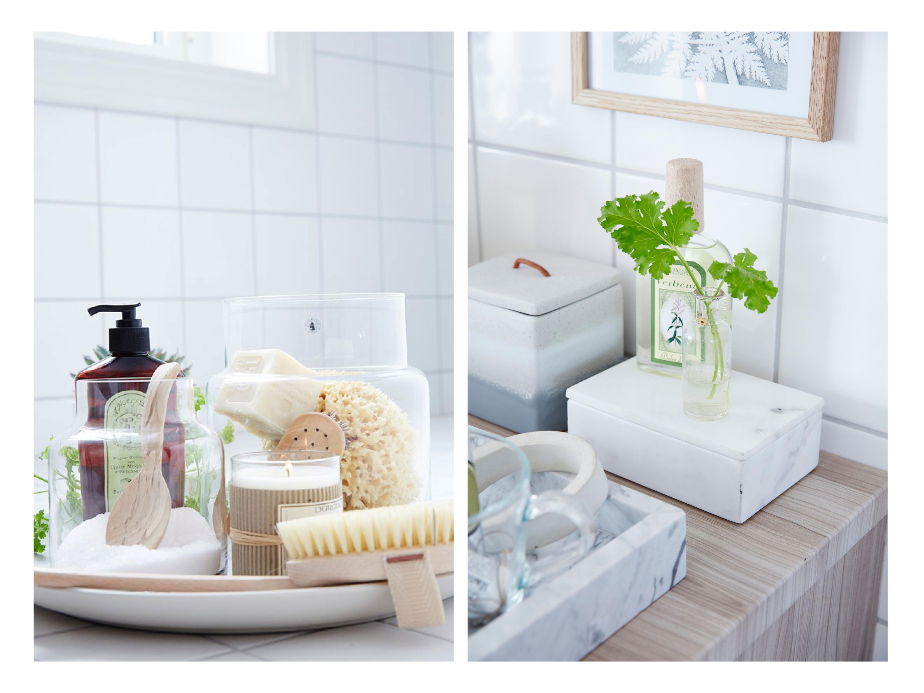 FOKUS PÅ DETALJER:Duftlys, planter og fine bokser gir det lille ekstra til baderommet.