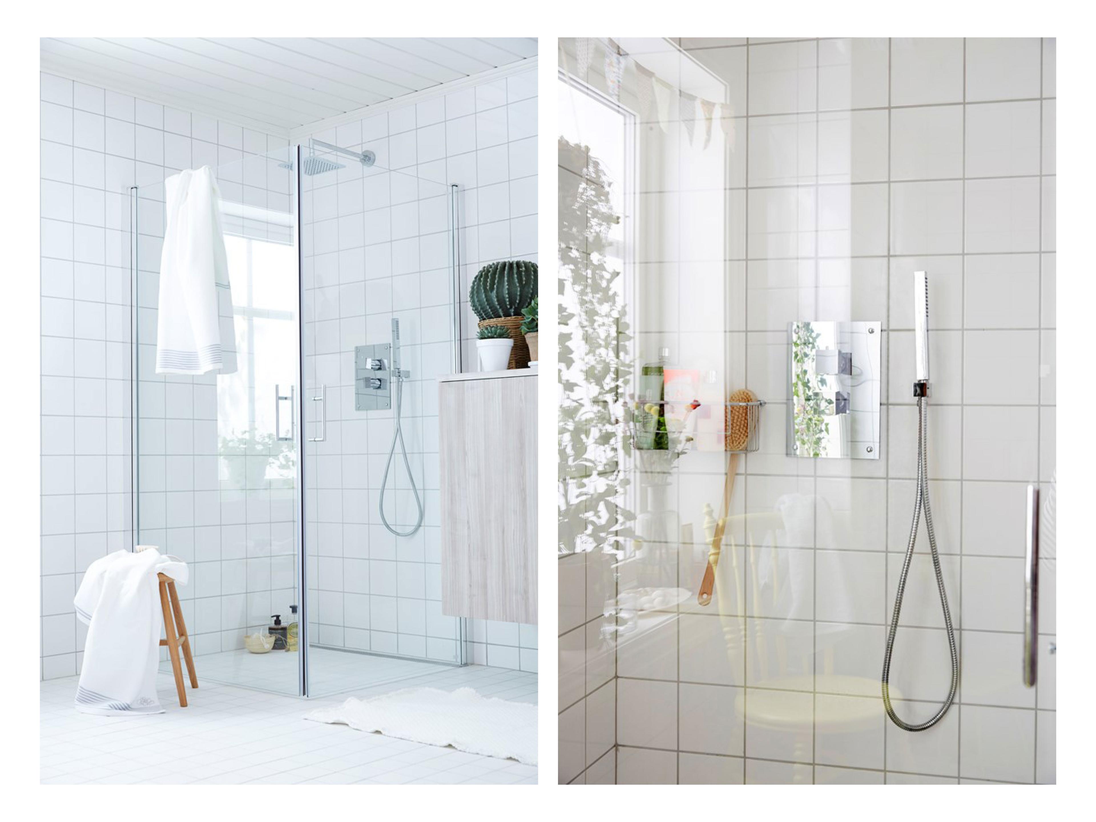 Det finnes mange ulike dusjløsninger, som dusjkabinett og dusjhjørne med dusjdører.