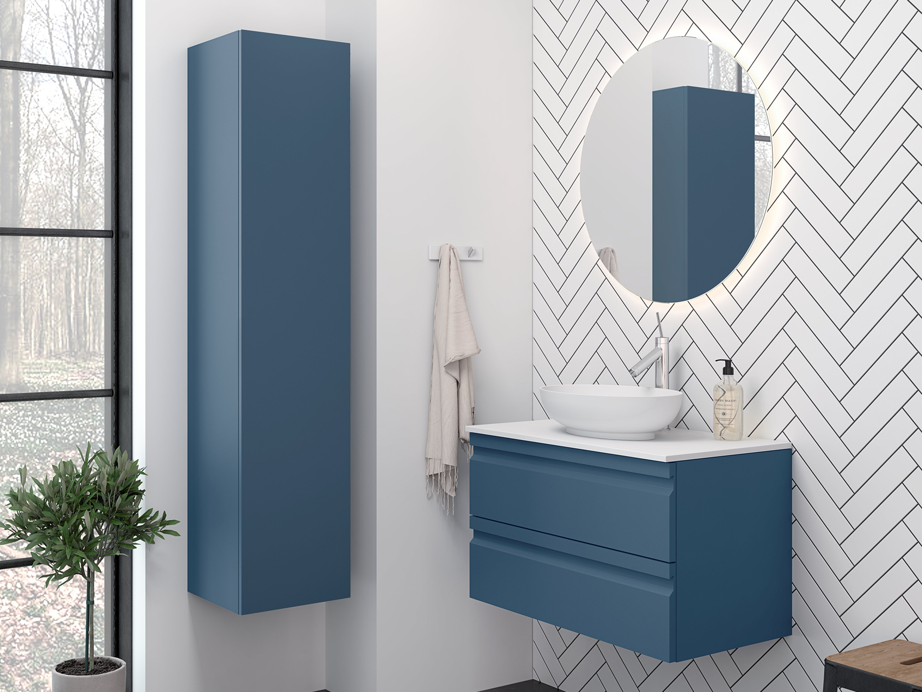 Blått er en annen farge som tåler tiden tann, og som passer godt inn på baderommet. Gå for en lys og frisk blåtone, eller en mørkere og lunere variant, som «midnight blue».