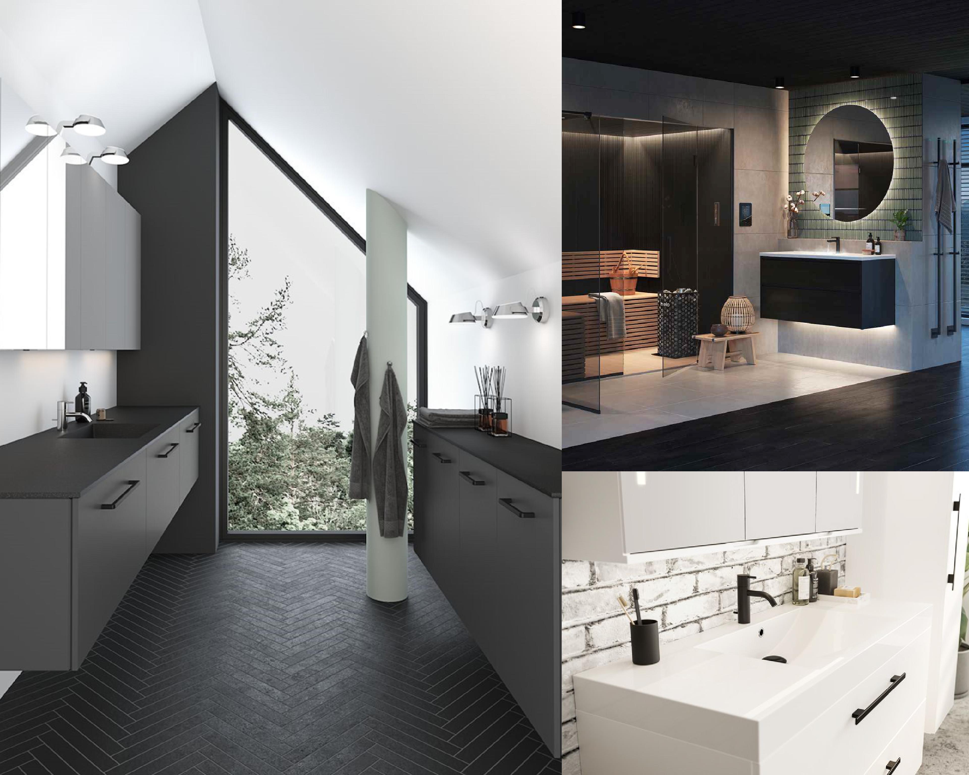Et bad med svarte detaljer passer både for den sofistikerte og den røffe. Svarte fronter mot lyse fliser skaper en kontrast som gjør rommet levende. Kombiner det svarte med grånyanser for et mer maskulint uttrykk, eller myk opp med materialer av tre og messing. Planlegger du ny dusj? La den få et trendy utseende med takdusj, sluk og servantbatteri i svart. Enten om du velger store, svarte flater, eller små detaljer som en såpeholder eller håndklær, vil svarte sette et eksklusivt preg på ditt bad.