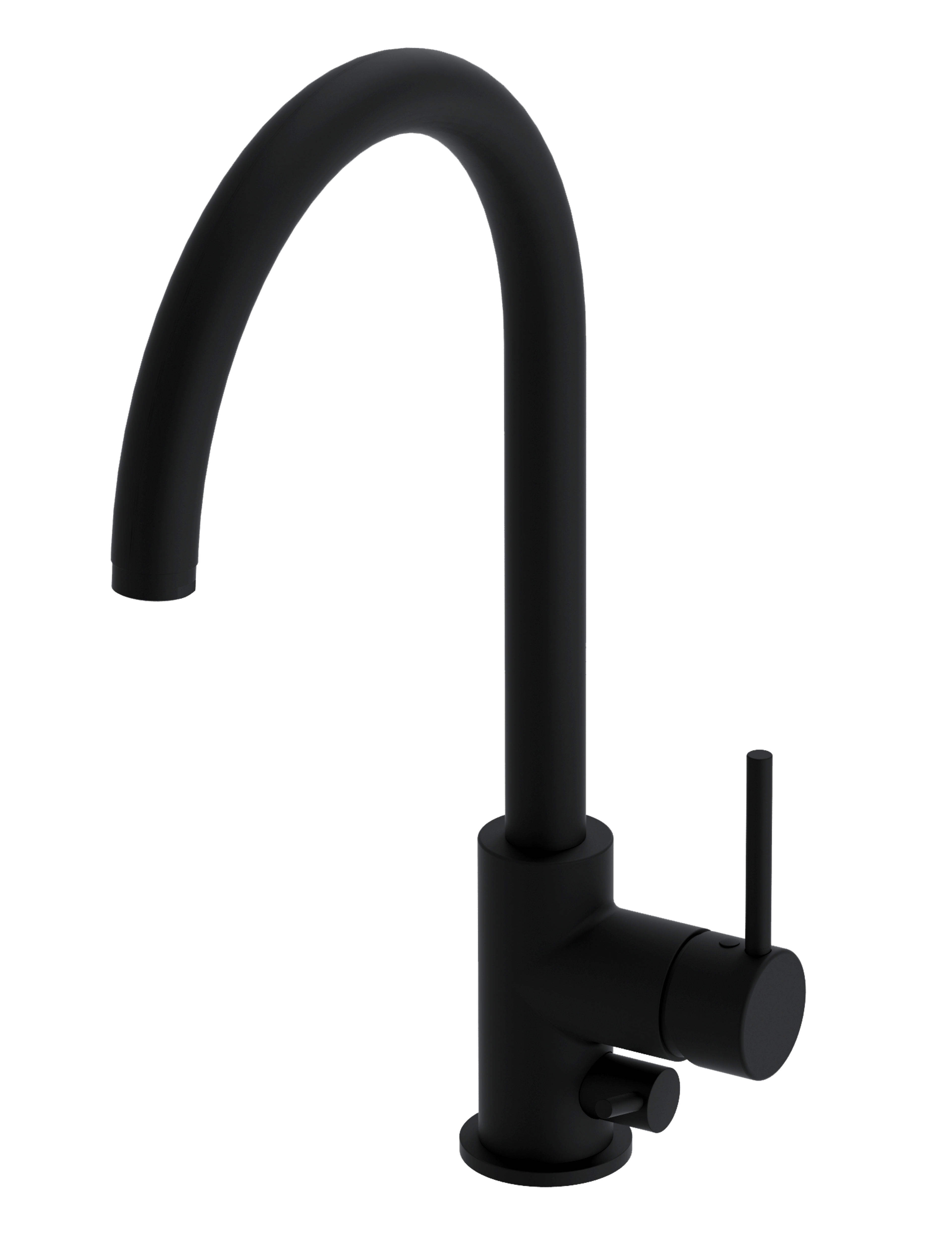 Kjøkkenkran med ettgreps betjening med fleksible slanger og med avstengning for oppvaskmaskin. Høy rund tut. Solid og driftssikkert i et slankt og moderne design. Velg mellom krom og sort matt. Høyde: 39,2 cm Farge: Sort Matt
