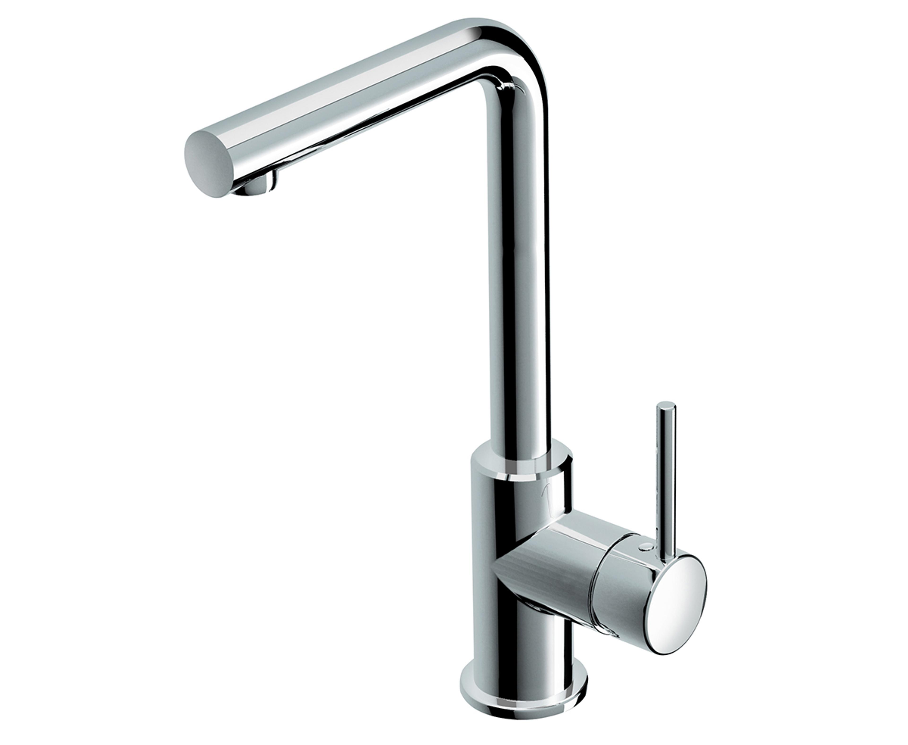 Kjøkkenkran med ettgreps betjening med svingbar tut og fleksible slanger. L-formet tut. Solid og driftssikkert i et slankt og moderne design. Velg mellom krom og sort matt.