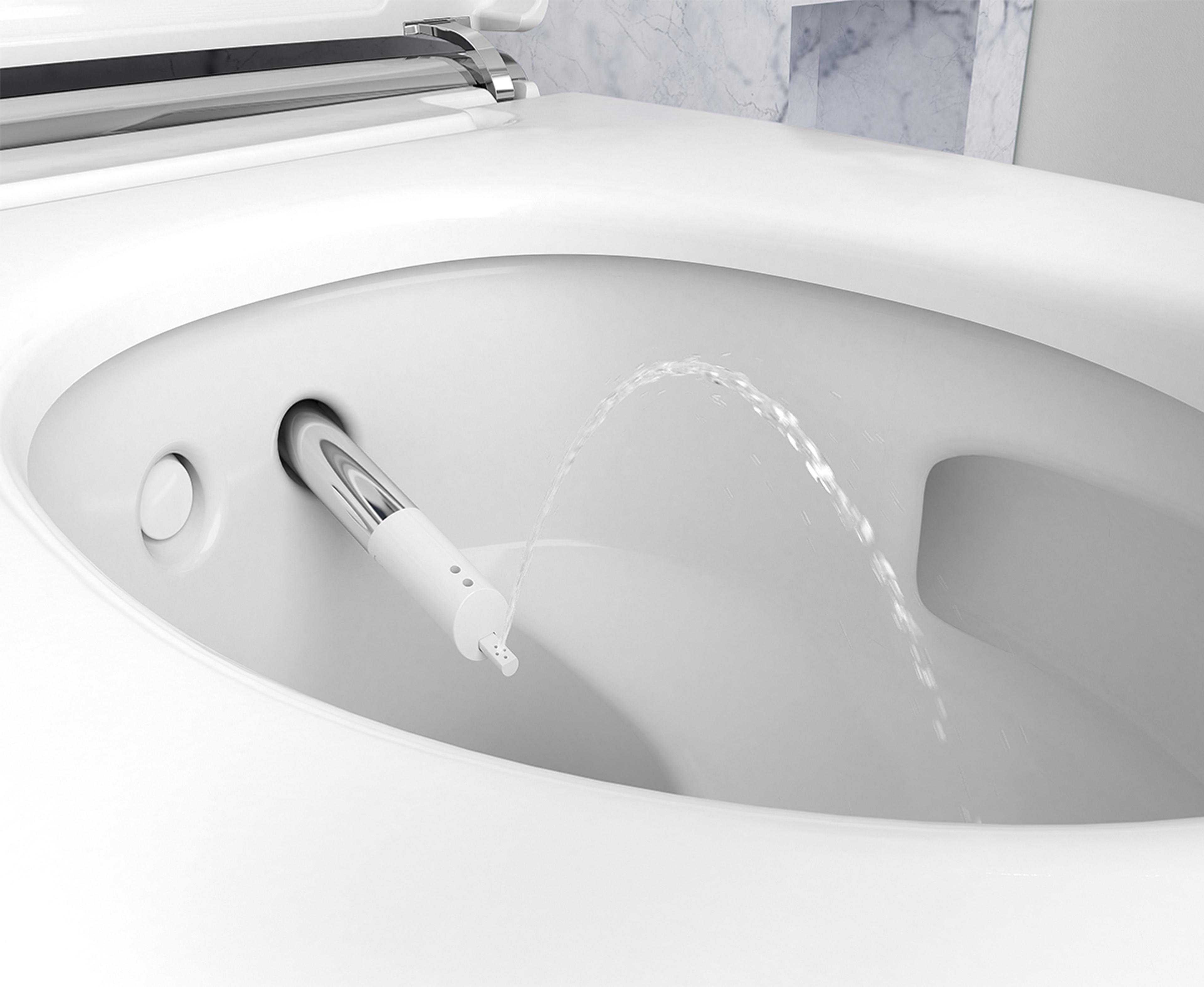 Dusjtoalettet AquaClean Mera byr på oppvarmet sete, automtatisk åpning og lukking av lokk. Toalettskål med åpen spylekant, nesten lydløst skyll og svært behagelig dusjstråle. Med fjernkontroll. Finnes med krom og hvitt deksel. Et dusjtoalett som passer inn i ethvert bademiljø - fylt til randen med revolusjonerende teknologi.