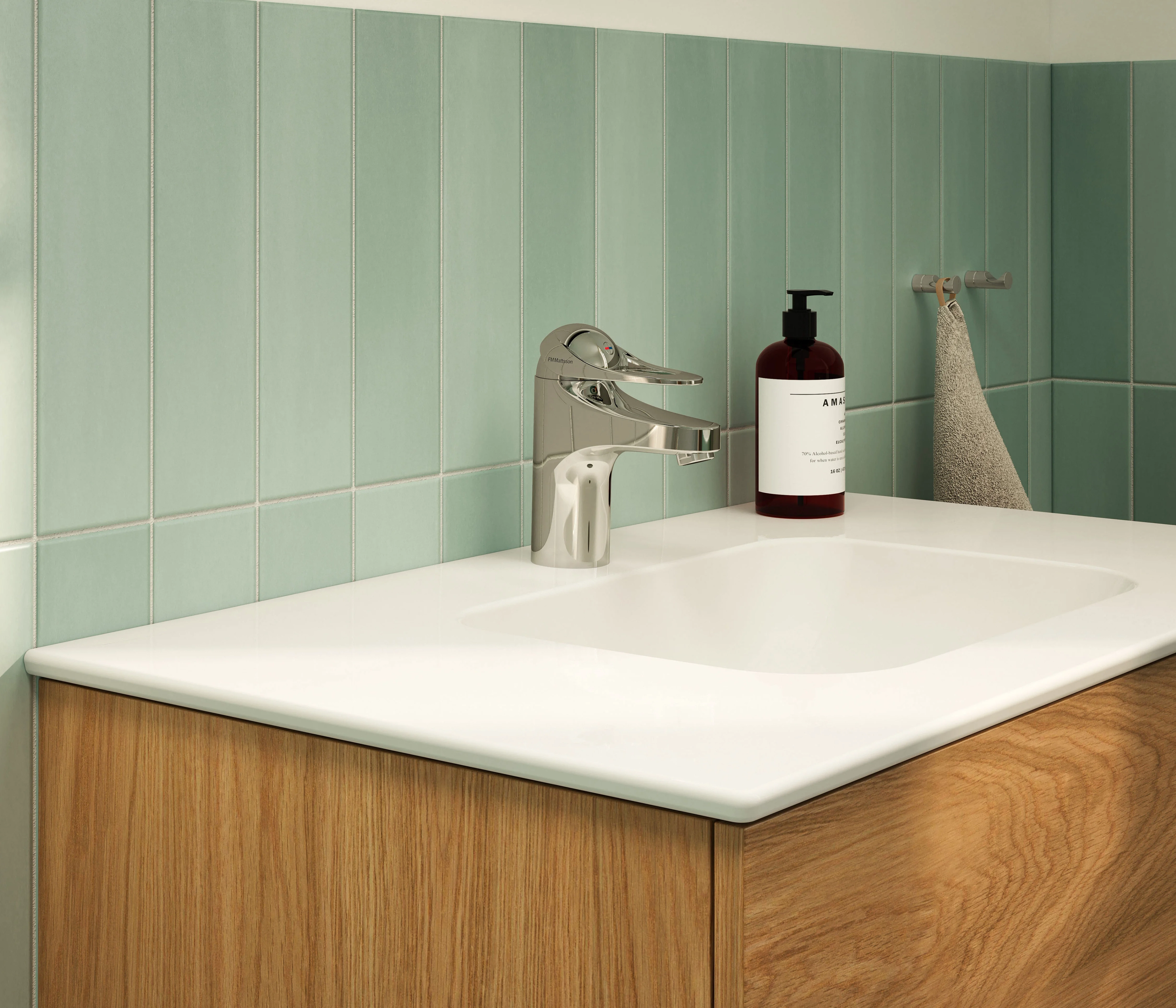 En servantkran med stilrent design. Kranens unike teknikk sparer vann og energi uten at det går på bekvemligheten for deg som bruker.