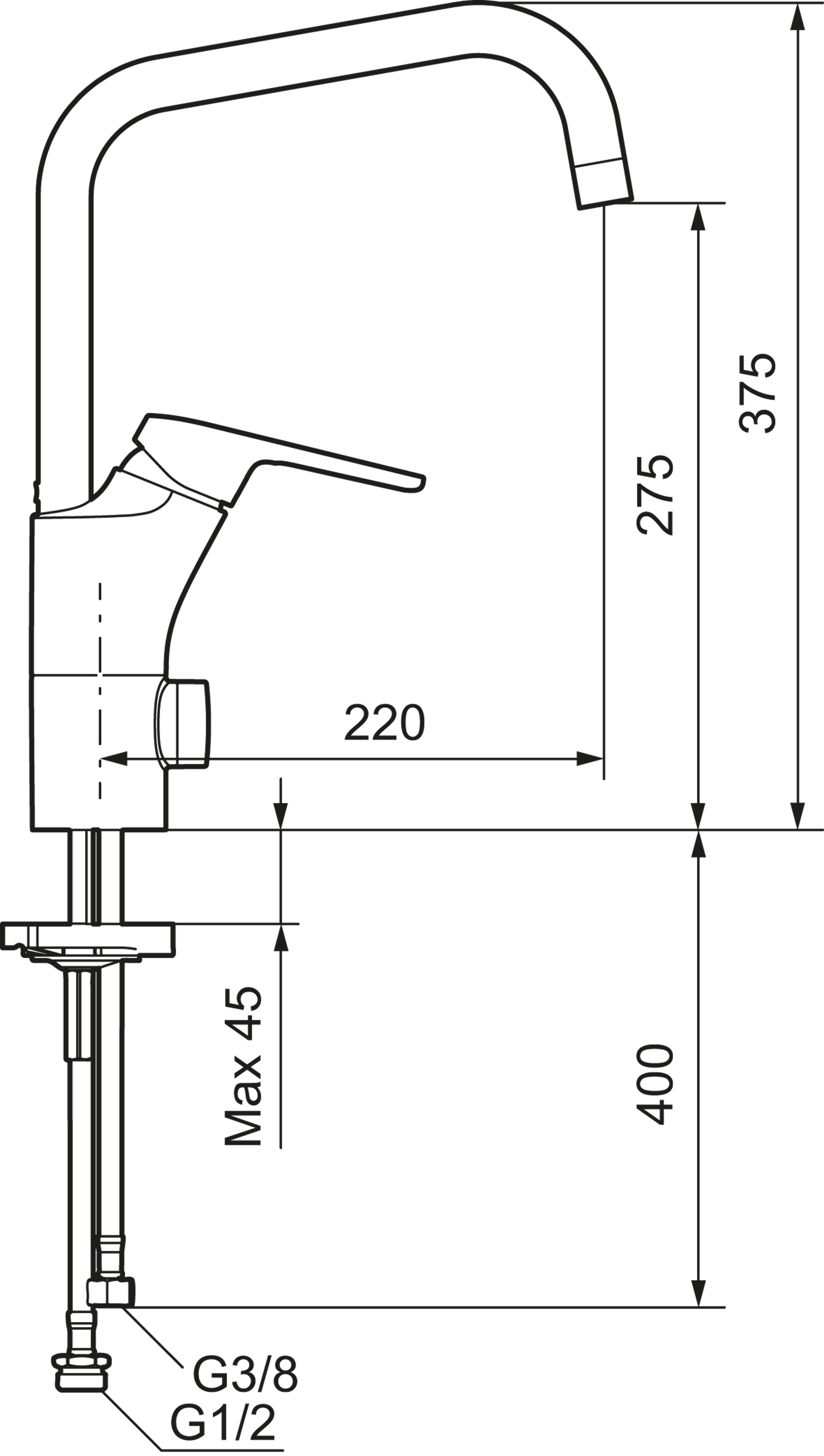 FMM Siljan Kjøkkenbatteri m/J-tut, avst, 3/8" SoftPex, krom