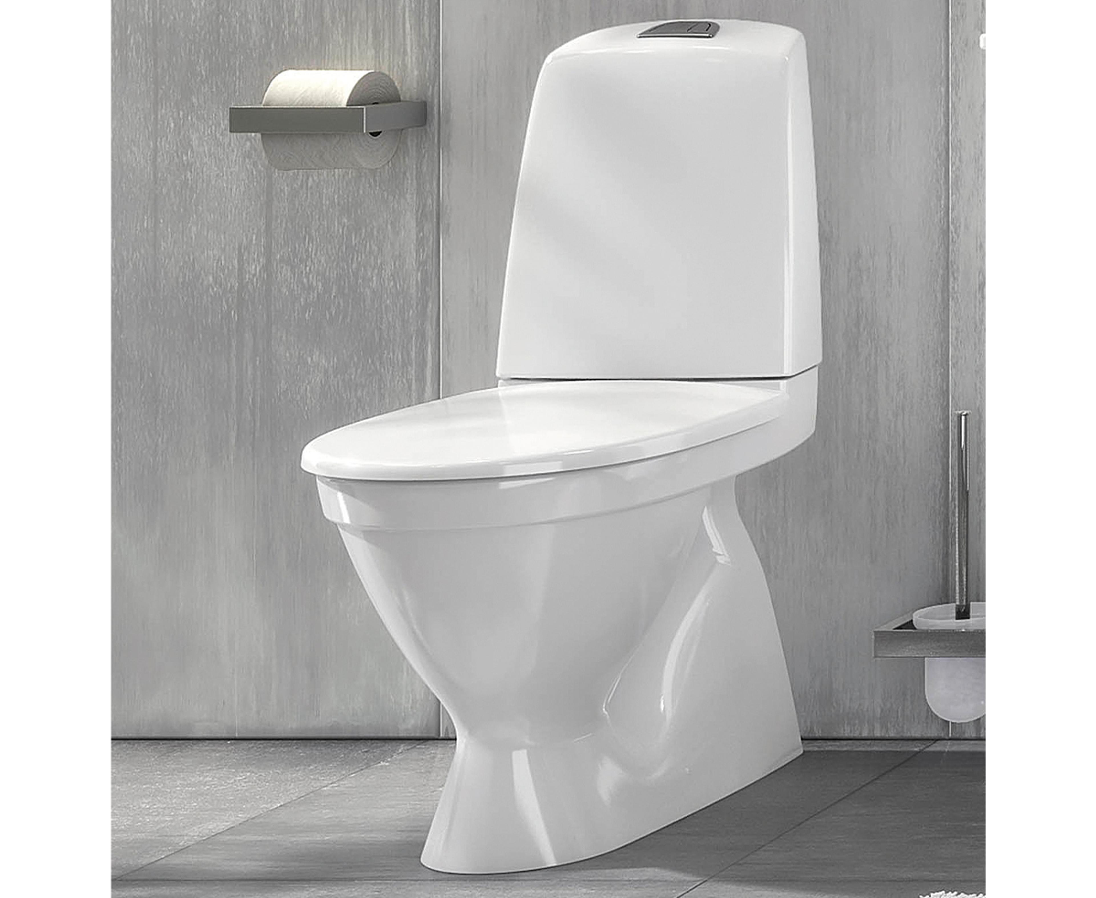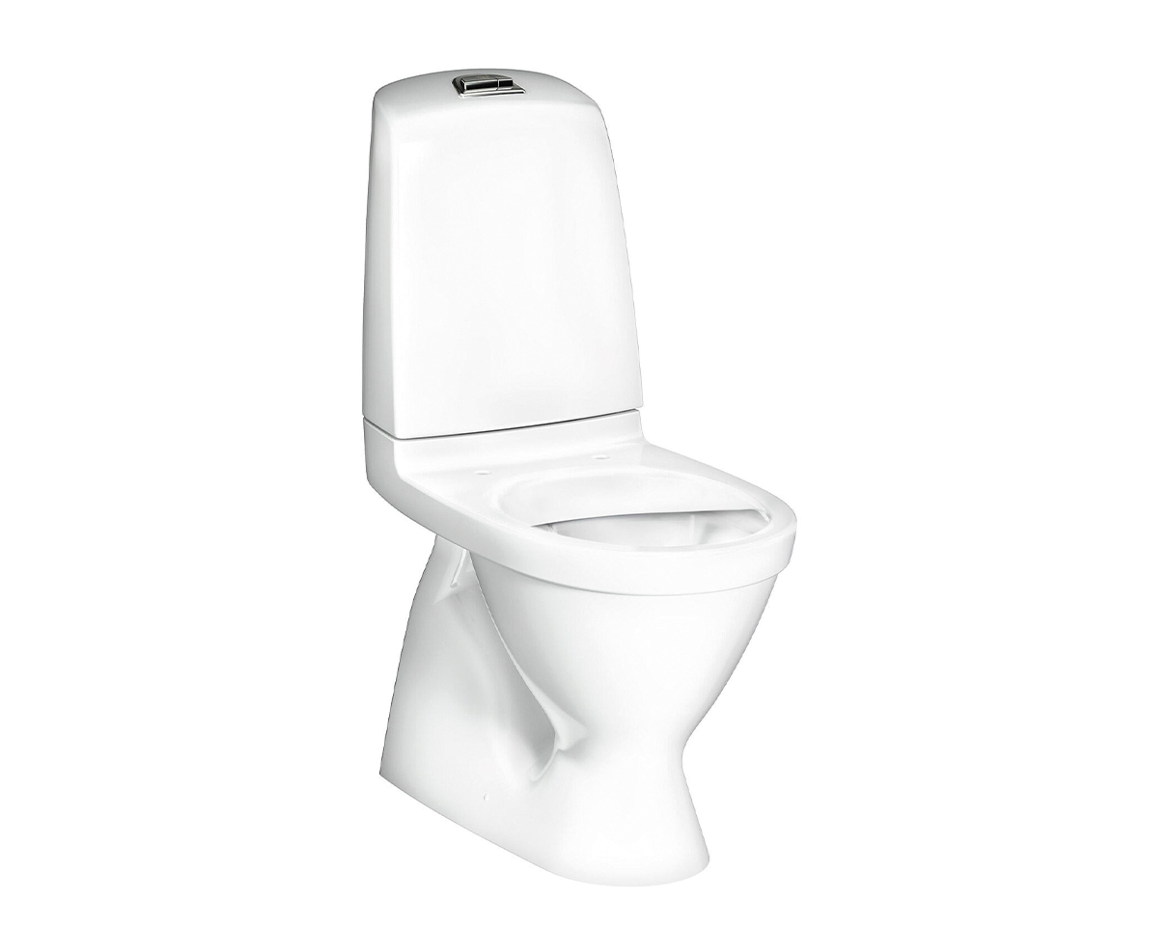 Gulvstående toalett med skjult S-lås, dobbeltspyling 2/4 L og åpen spylekant. Åpen spylekant kombinert med glatt overflate på utsiden og innsiden gjør den enkel å rengjøre. Pris uten sete.