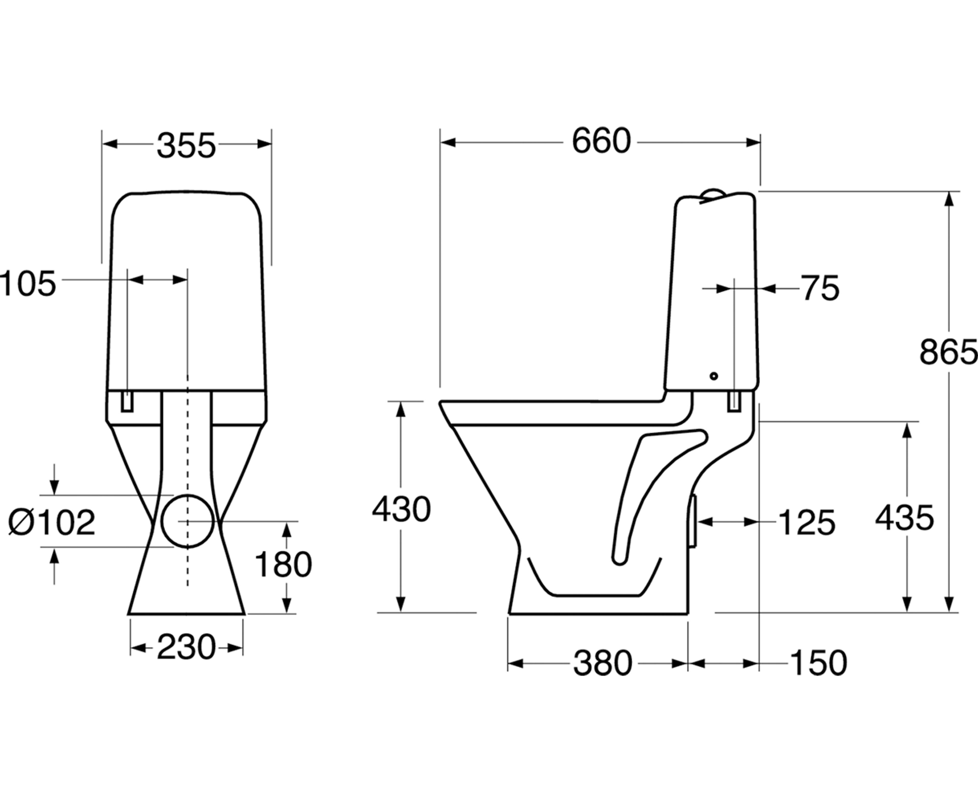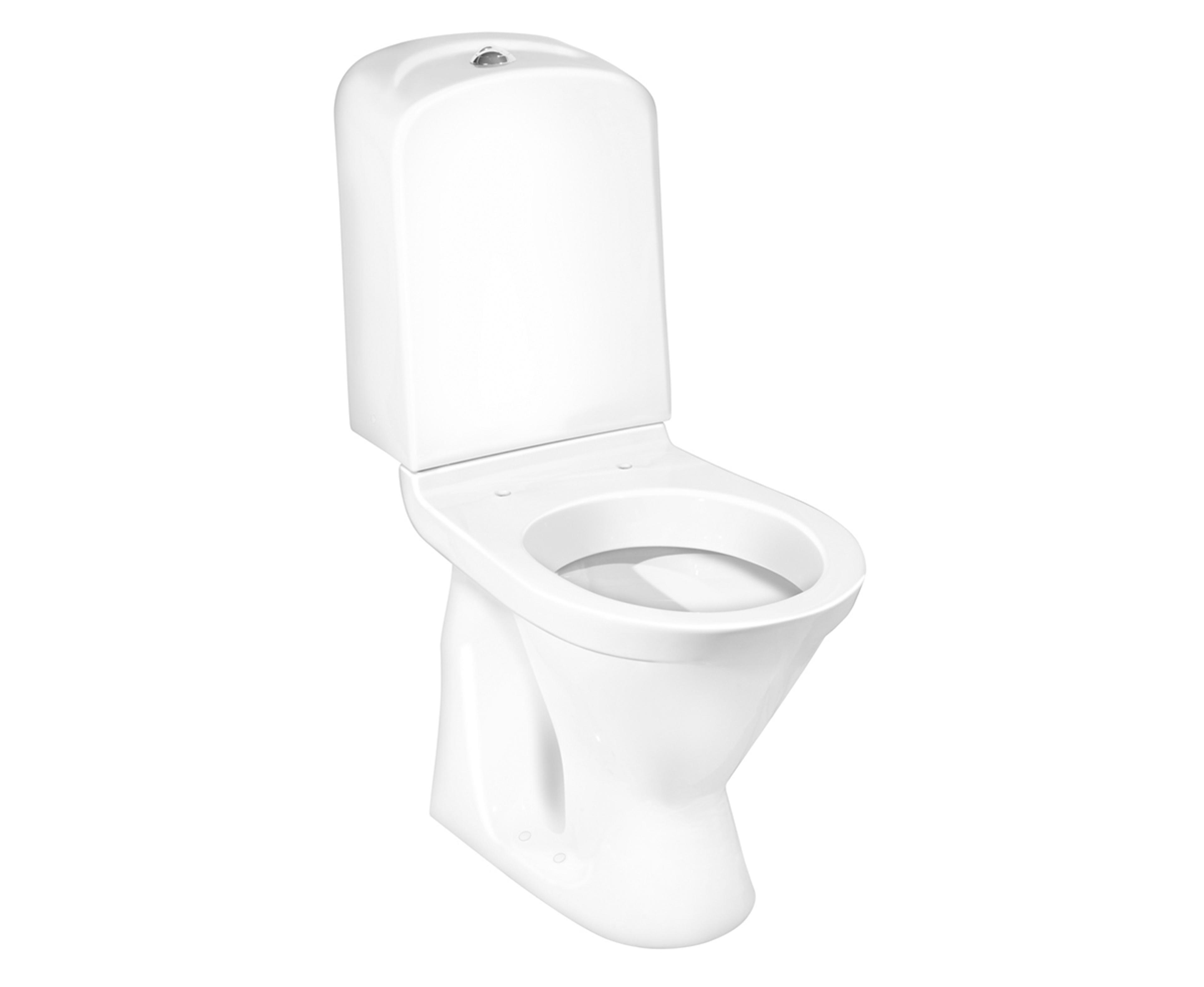 Gulvstående toalett med dobbeltspyling 3/6L og glasert under spylingskant for enklere rengjøring. Skjult P-lås. Pris uten sete.