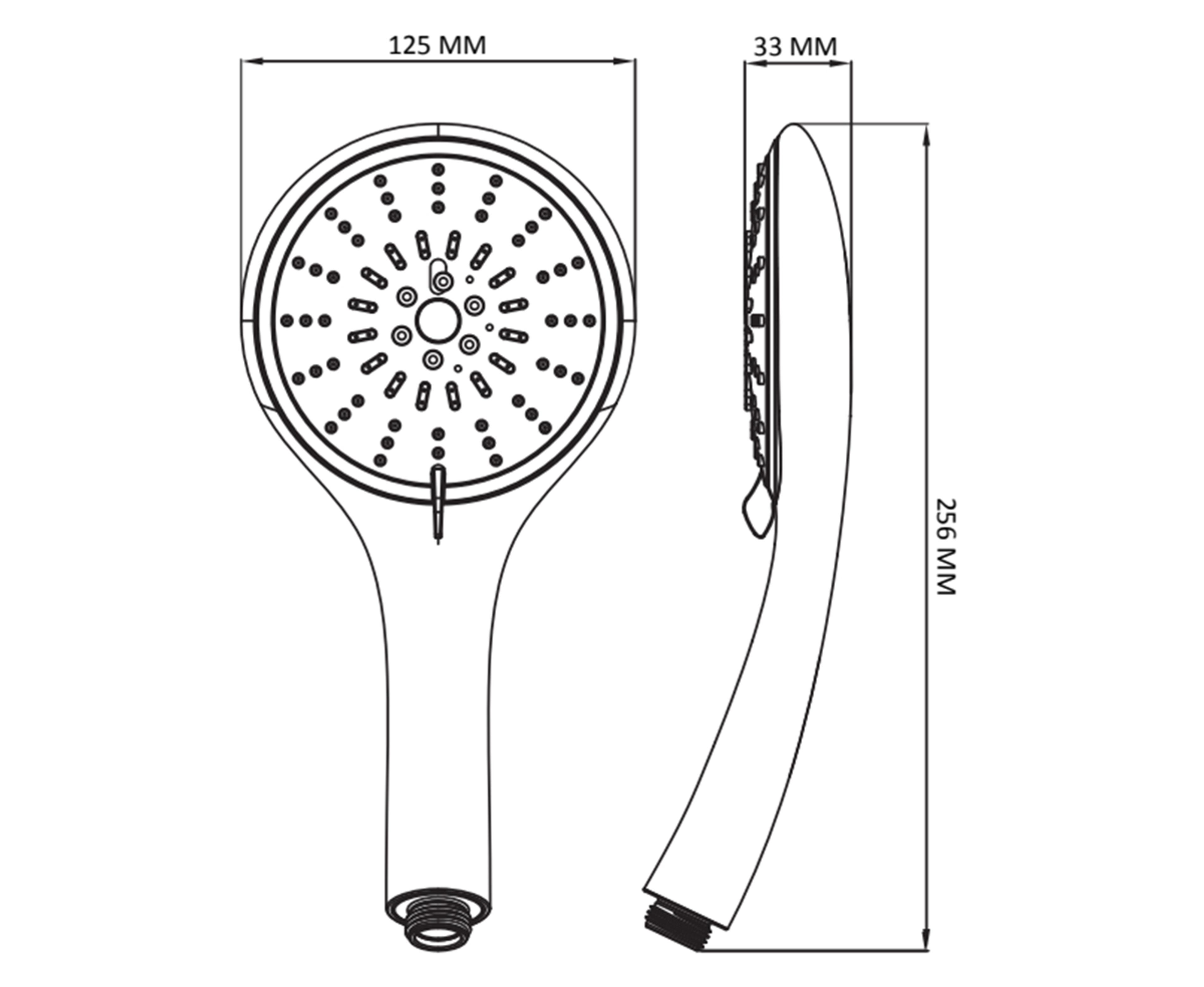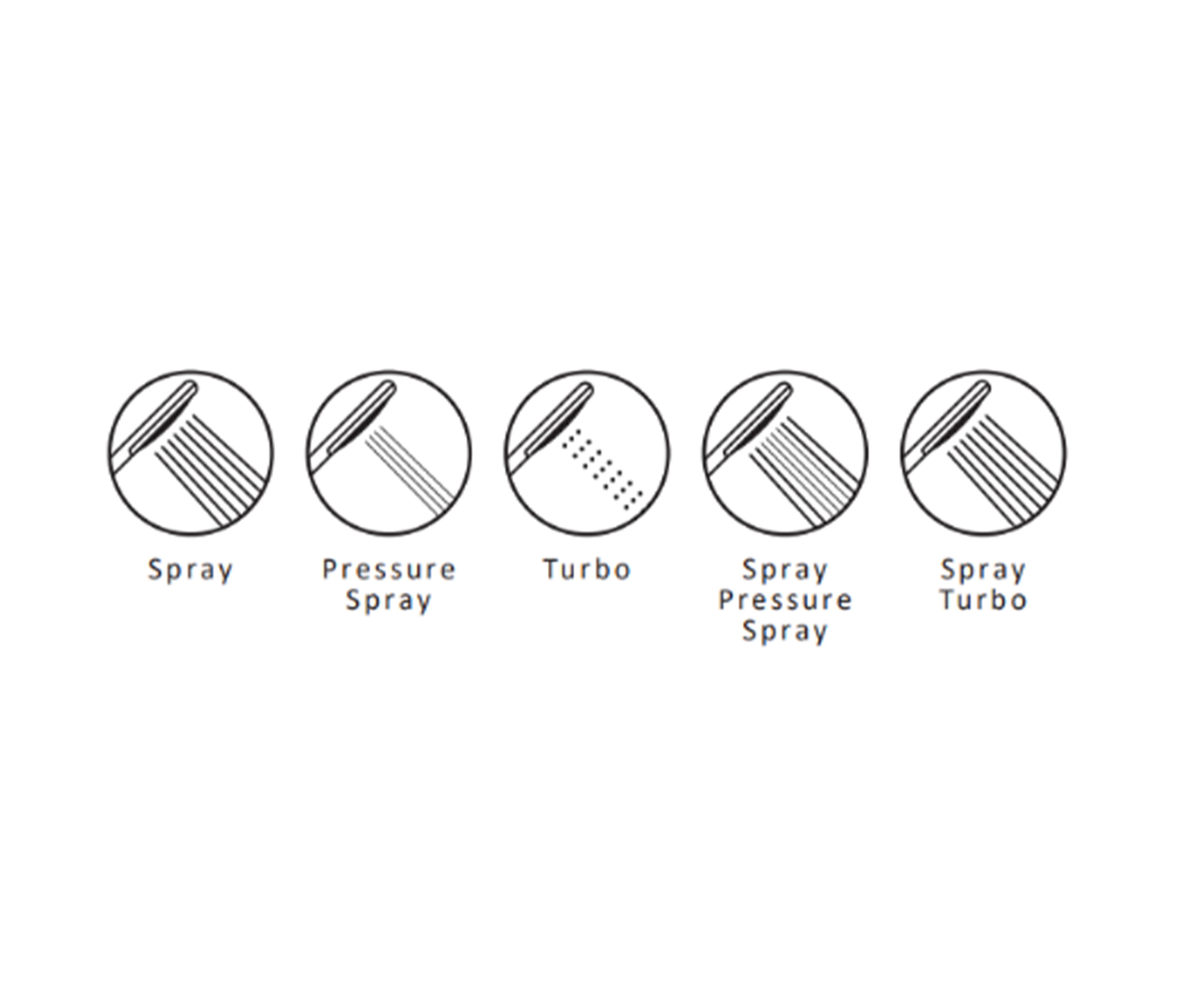 Elegant hånddusj av høy kvalitet med fem ulike strålefunksjoner: Spray, pressure spray, turbo, spray turbo og spray pressure spray. Gummidyser for enklere rengjøring. Høyde 27,5 x Dybde 2,3 Ø13 cm.
