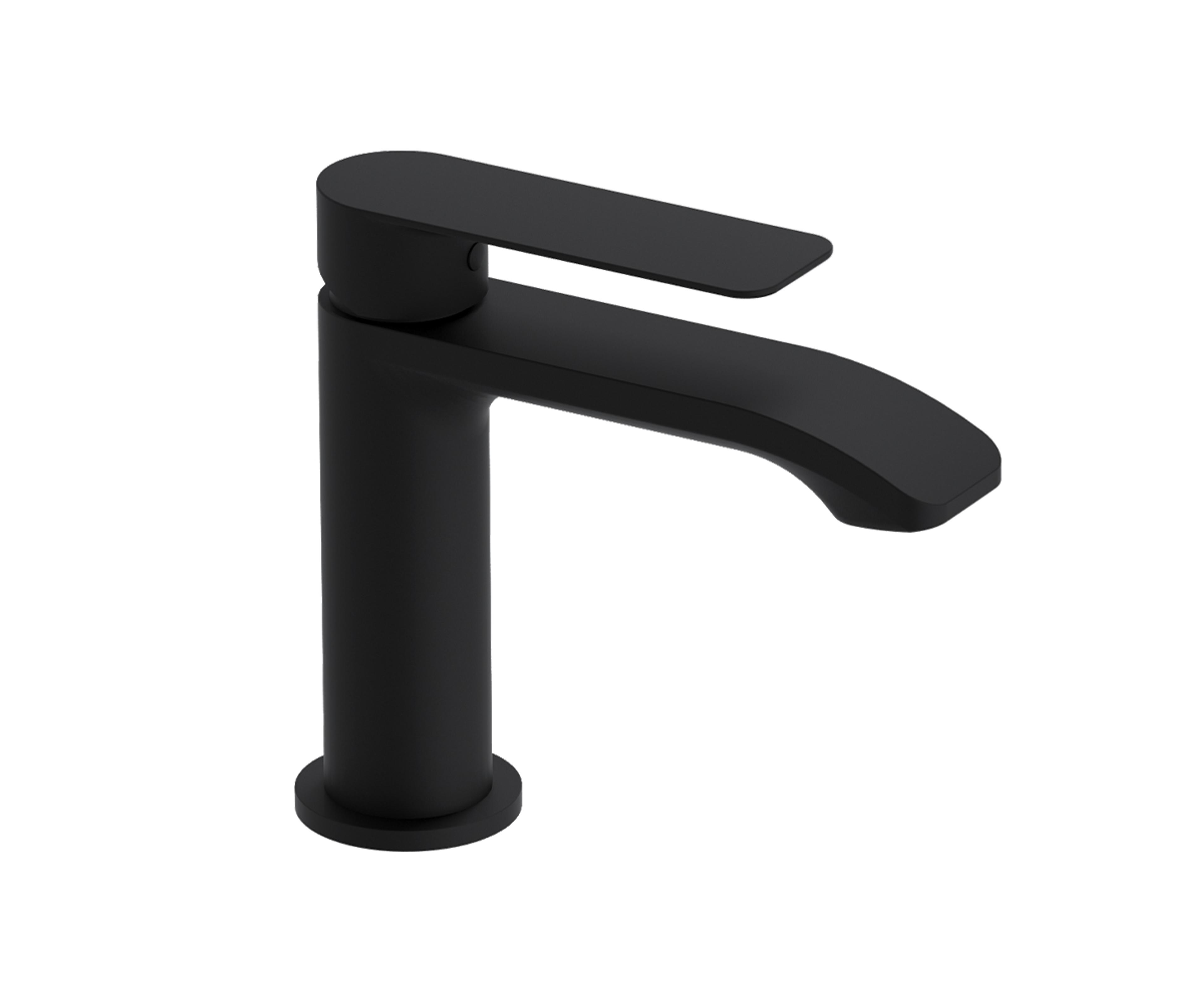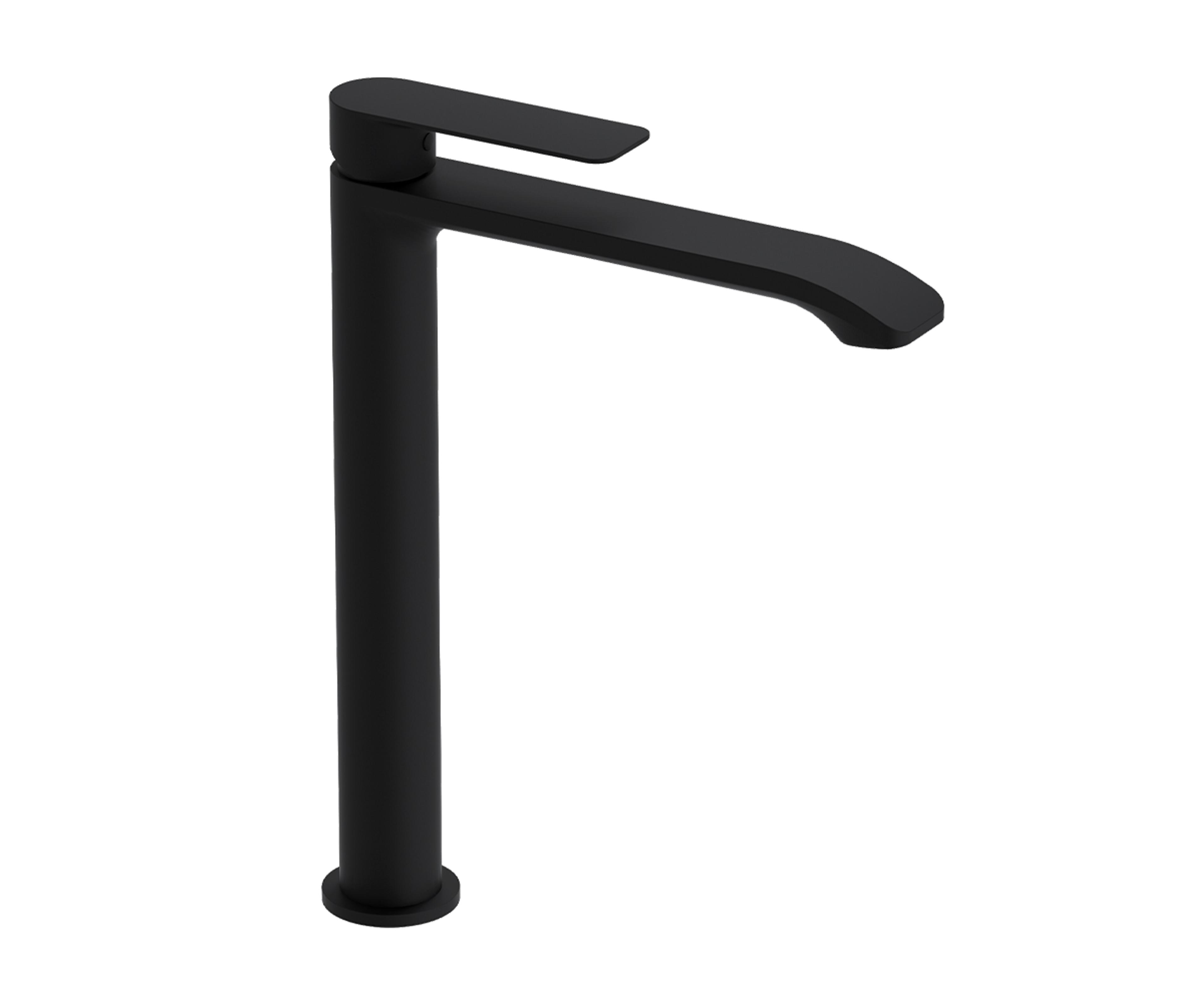 Høy servantkran med ettgreps betjening i moderne design. Kranen er utstyrt med keramisk innmat og fleksible tilkoblingsslanger. Farge: Sort Matt