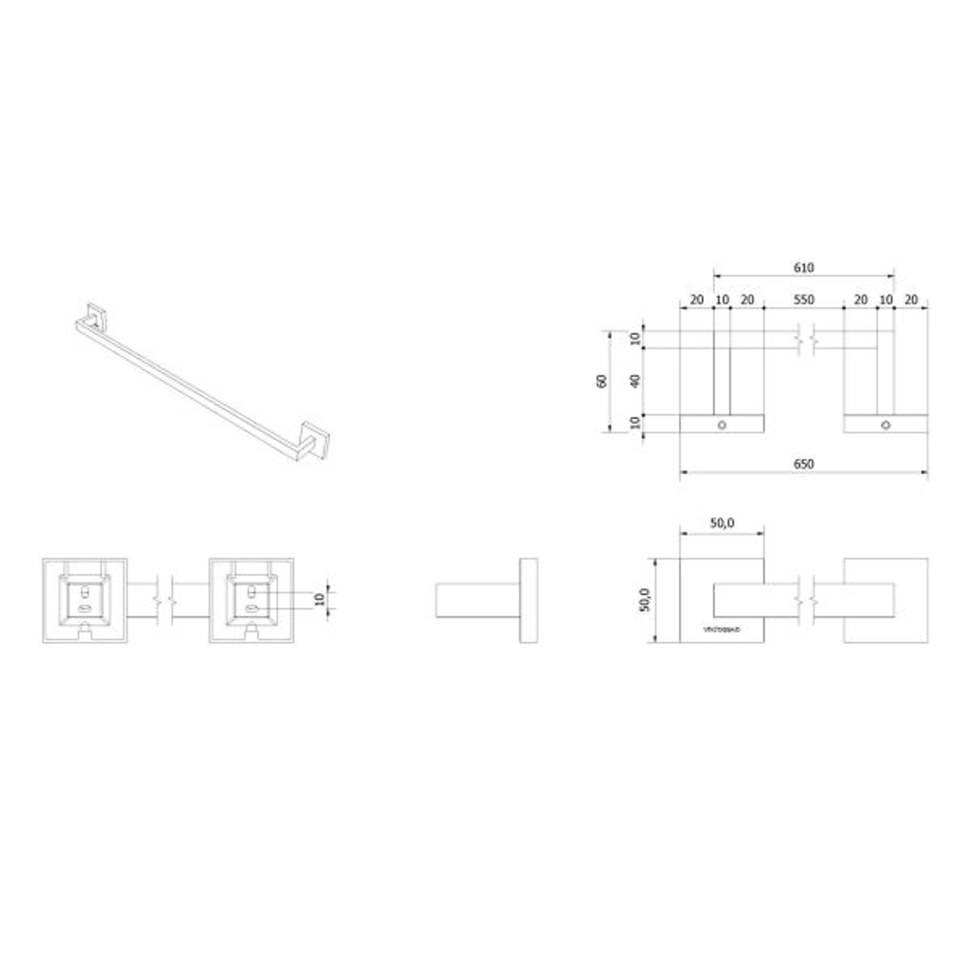 Moderne og elegant håndklestang 65cm bredde i rett utførelse for veggmontering.