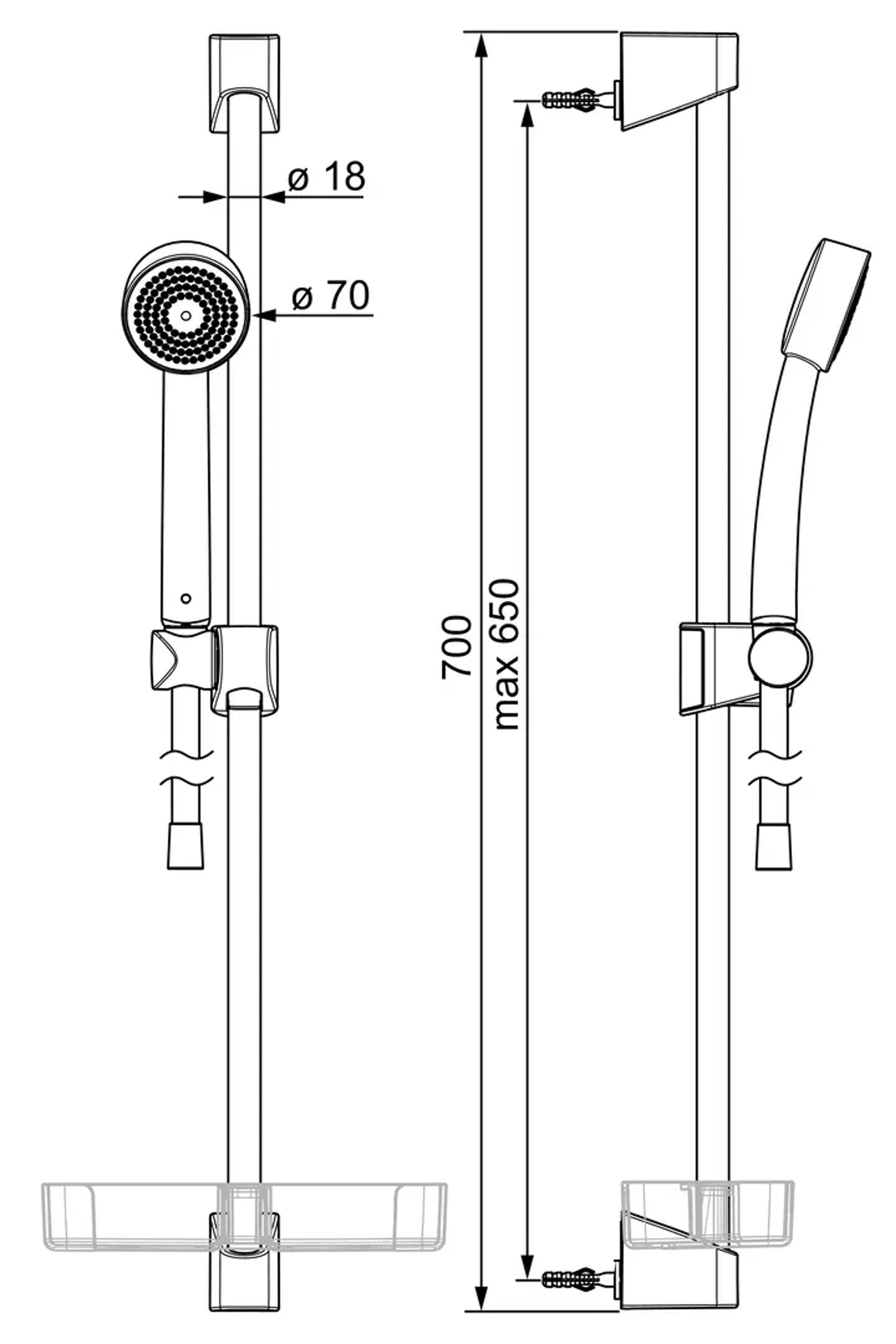 - Med dusjstang og håller