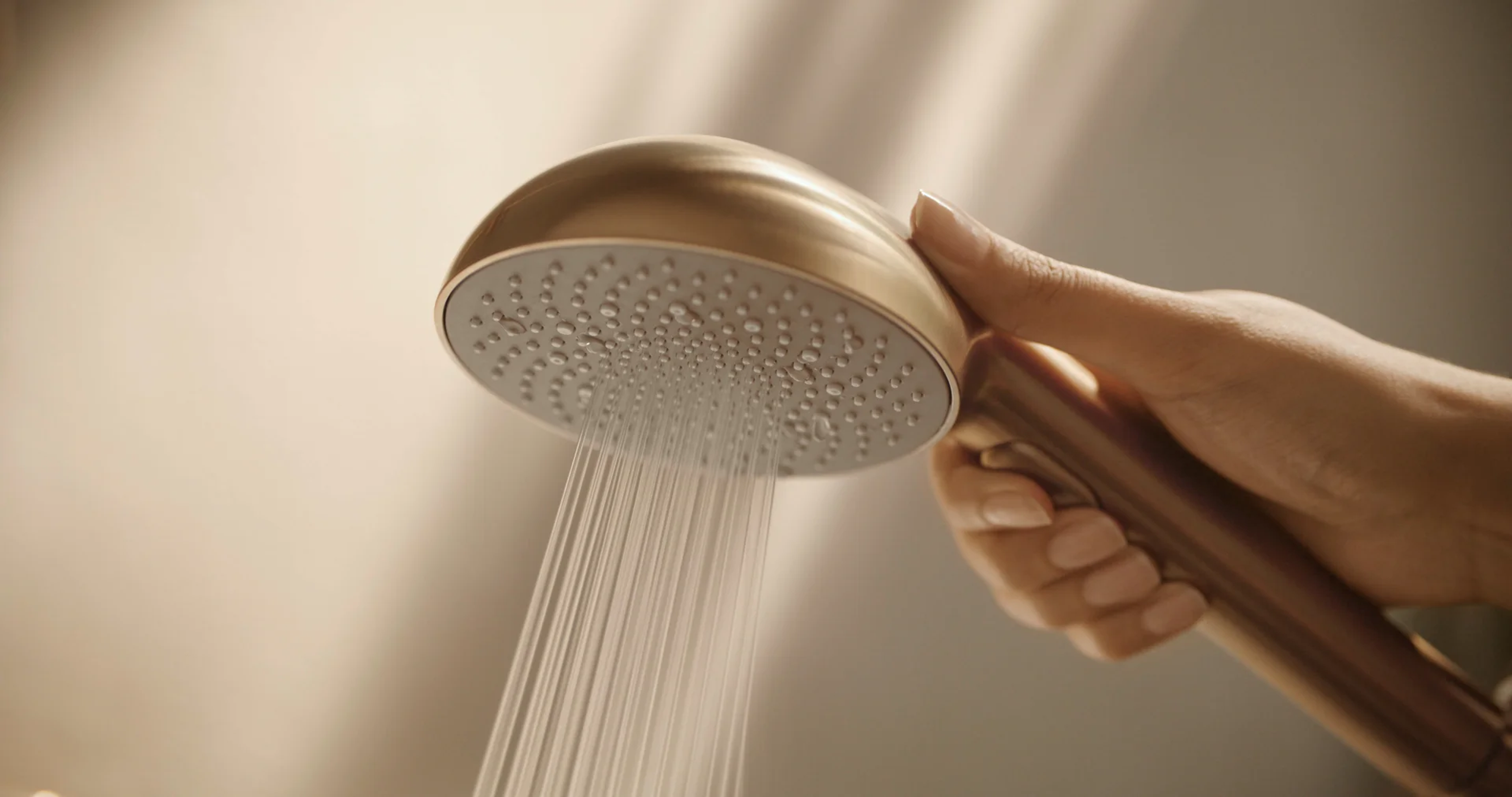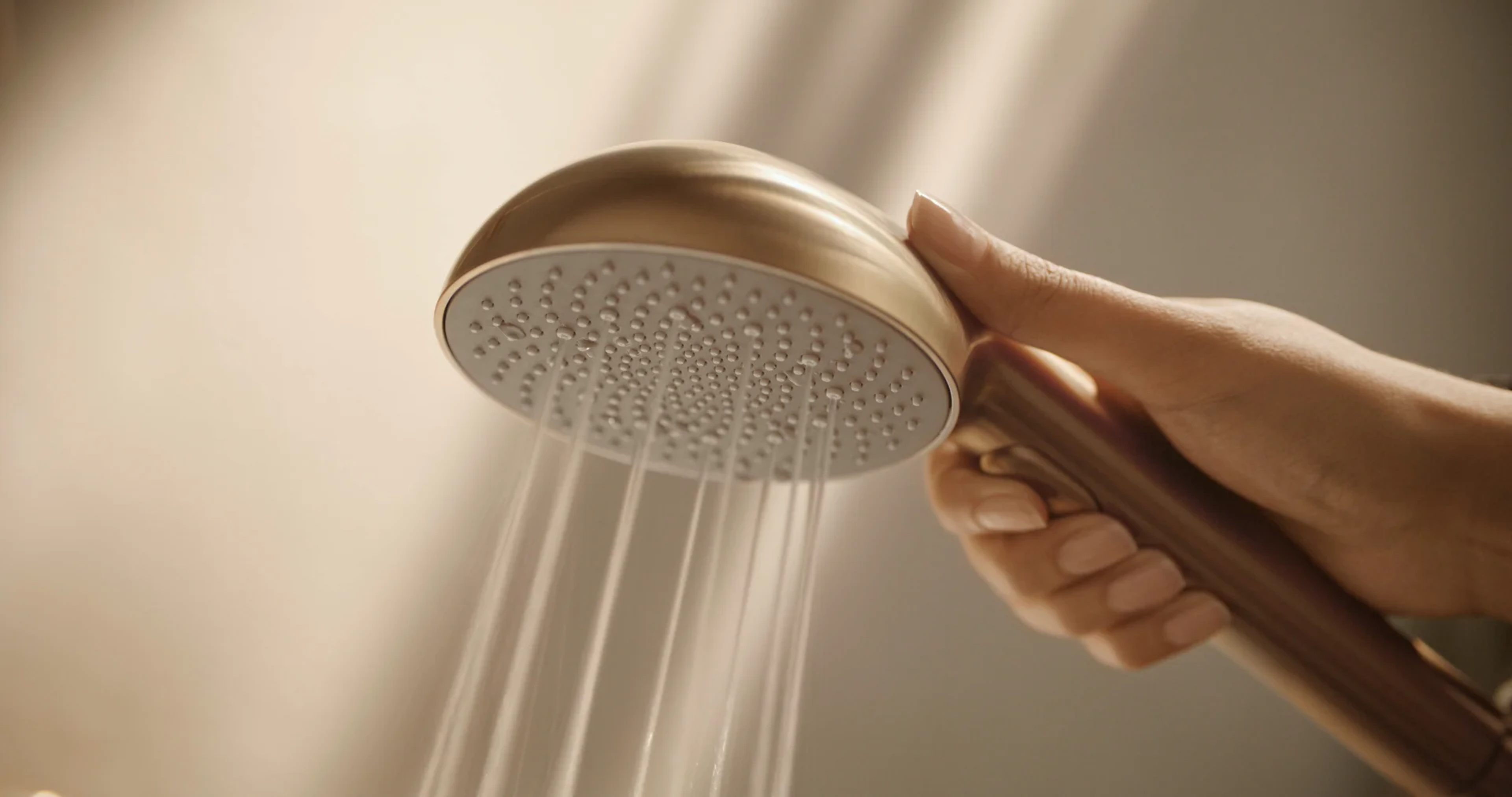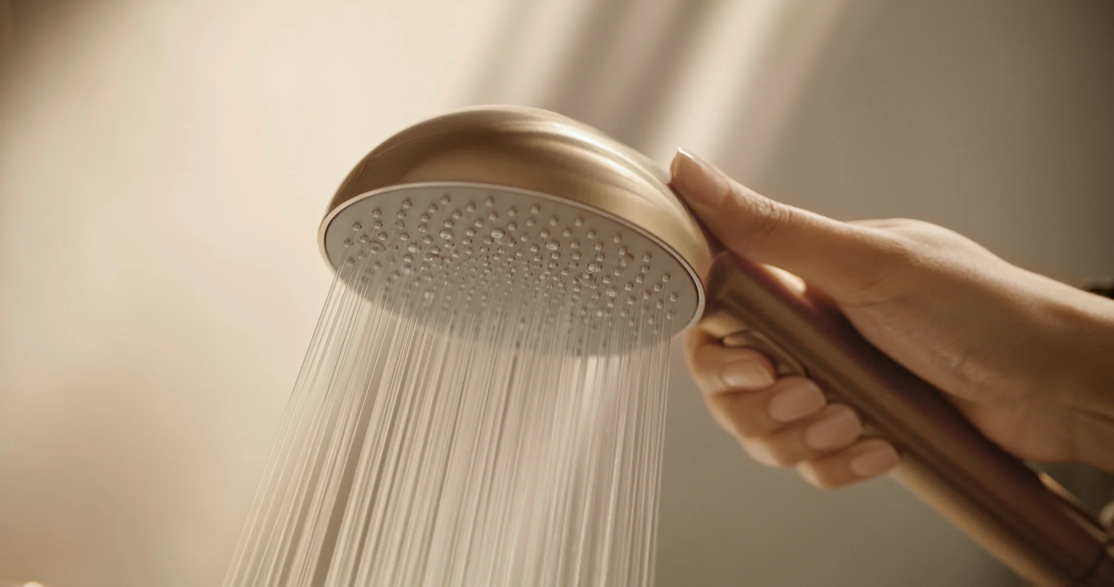 Enkelhet og eleganse i harmoni. En elegant sylindrisk termostat. Juster vanntrykk og temperatur raskt og enkelt, for den perfekte dusjopplevelsen. Aurelia henter designinspirasjon fra elementer i naturen. Dusjkran og dusjsett i børstet bronse 110 mm - tre stråletyper hånddusj trykknakpp for enkelt valg av stråletype dusjholder som er lett å justere