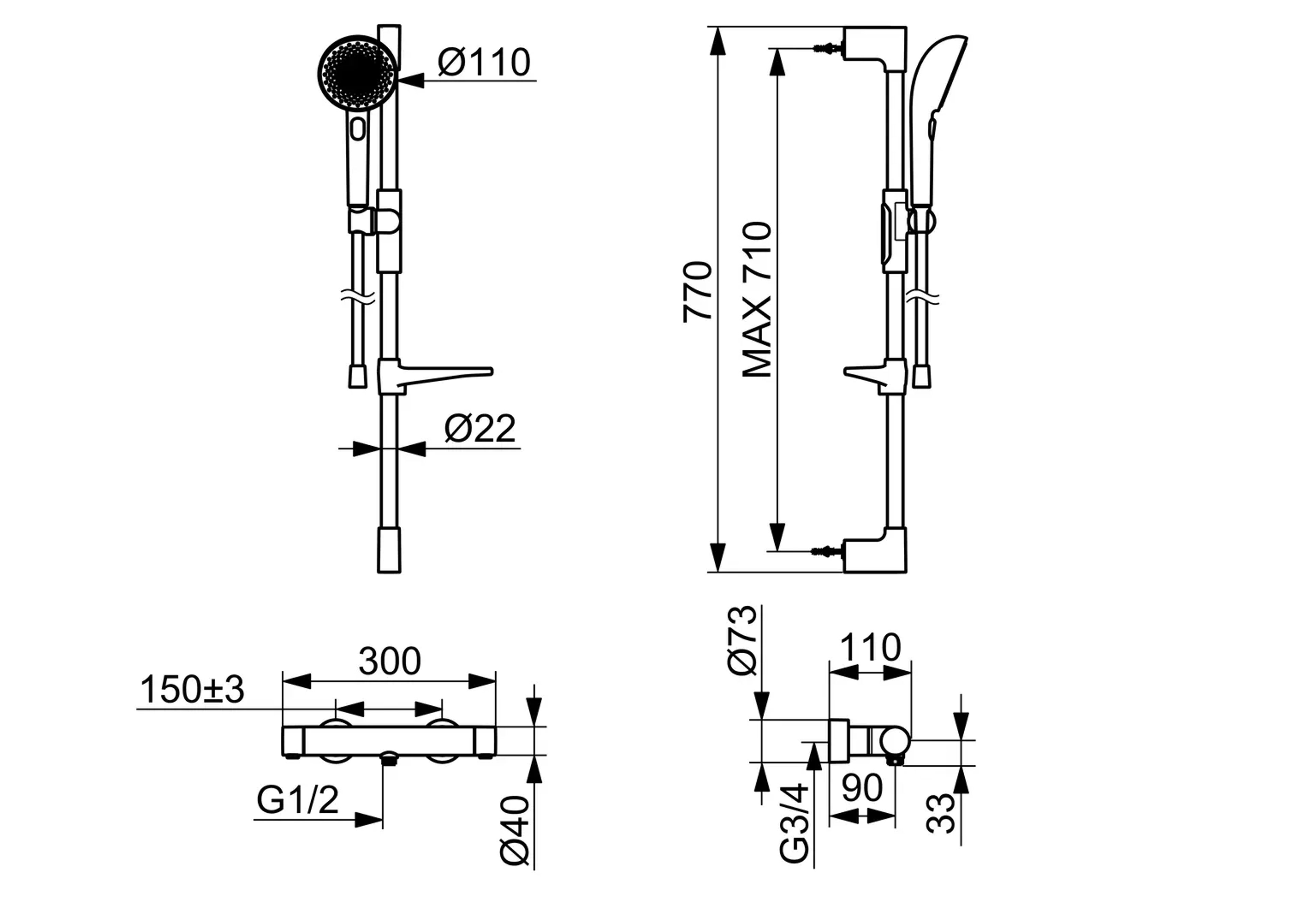 - Med fast hodedusj