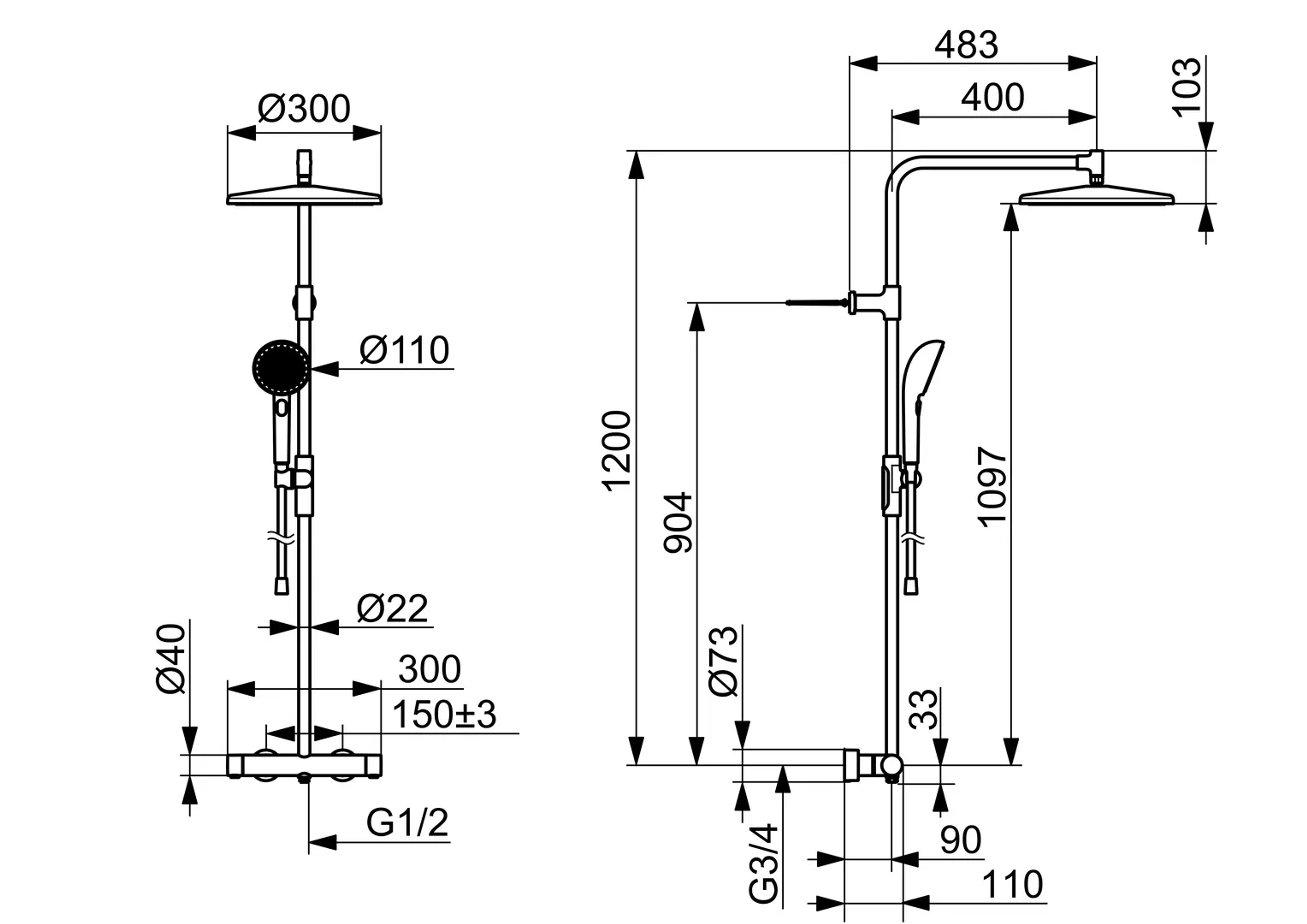 - Med fast hodedusj