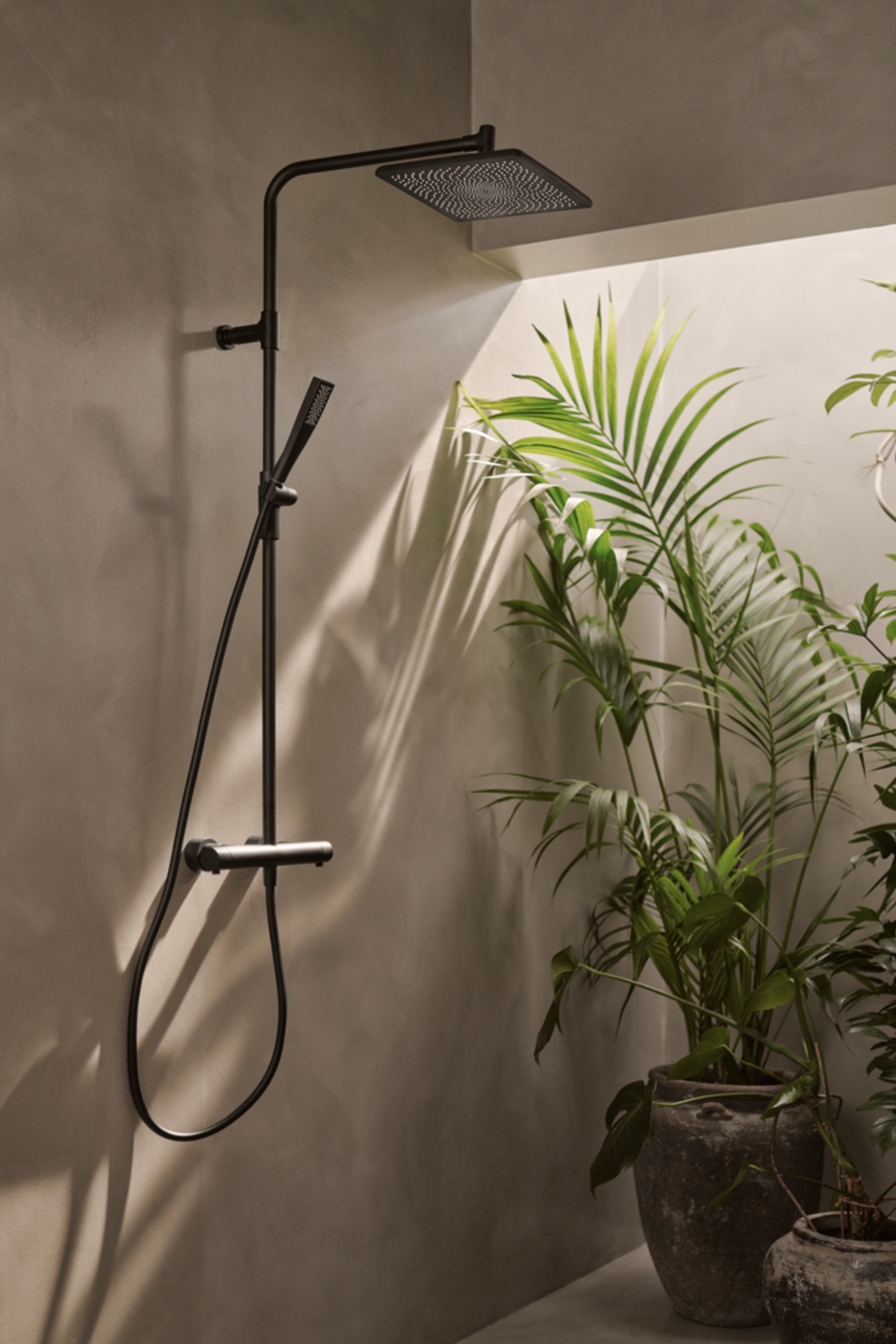 Enkelhet og eleganse i harmoni. Oras Aurelia har design som preges av rene former. Tidløs, slank design. Takdusjsett i svart matt Gjør din daglige rutine enda bedre med Oras Aurelia. en stråletype, 250 x 250 takdusj slim hånddusj med en stråletype 1750 mm slange