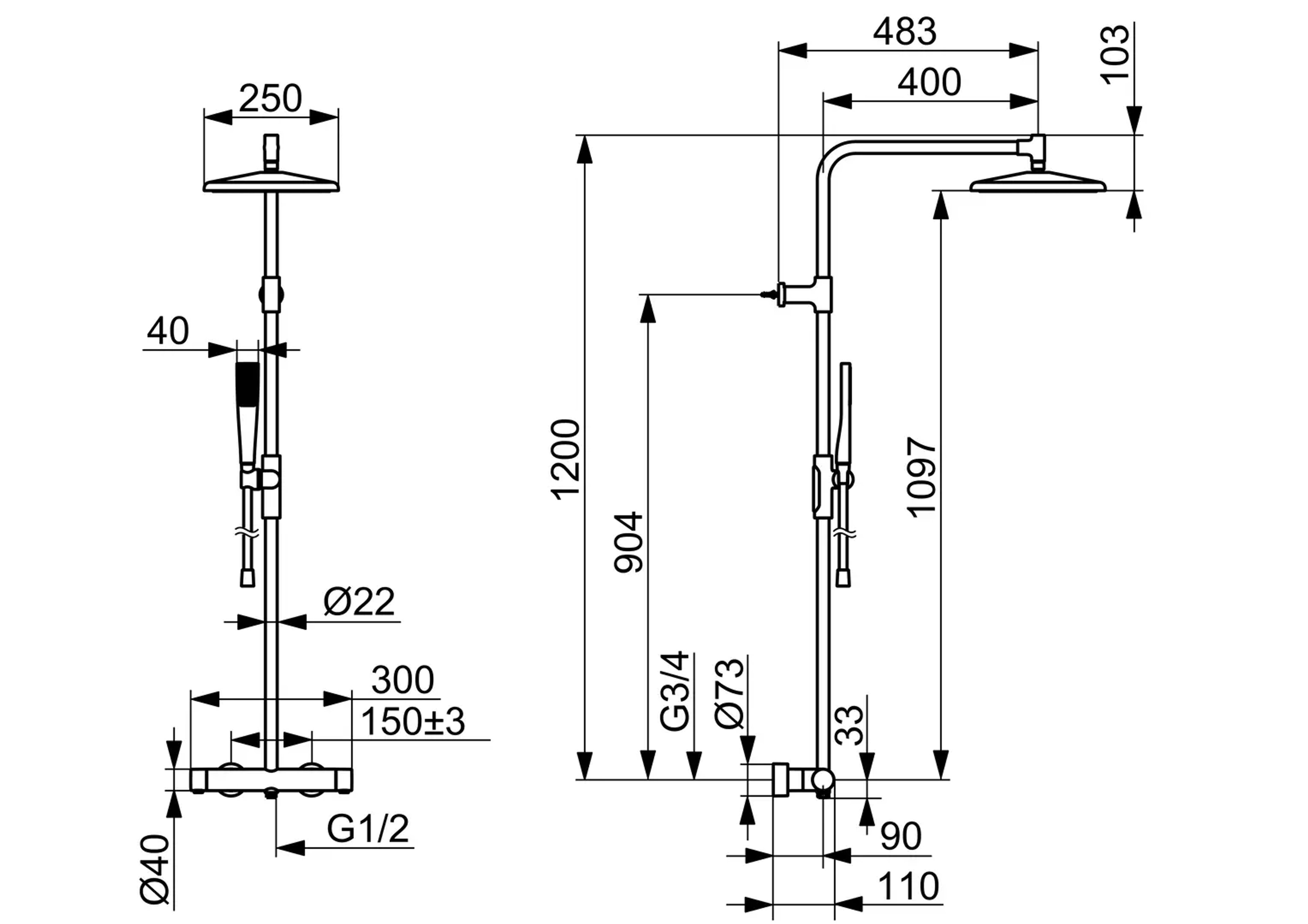 - Med fast hodedusj