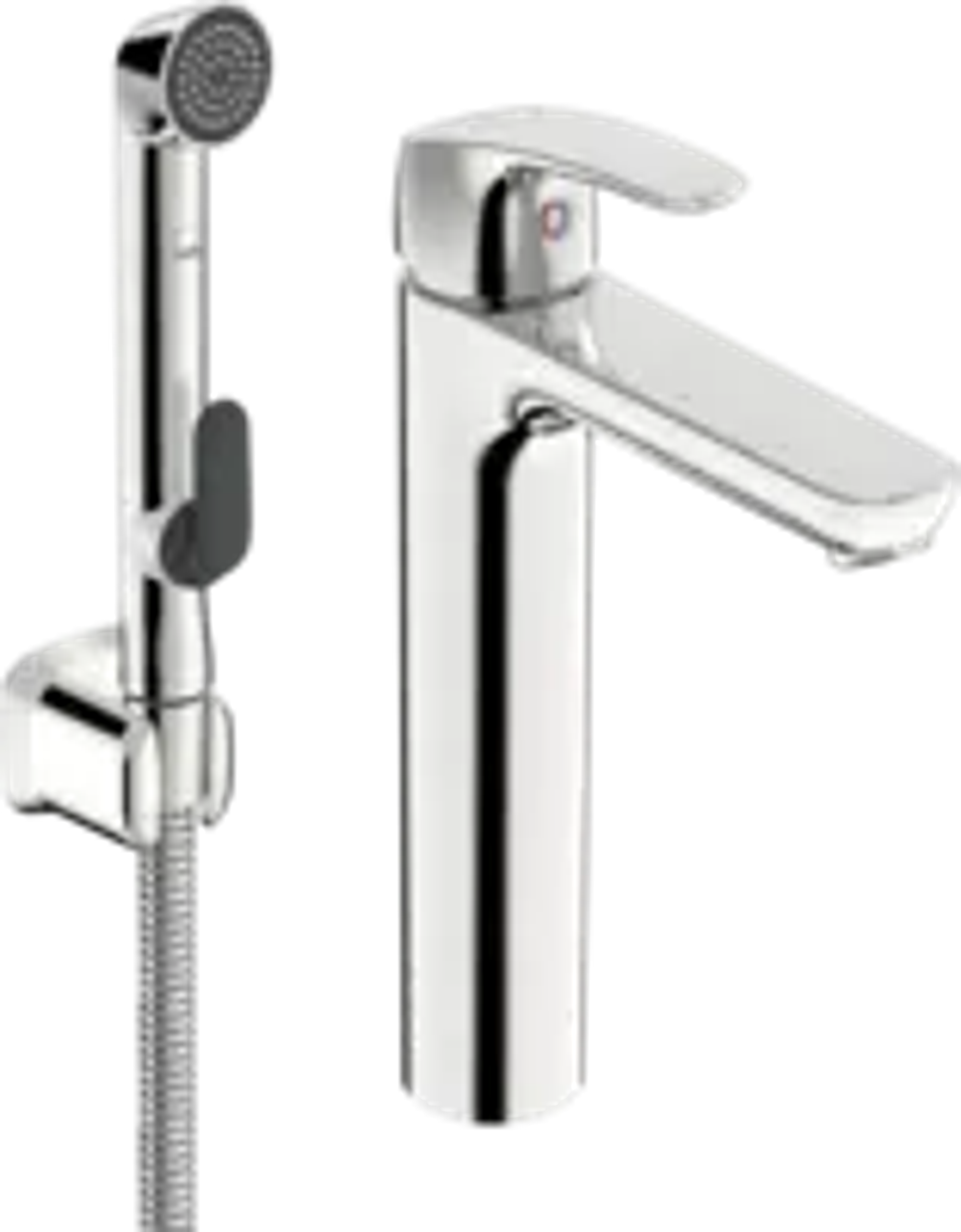 Høy servantkran med Bidetta. En stilren klassiker med rette linjer i god kvalitet. Hendelen er i moderne design som gir en god brukervennlighet. Mulighet for å stille inn kranen slik at den har en fast sperre for maks temperatur på varmtvannet og begrense vannmengden. Kranen har et spesialtutviklet feste som gjør den veldig enkel å montere.