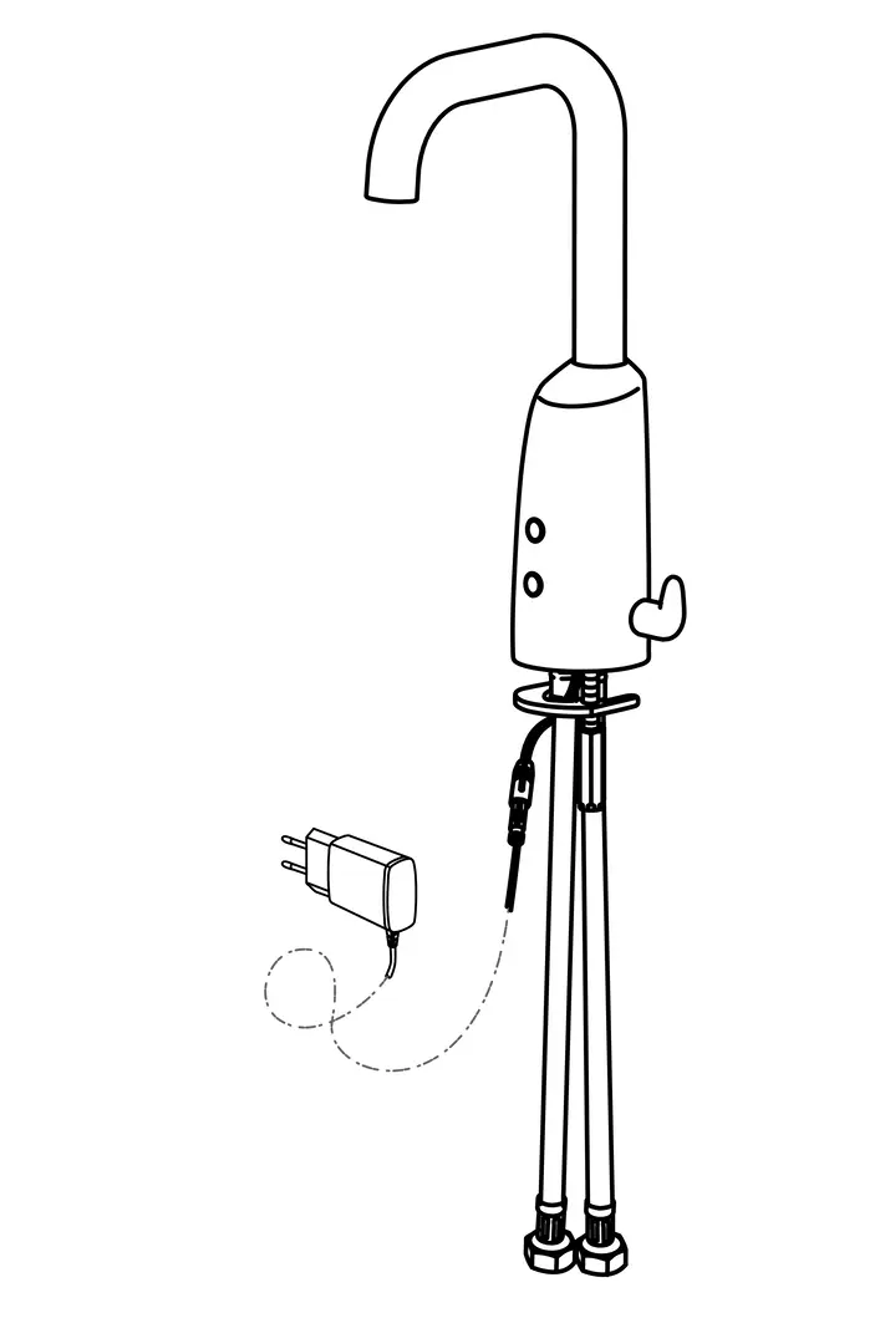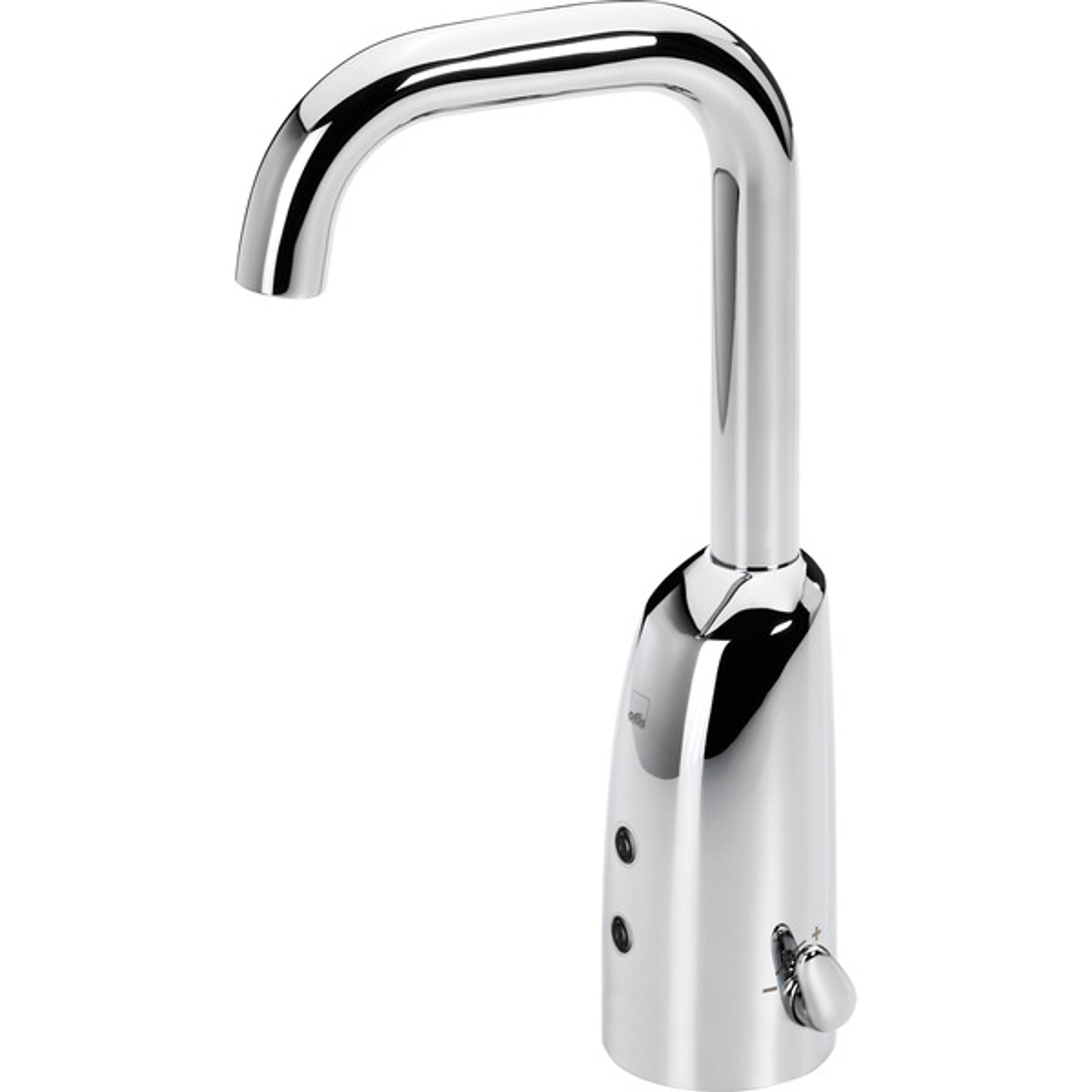 Berøringsfri servantkran med temperaturratt. Lengden på tuten er 120 mm. Kranen er utstyrt med smussfilter og tilbakeslagsventiler. Det kreves ingen justeringer ved installasjon takket være Oras Autofokus sensor. Bluetooth-tilkobling gjør det enkelt å overvåke og justere kranen. Vannbegrenser (6 l/min) gir lavt vannforbruk. Elektrisk tilkobling via adapter 230/9 V (stikkontakt). Alternativt kan man koble inntil 5 kraner på omformer 199275. F = fleksible slanger