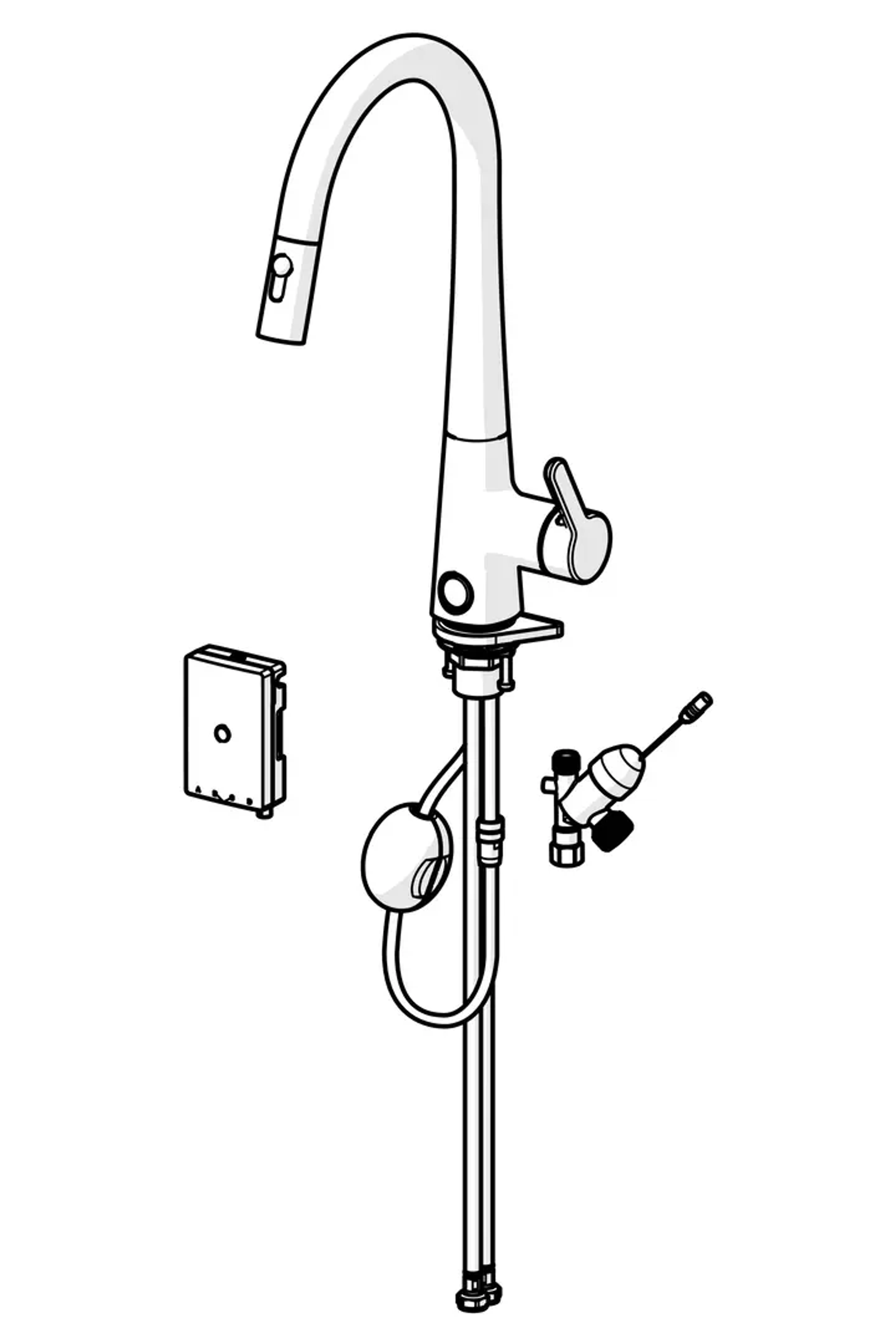 Stilren kjøkkenkran i svart matt for kjøkkenet i dag og for fremtiden. Uttrekkbar tut gjør renhold av oppvaskkum til en enkel sak. Ved bruk har du mulighet til å variere mellom to stråletyper. Elektronisk avstengning til oppvaskmaskin, stenger automatisk etter 4 eller 12 timer. Mulighet for å sette en fast skoldesperre i hendelen, og en maksimal vannmengde