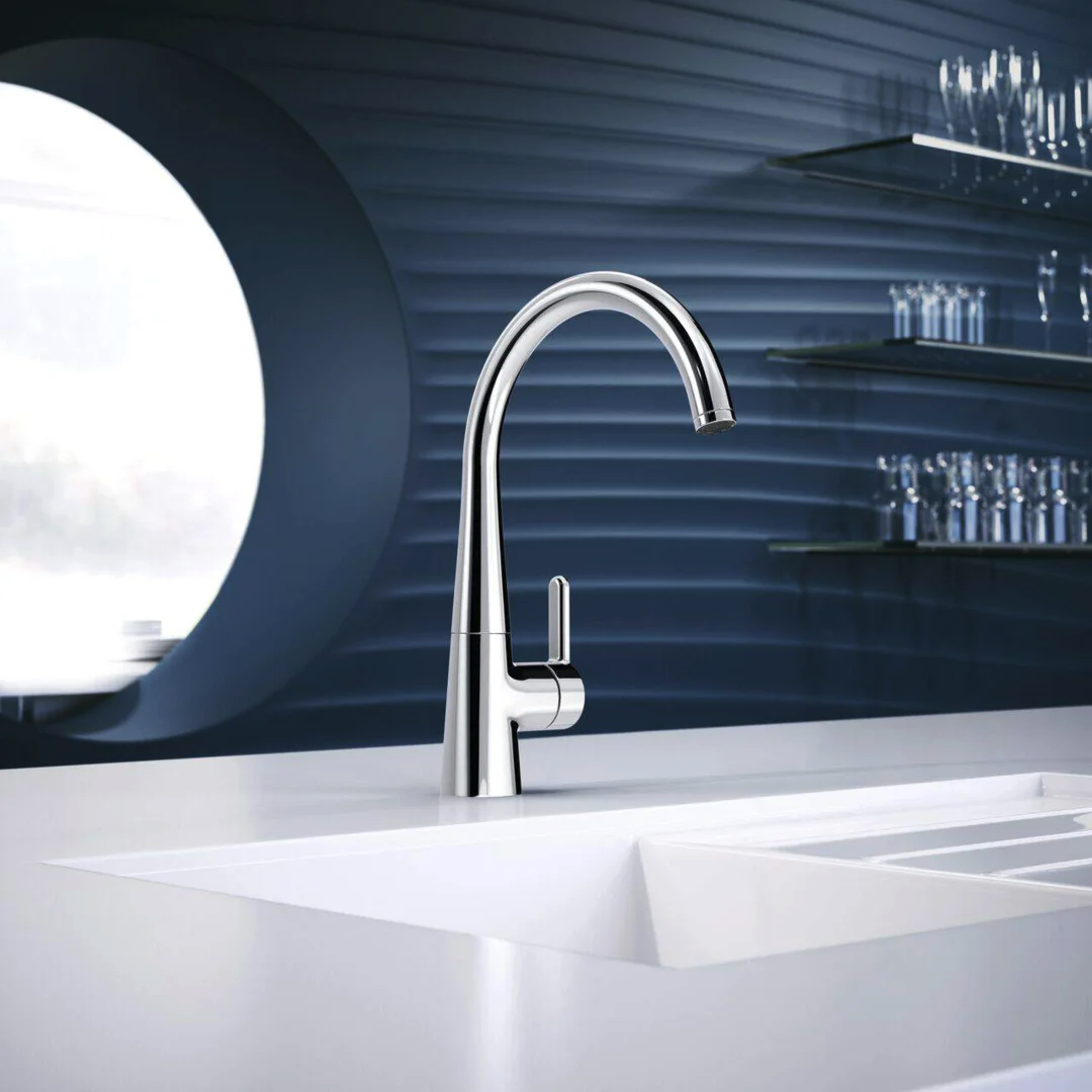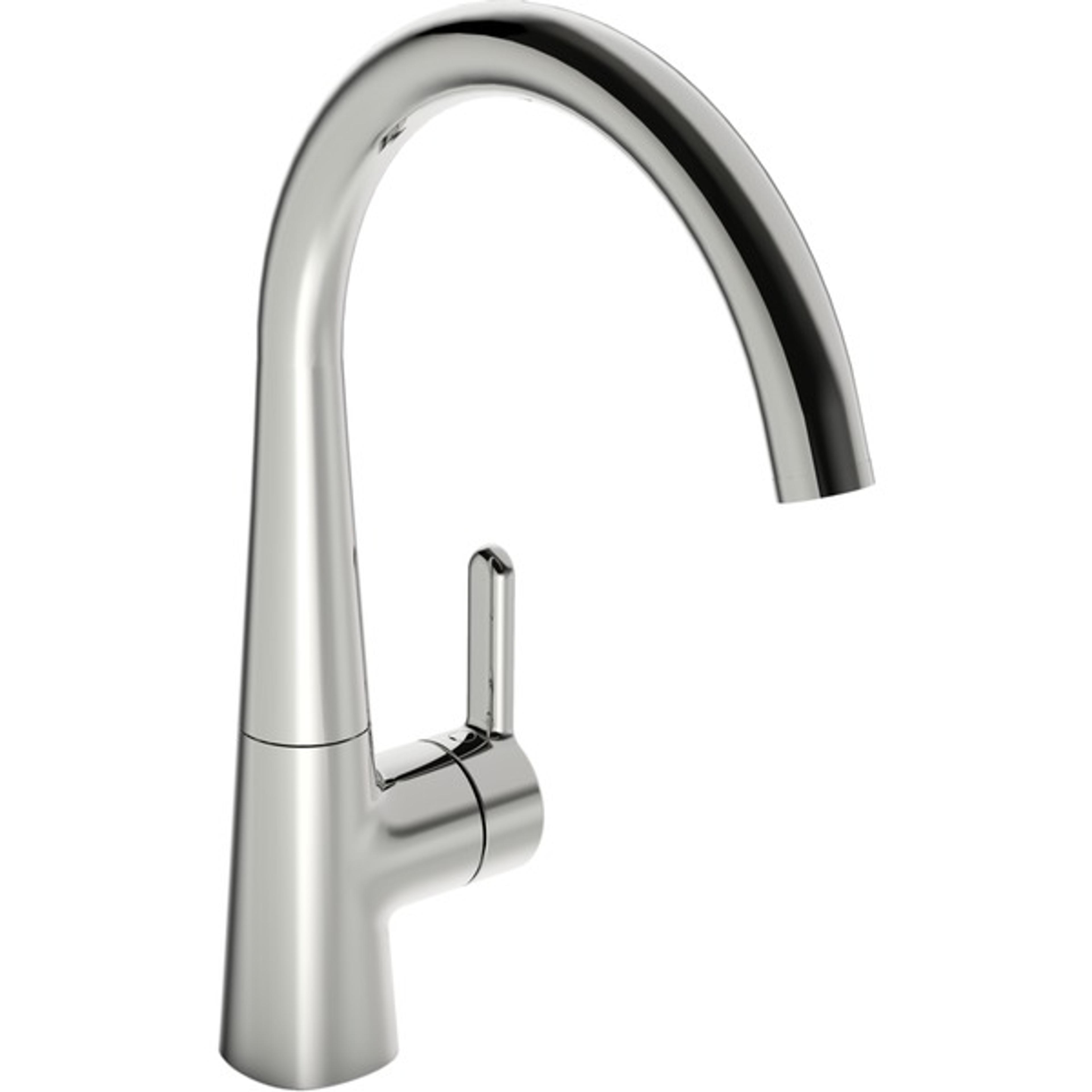 Stilren kjøkkenkran for kjøkkenet i dag og for fremtiden. Mulighet for å sette en fast skoldesperre i hendelen, og en maksimal vannmengde Høy og svingbar tut Kjøkkenkranen gir 12 l/m
