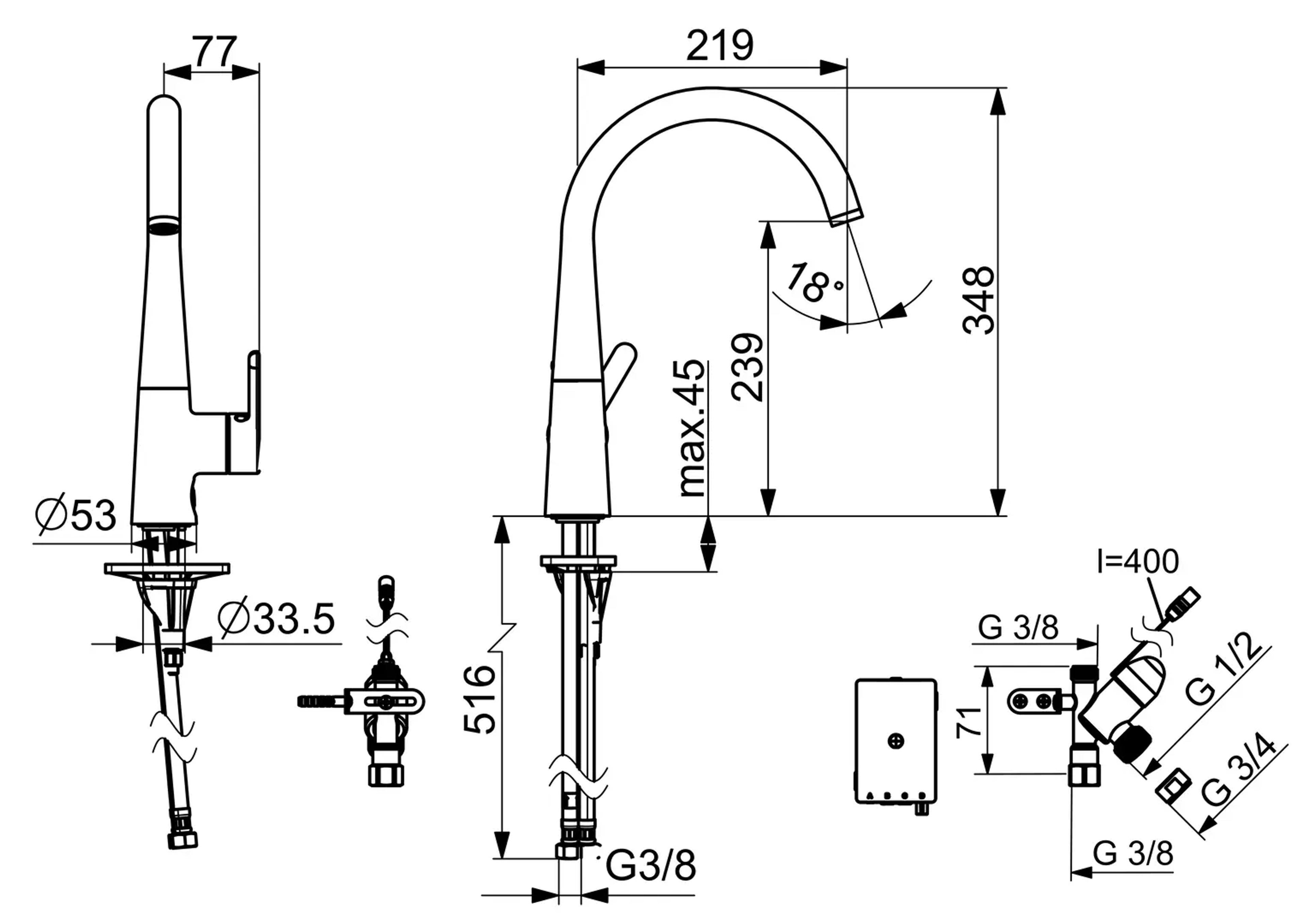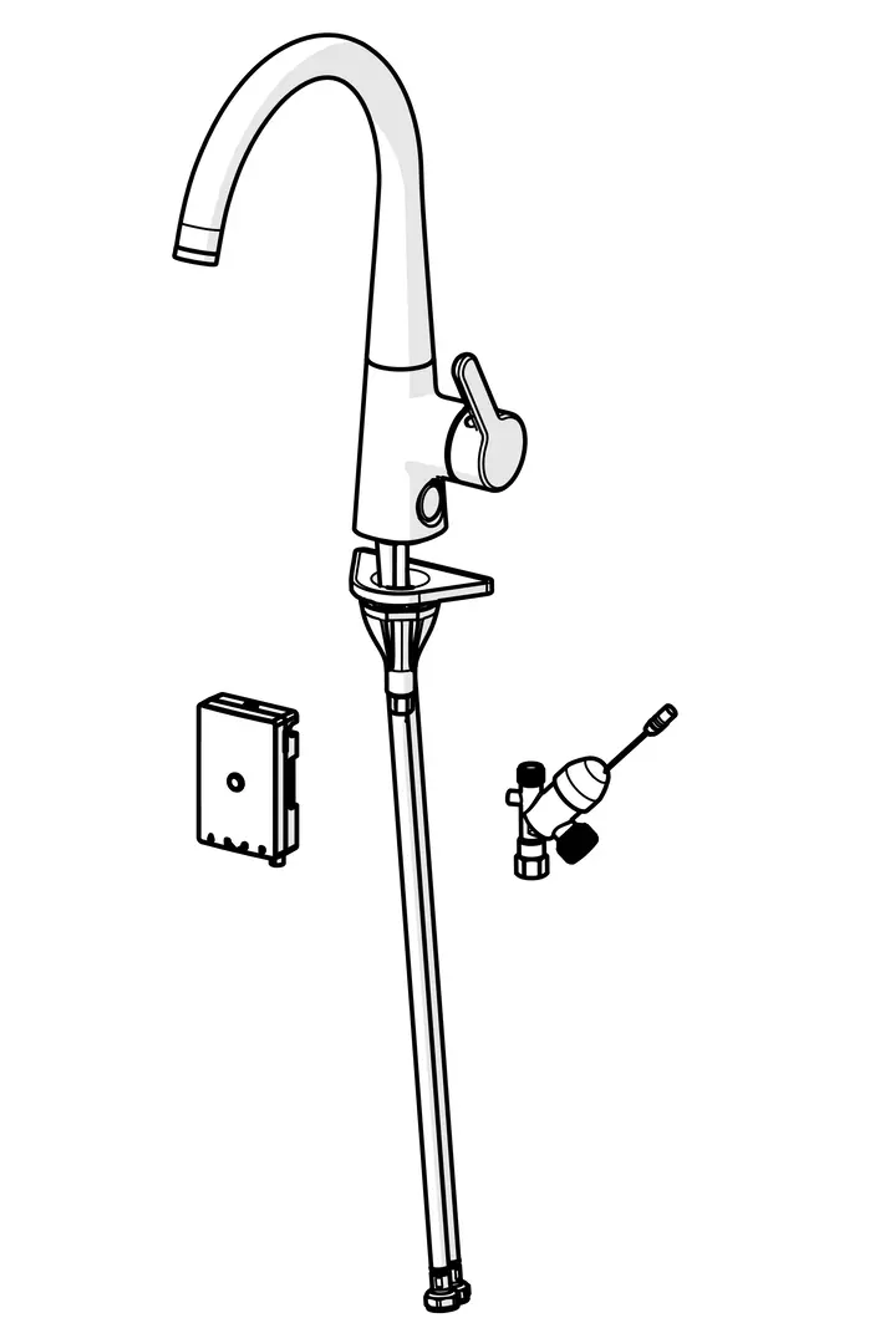 Stilren kjøkkenkran i svart matt for kjøkkenet i dag og for fremtiden. Elektronisk avstengning til oppvaskmaskin, stenger automatisk etter 4 eller 12 timer. Mulighet for å sette en fast skoldesperre i hendelen, og en maksimal vannmengde