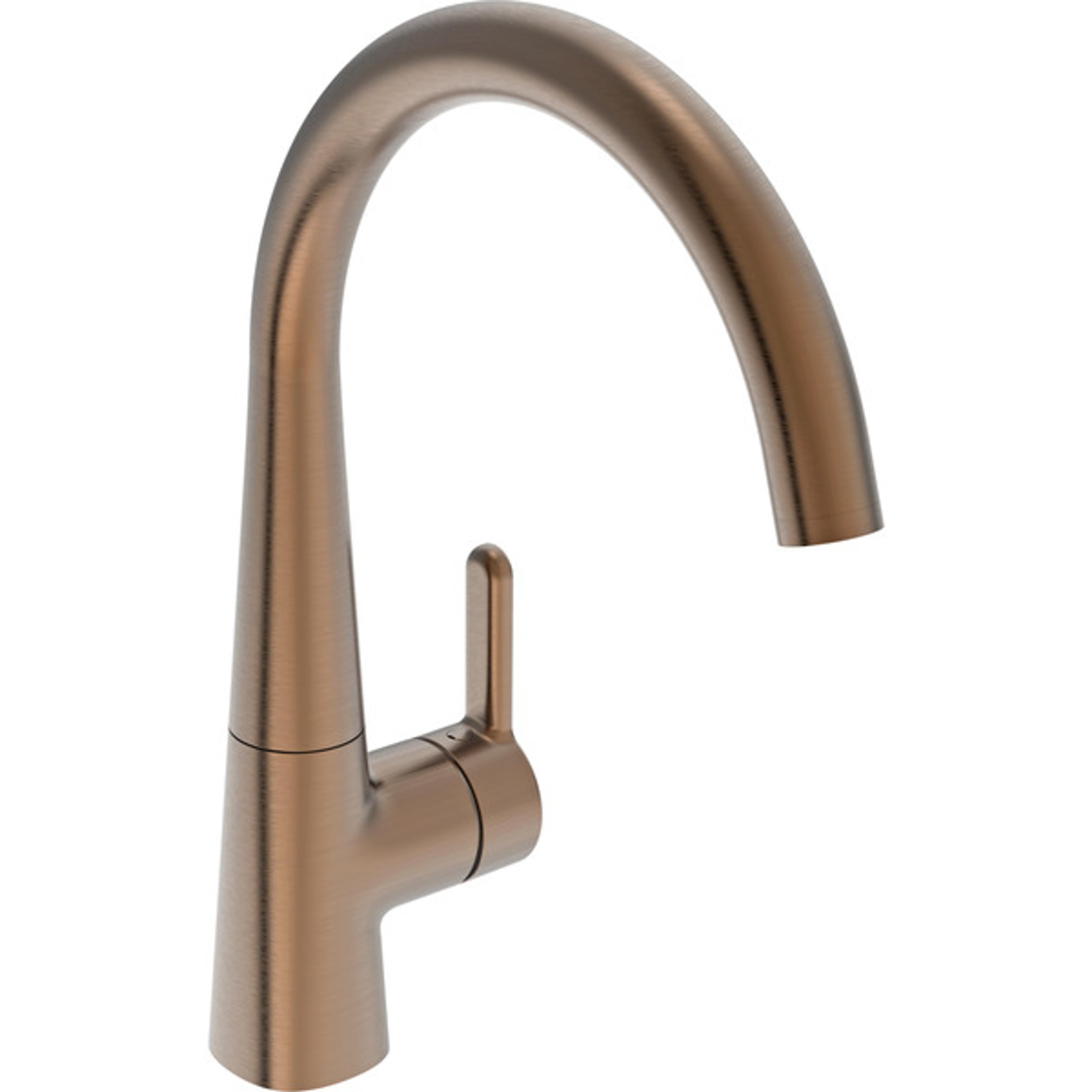 Stilren kjøkkenkran i børstet bronse for kjøkkenet i dag og for fremtiden. Elektronisk avstengning til oppvaskmaskin, stenger automatisk etter 4 eller 12 timer. Mulighet for å sette en fast skoldesperre i hendelen, og en maksimal vannmengde
