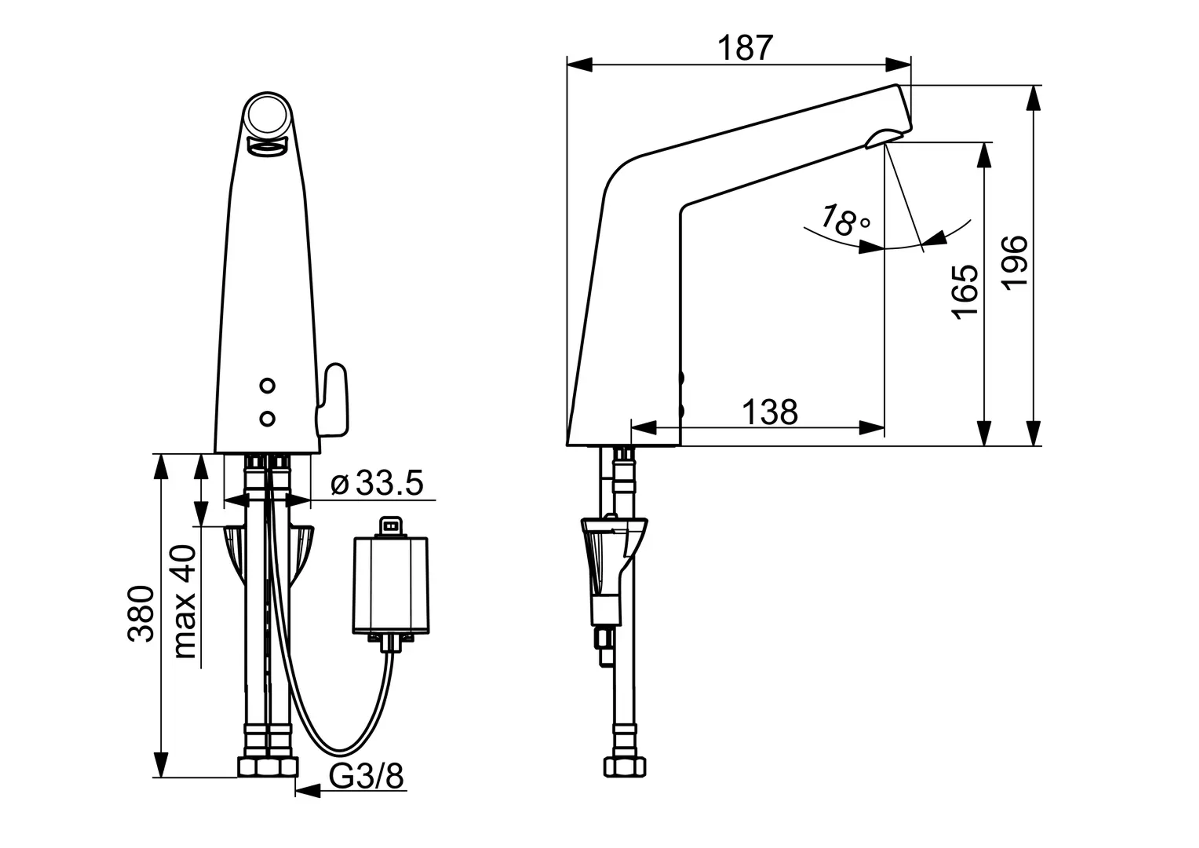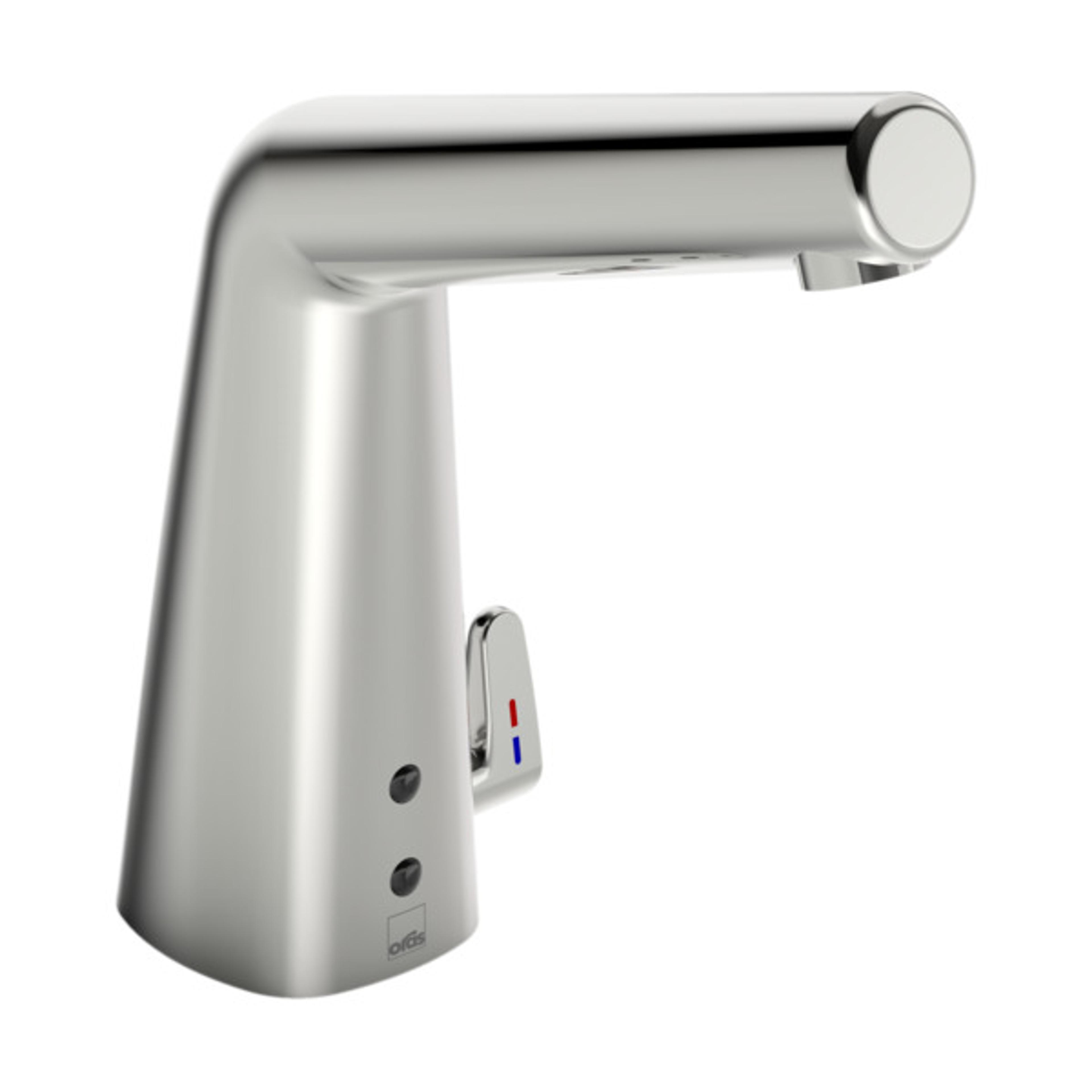 Berøringsfri servantkran med temperaturhendel. Batteridrift 6V. Kranen er utstyrt med smussfilter og tilbakeslagsventiler. Det kreves ingen justeringer ved installasjon takket være Oras Autofokus sensor. Bluetooth-tilkobling gjør det enkelt å overvåke og justere kranen. Vannbegrenser 6 l/min. Enkel installasjon med Oras 3S. F = med fleksible slanger.