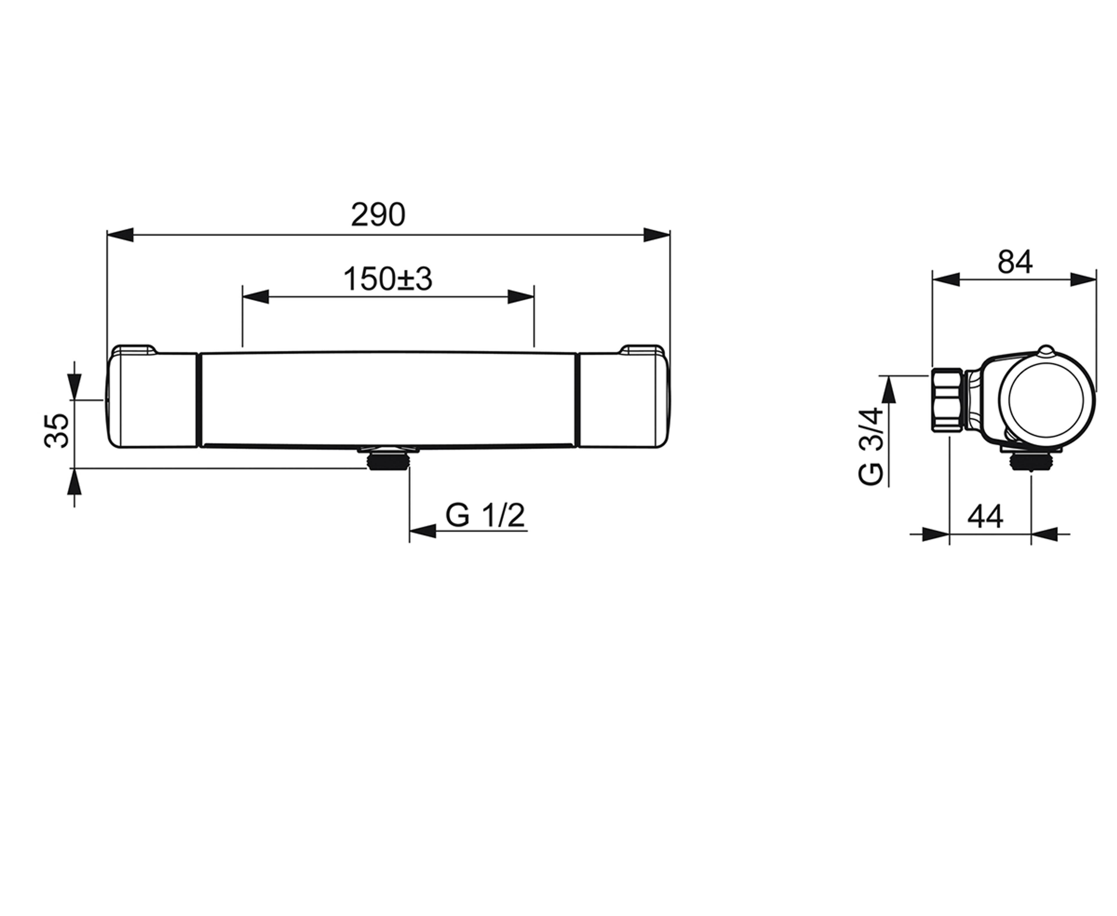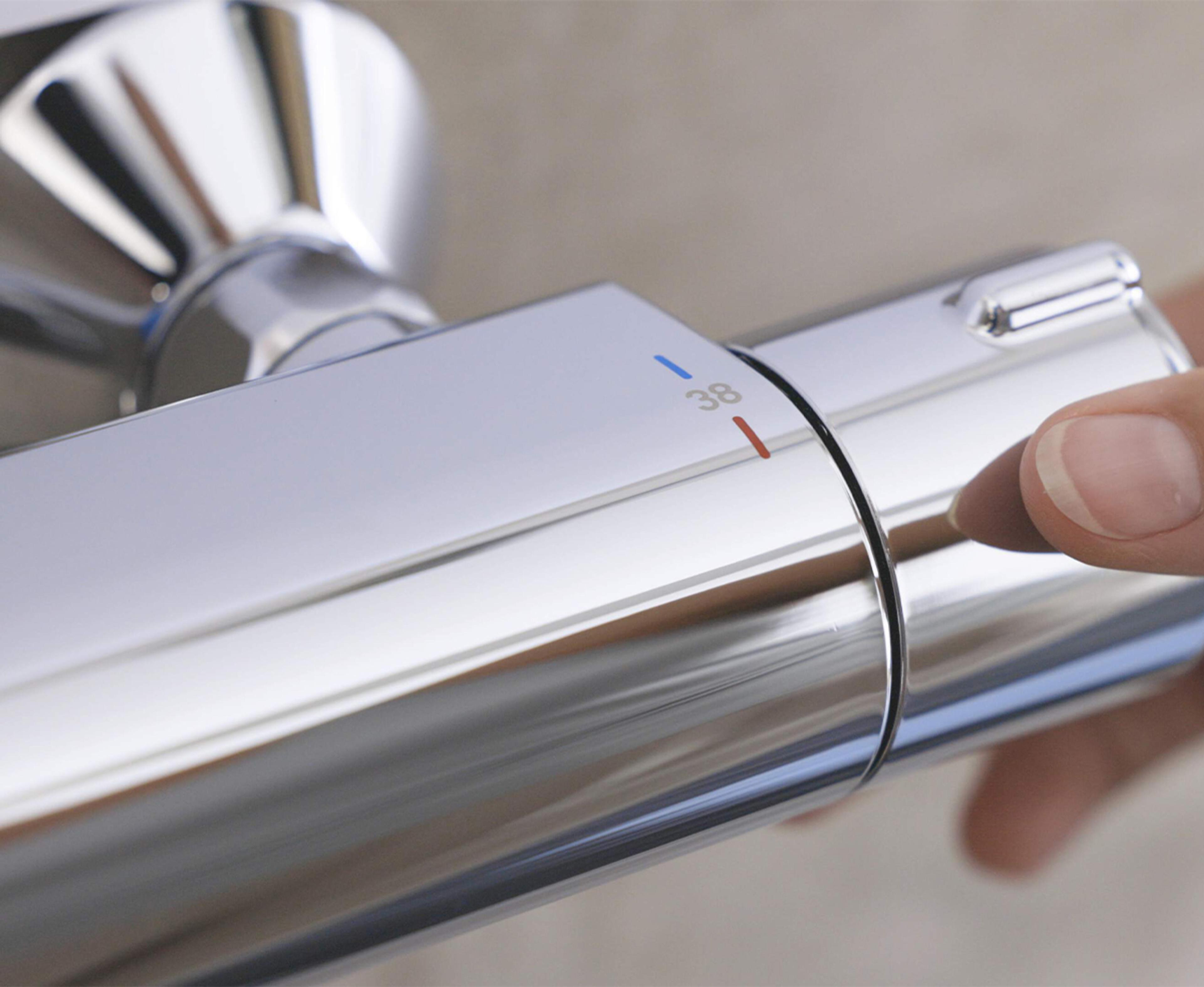 Termostatstyrt dusjblandebatteri med EcoFlow kontroll og sikkerhetssperre mot skålding ved 38°C. Økovennlig vannmengde. Et sikkert valg med moderne bærekraftige installasjoner. Farge: Krom