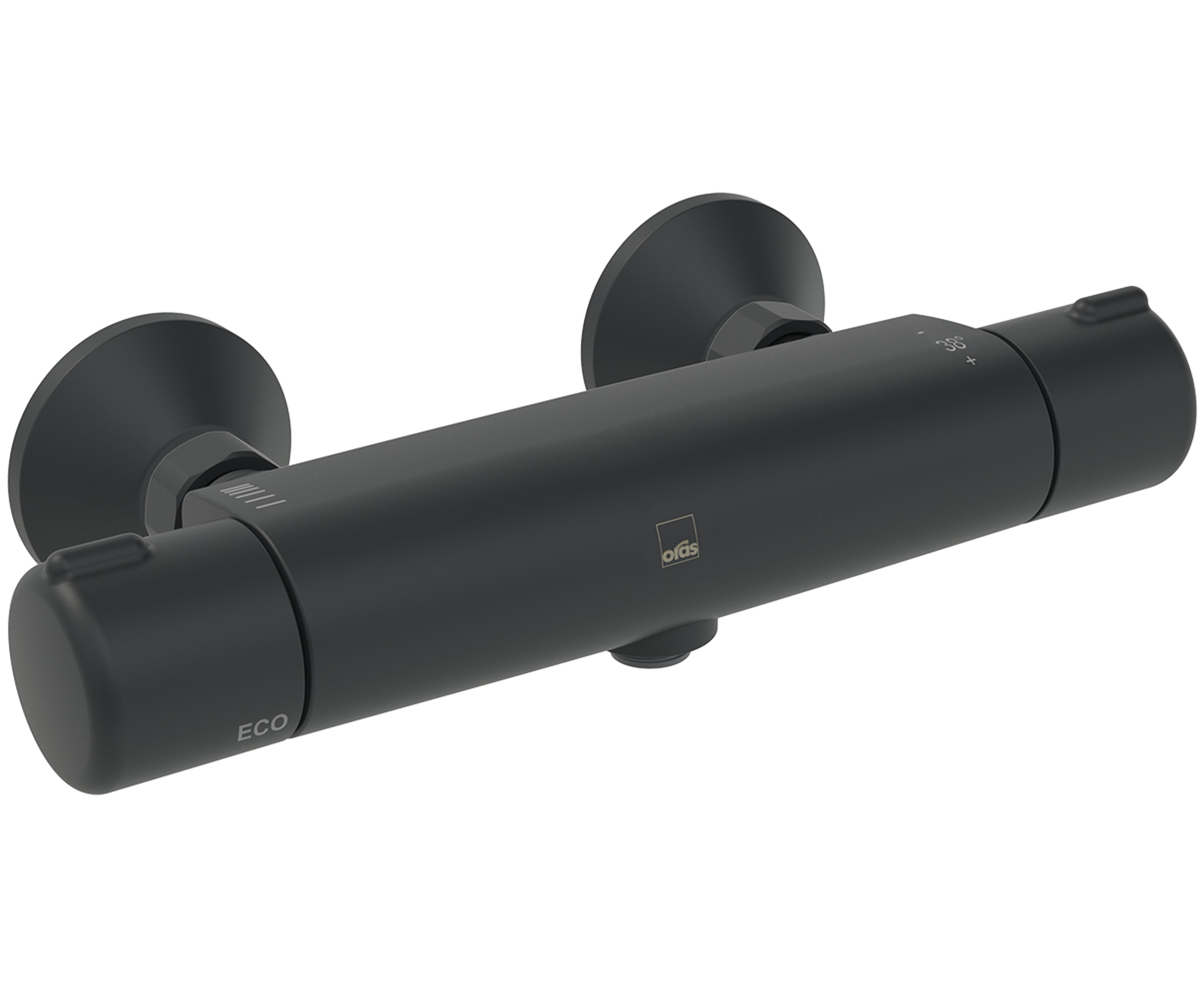 Termostat dusjkran med EcoFlow kontroll, skåldebeskyttelse og tilbakeslagsventiler. Sikrer en jevn temperatur og god dusjopplevelse. Moderne design med slitesterkt nano-keramisk coating som krever minimalt vedlikehold. Farge: Sort Matt