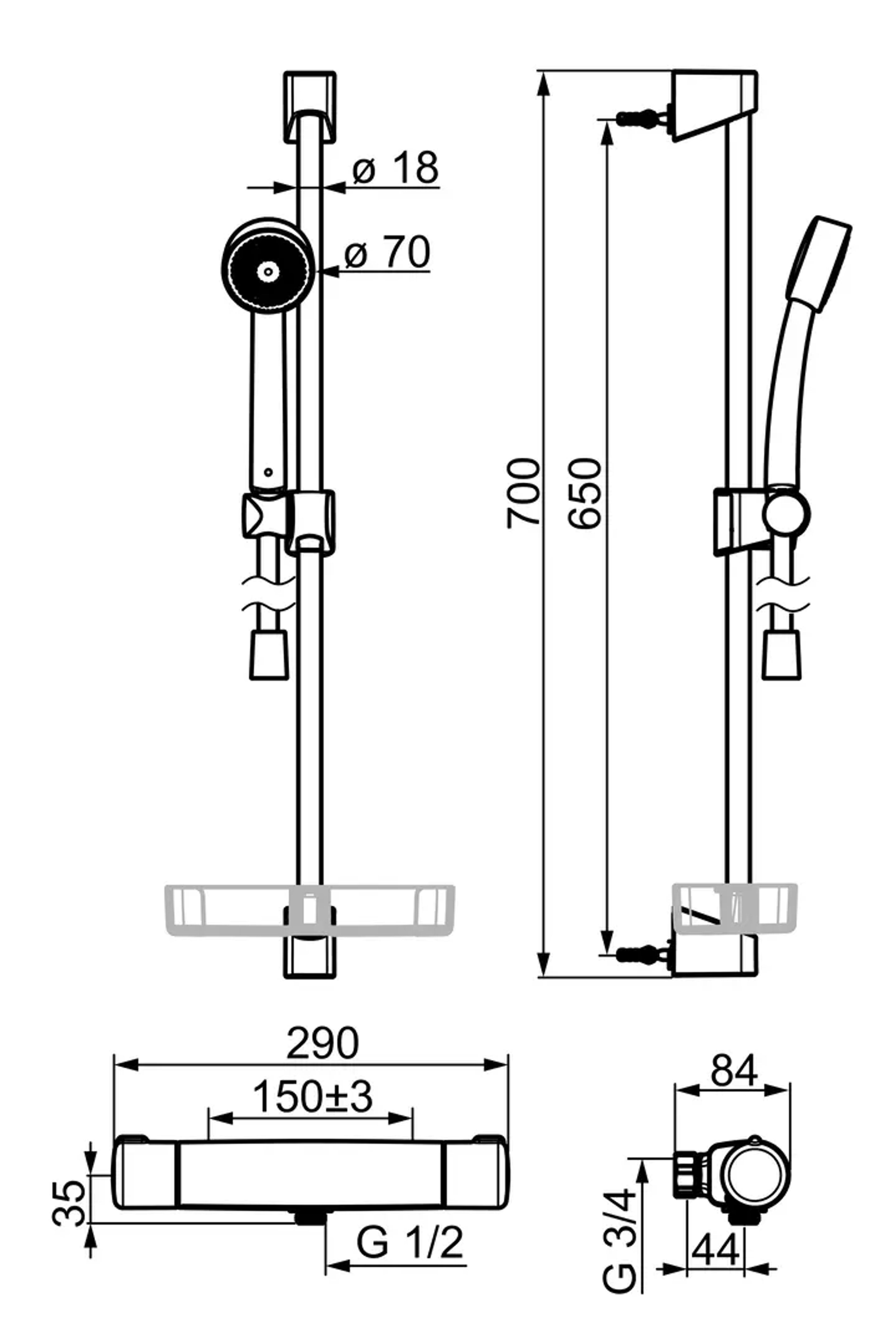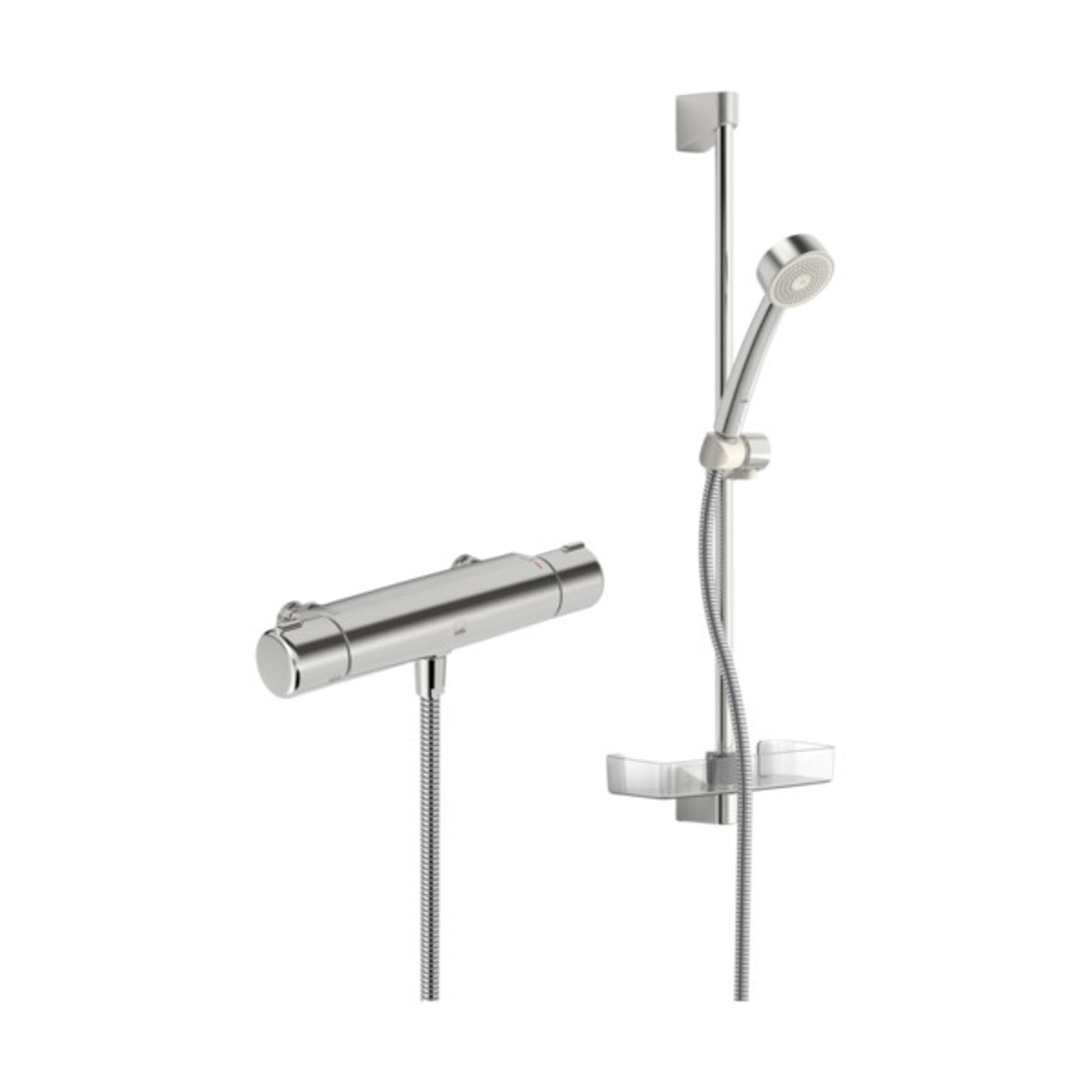Oras Nova termostat, sett med Oras Apollo Eco. Oras Nova termostat kompenserer for temperatur- og trykkfall. Oras Apollo Eco er et komplett dusjsett, med stang, glider og dusjkopp. Oras Apollo har en ergonomisk utformet hånddusj, som gir en komfortabel dusj, samtidig som den sparer vann og energi. Vannmengde opptil 7,2 l/min Engergiklasse A, 4MS godkjent messinglegering. Oppfyller EU-Taksonomiens vannmengdekrav.