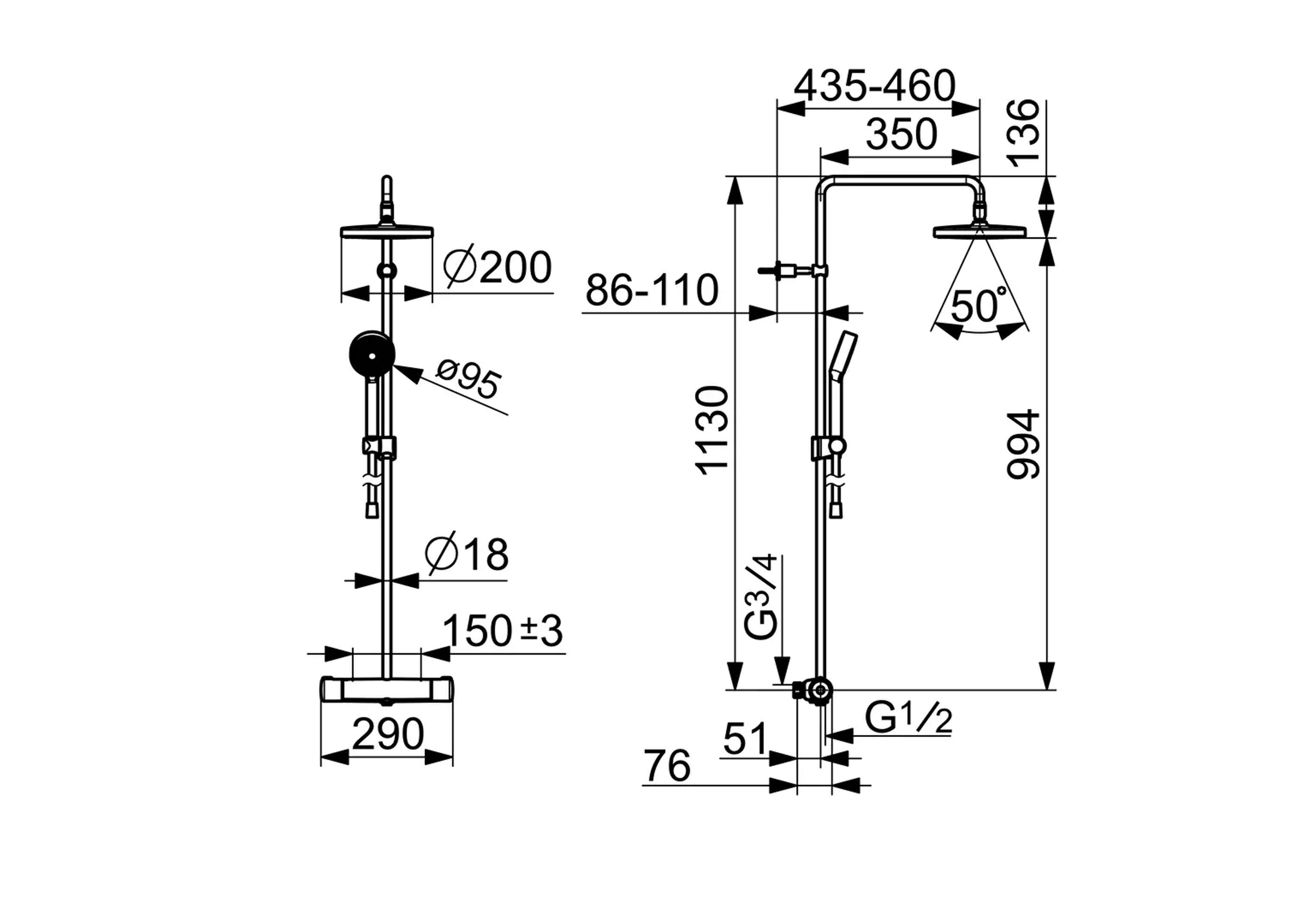 - Med fast hodedusj