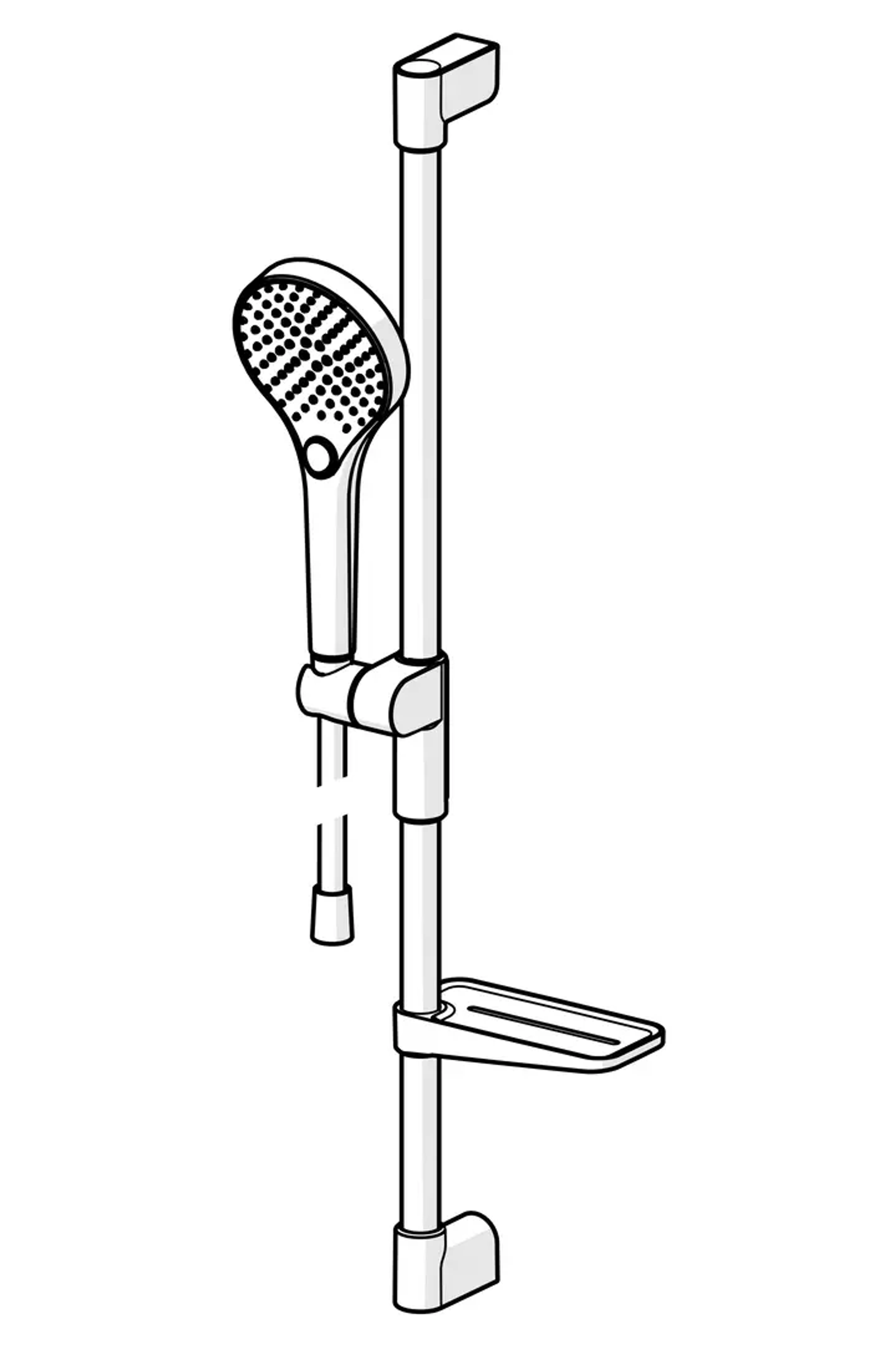 Optima dusjsett, med elegant design for å passe inn på alle bad. Dusjstang med glider som enkelt kan justeres i høyden med en hånd. Vår 3-spray hånddusj er enkel å betjene med en fin trykknapp for enkelt å bytte stråletype. Roterende dusjslange slik at den henger fint når man setter hånddusjen tilbake.