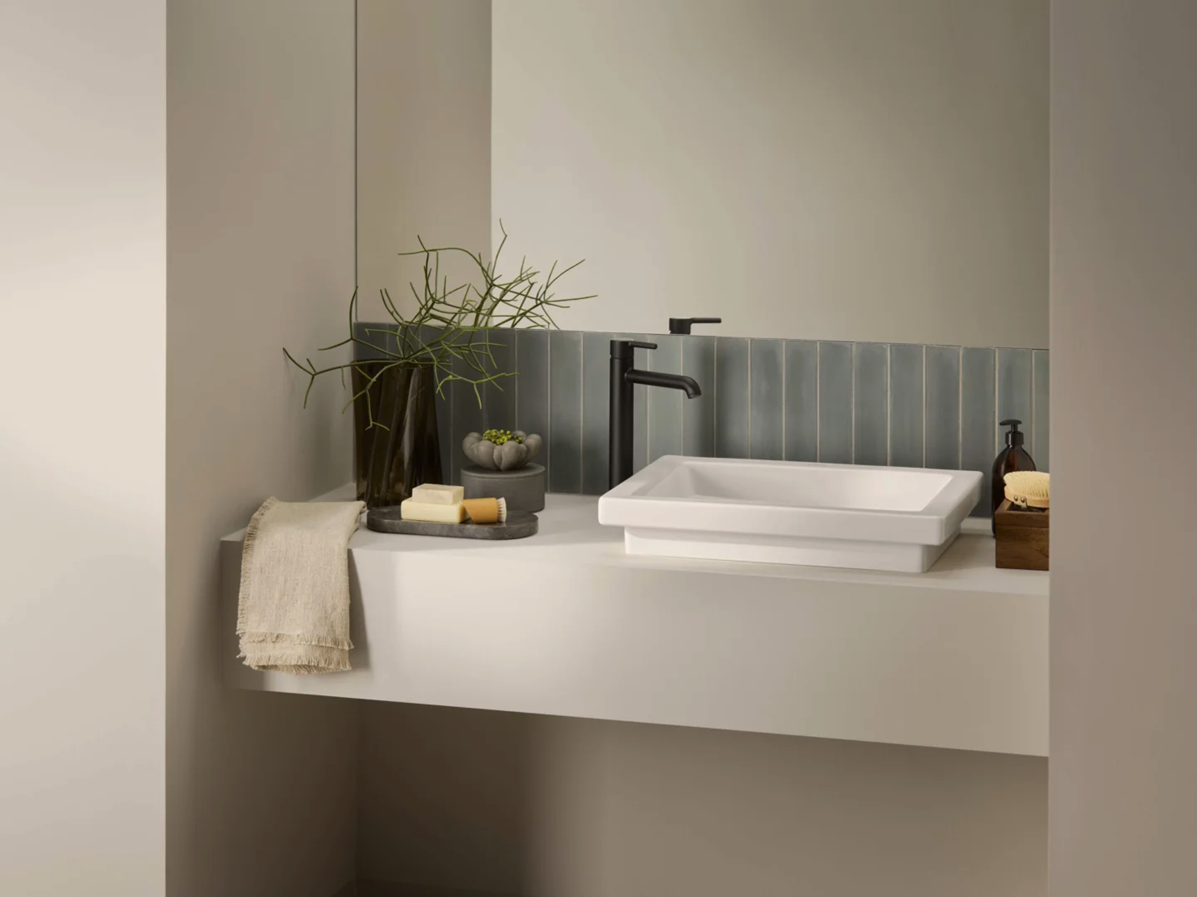 Høy servantkran i svart matt, passer til bolleservant