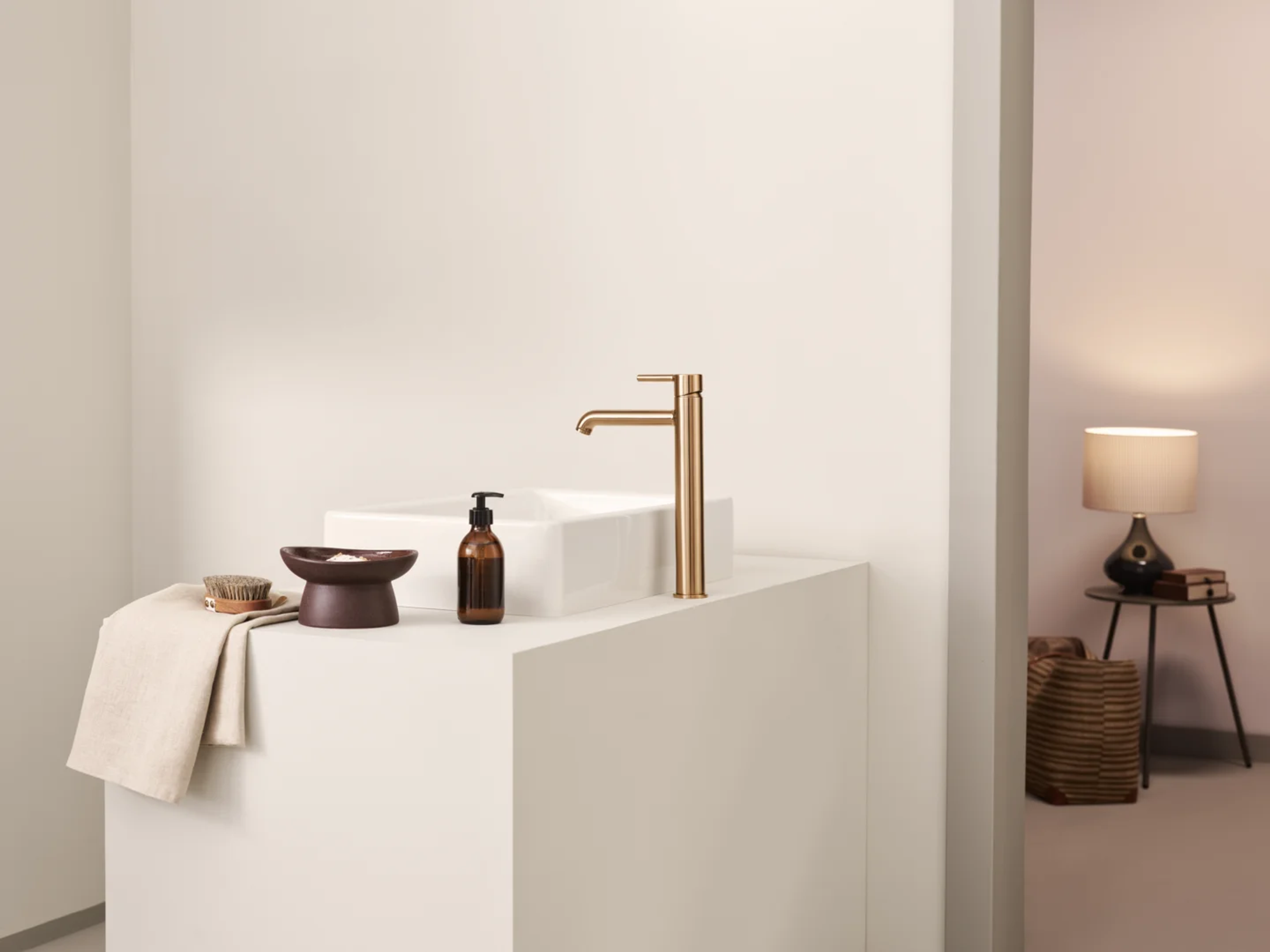 Style servantkran høy i børstet bronse med pinnehendel i moderne og klassisk design. Passer til bolleservanter. Servantkranen gir 6 l/m Høy kvalitet Produsert i Europa Slank design Anti-kalk strålesamler for enkel rengjøring Servantkran som gir komfort