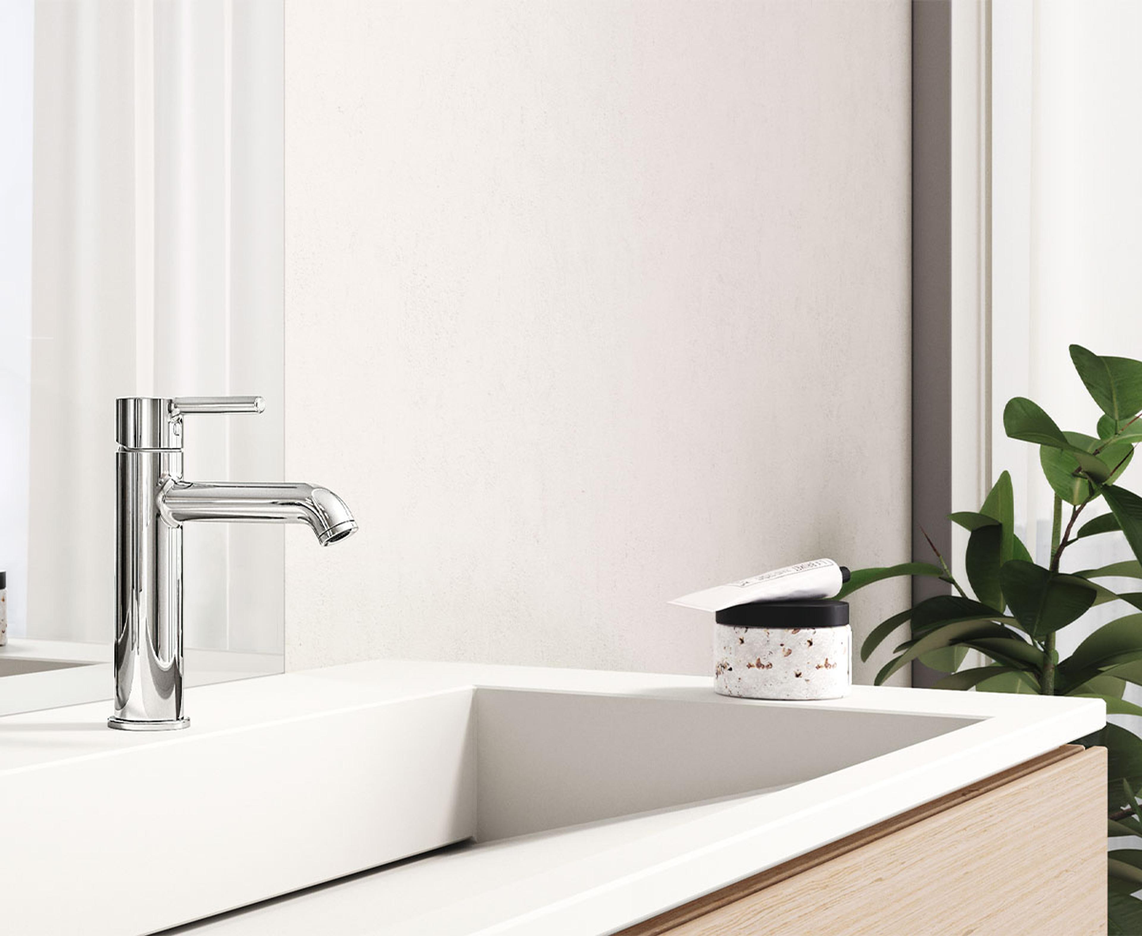 Servantkran med ettgreps betjening i et klassisk moderne design. Solid, trygg og holdbar kran som gir glede og trygghet i mange år. Med anti-kalk teknologi, og kranen gir 6 l/m. Farge: