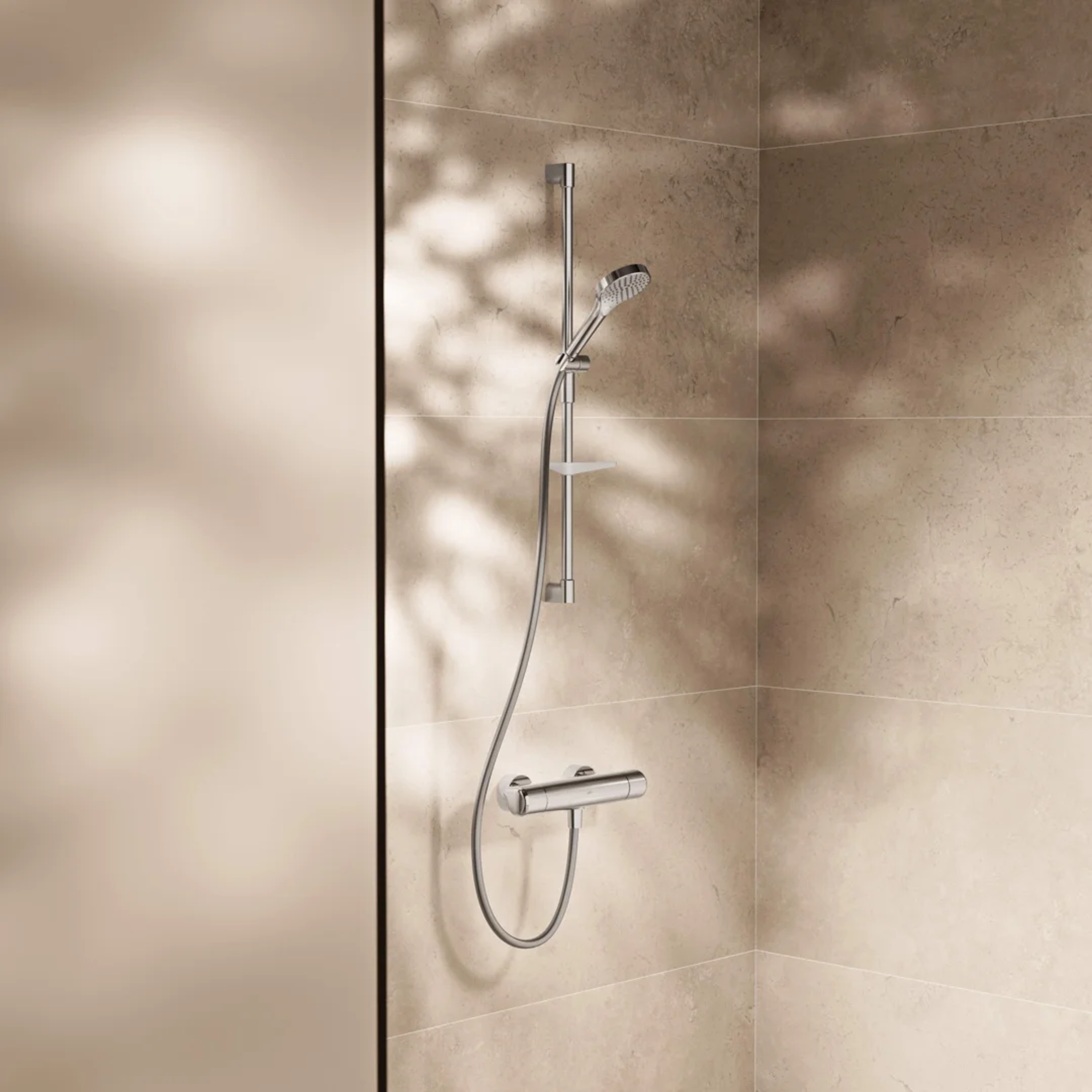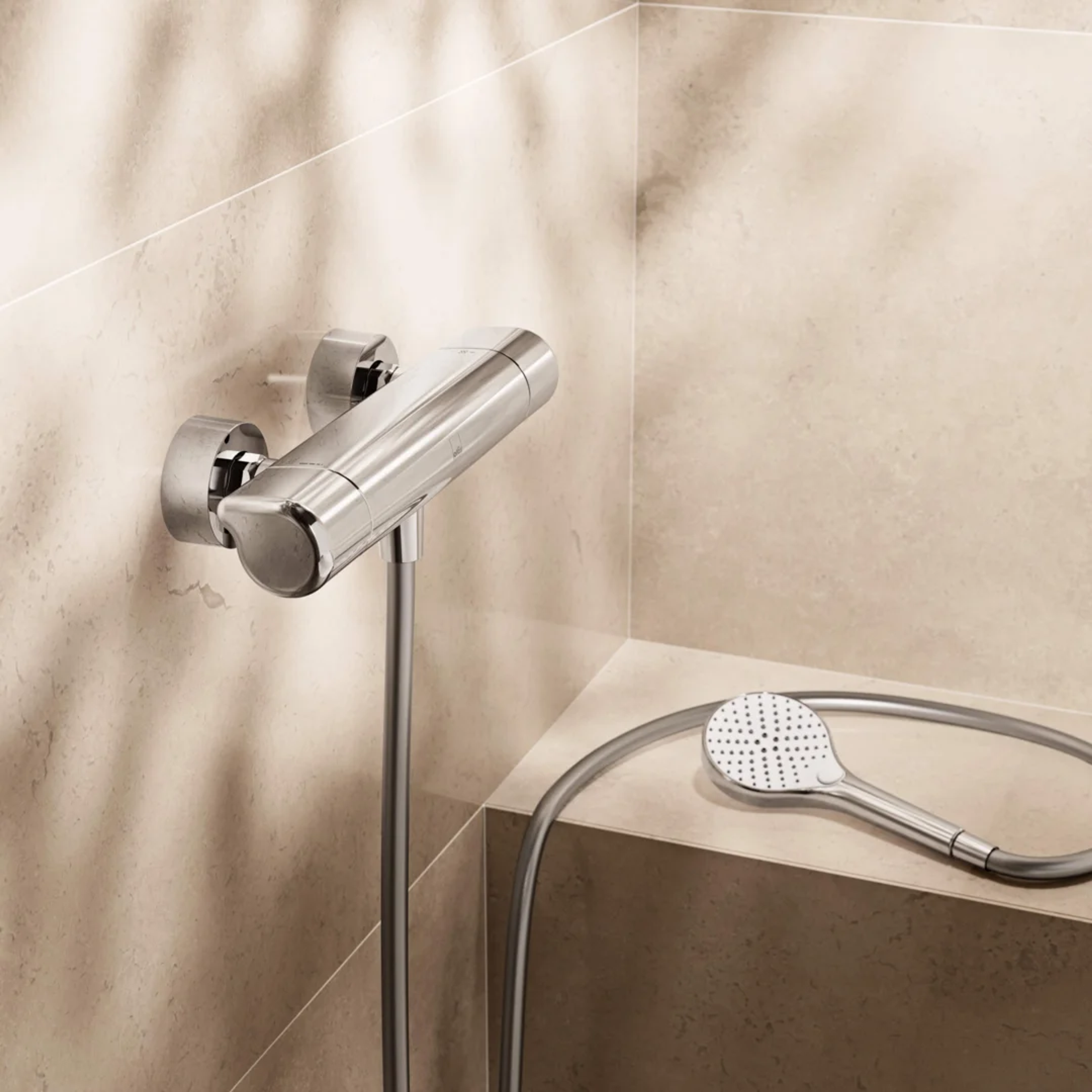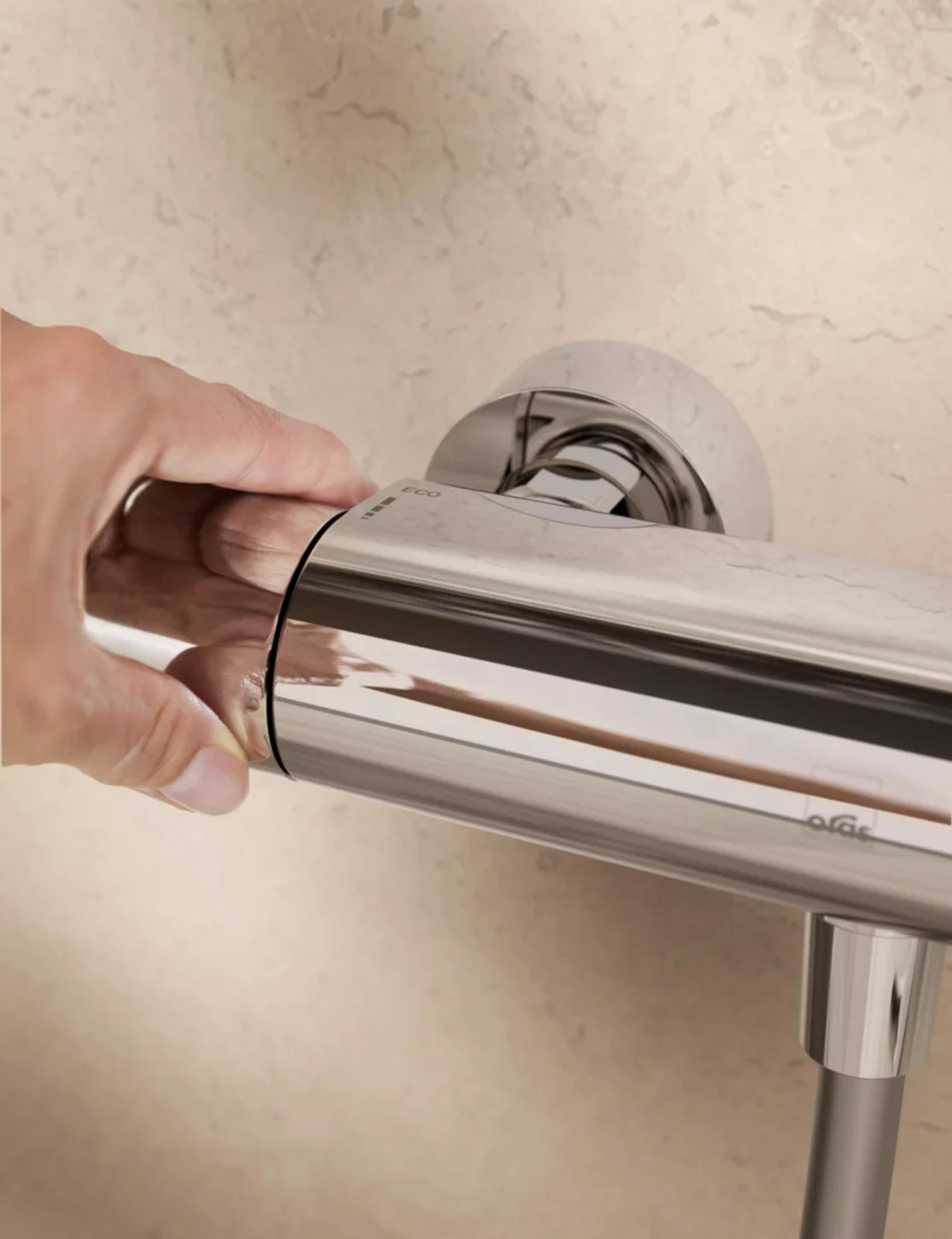 Oras Oramix er en dusjkran som sikrer en jevn og komfortabel dusjtemperatur, selv ved variasjoner i trykk og temperatur på vanntilførselen. Temperaturrattet har en sperreknapp som hindrer skålding, og overflaten på dusjkranen blir ikke varm. Alt dette gjør den til et sikkert og komfortabelt valg for moderne og bærekraftige installasjoner.