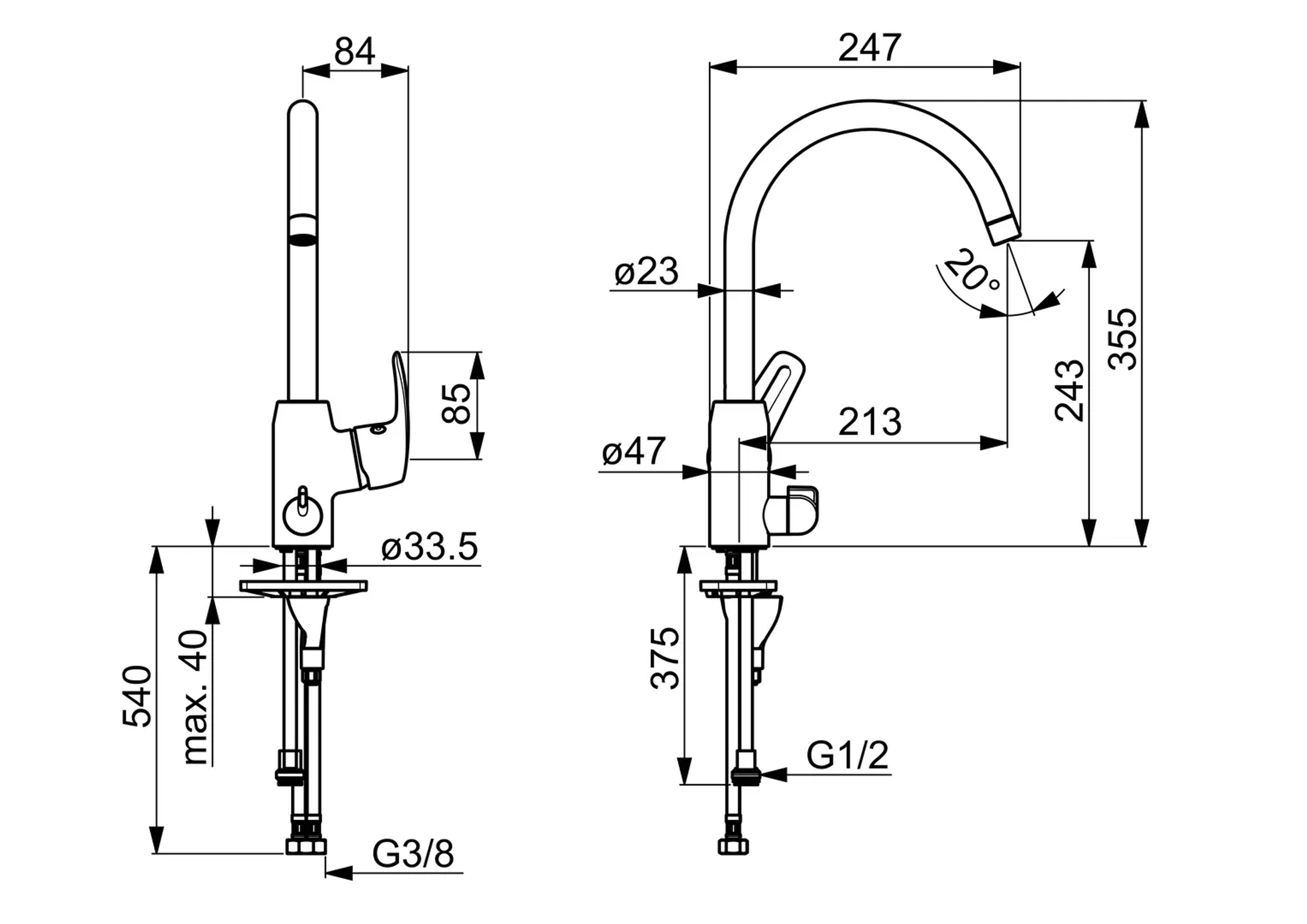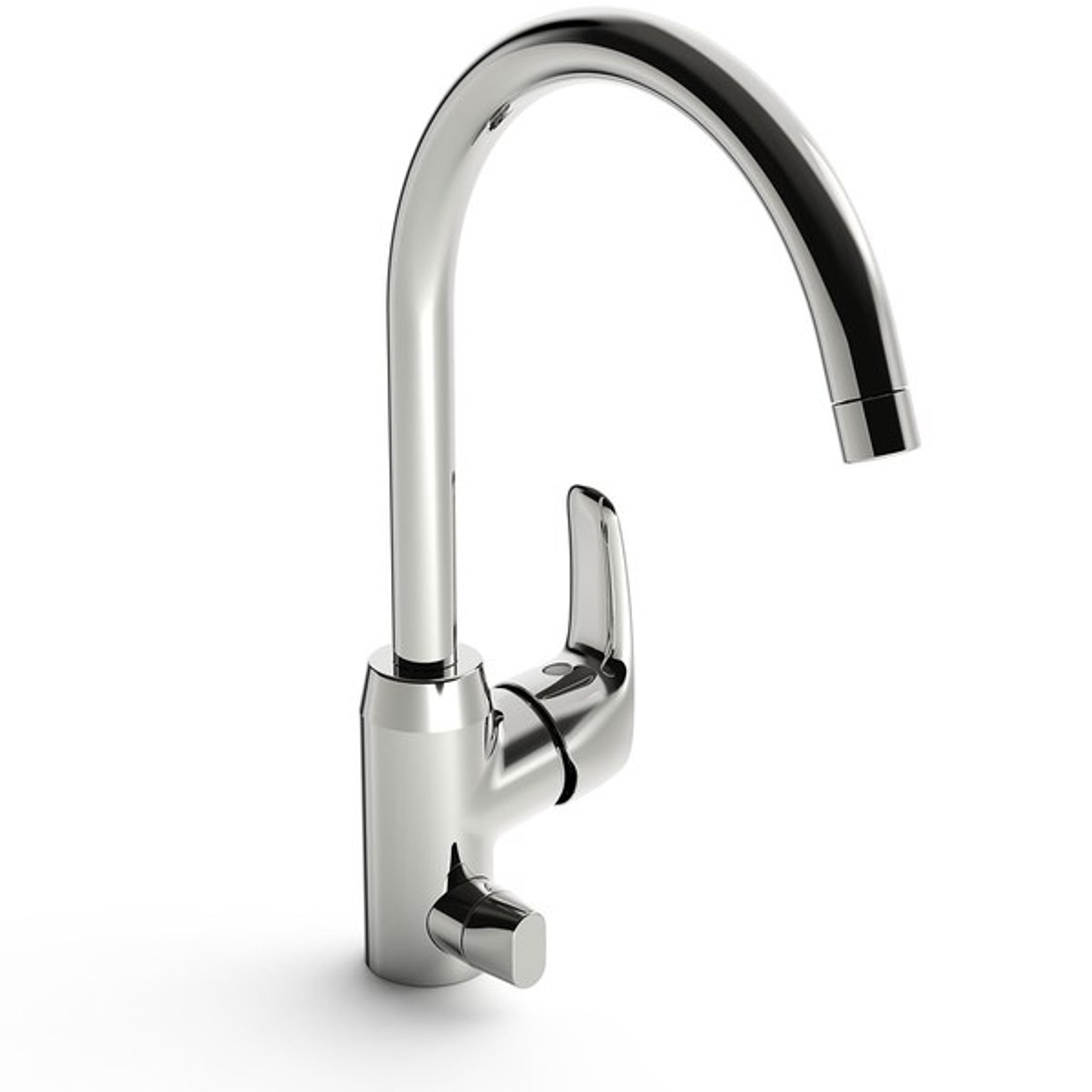En stilren kjøkkenkran med høy tut som gir et godt arbeidsrom slik at det er enkelt å rengjøre og få tappet vann i store enheter. For eksempel store kasseroller eller vaskebøtte. Lettbetjent hendel på siden gjør det enkelt å stille inn riktig temperatur og vannmengde. Den sidestilte hendelen reduserer søl av vann. Mulighet for å stille inn kranen slik at den har en fast sperre for maks temperatur på varmtvannet og begrense vannmengden.