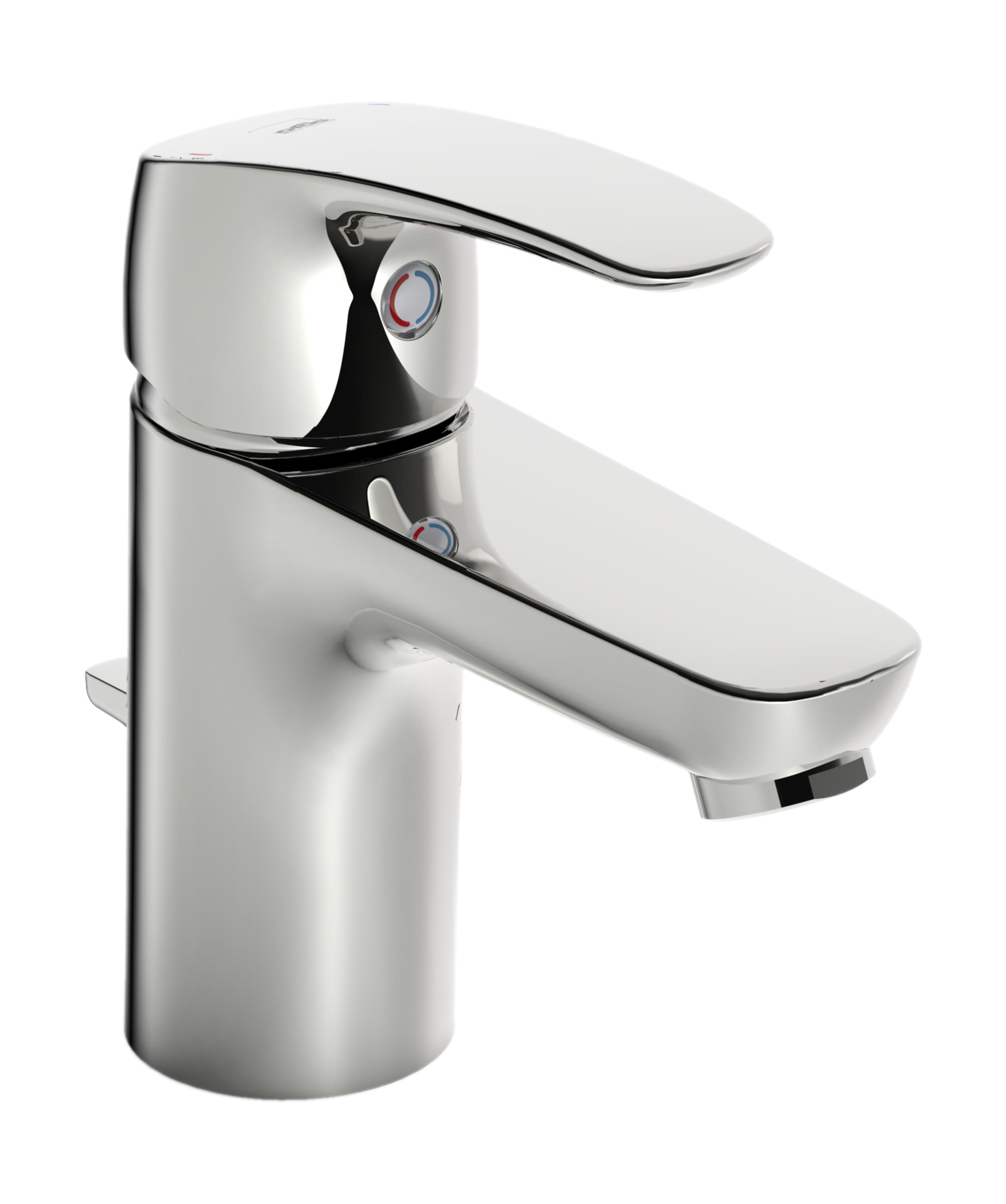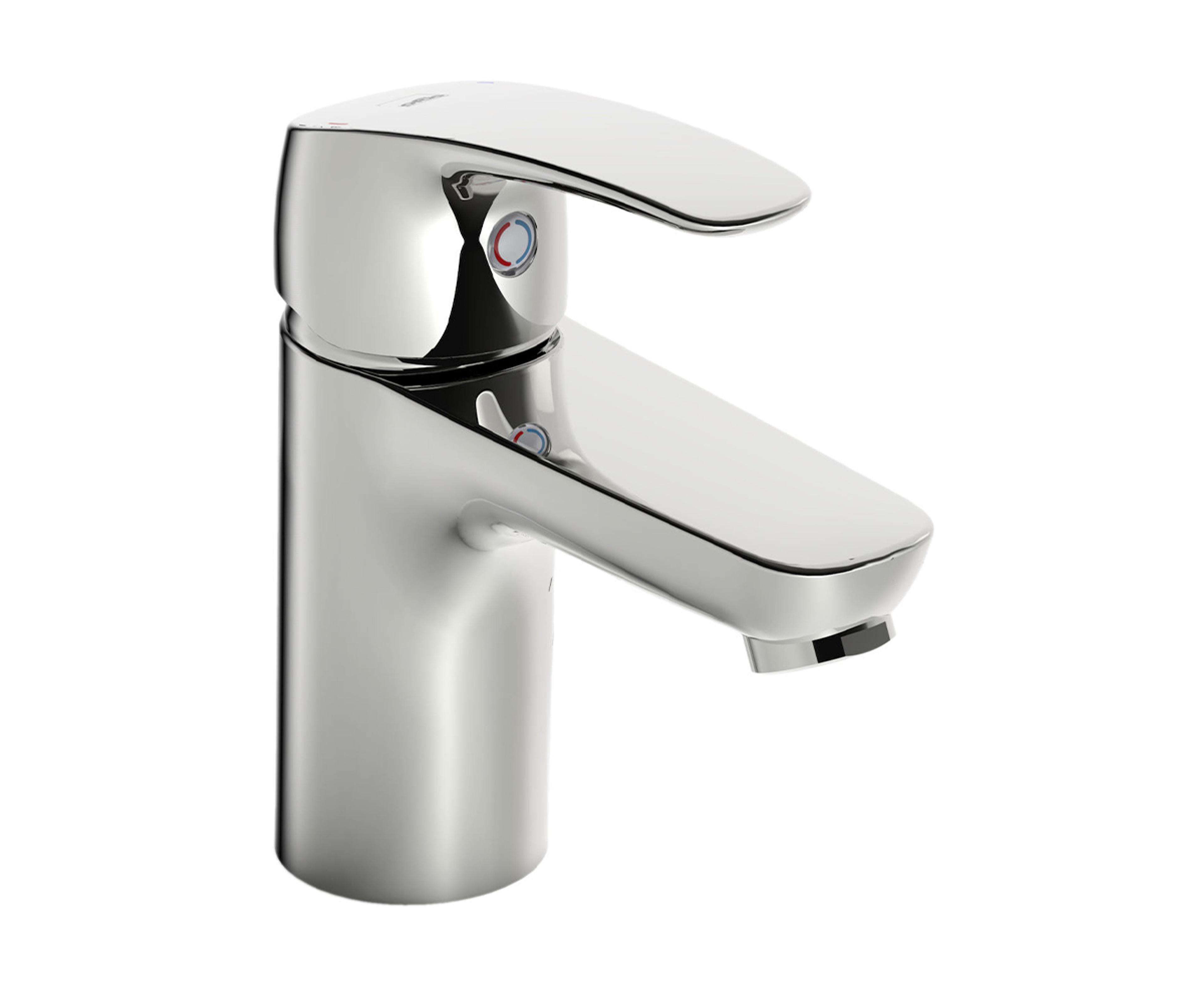 Servantkran med fast tut, perlator og oppløftsventil. Det er også innebygd alternative begrensninger for vanntemperatur og maksimal vannmengde. Farge: Krom